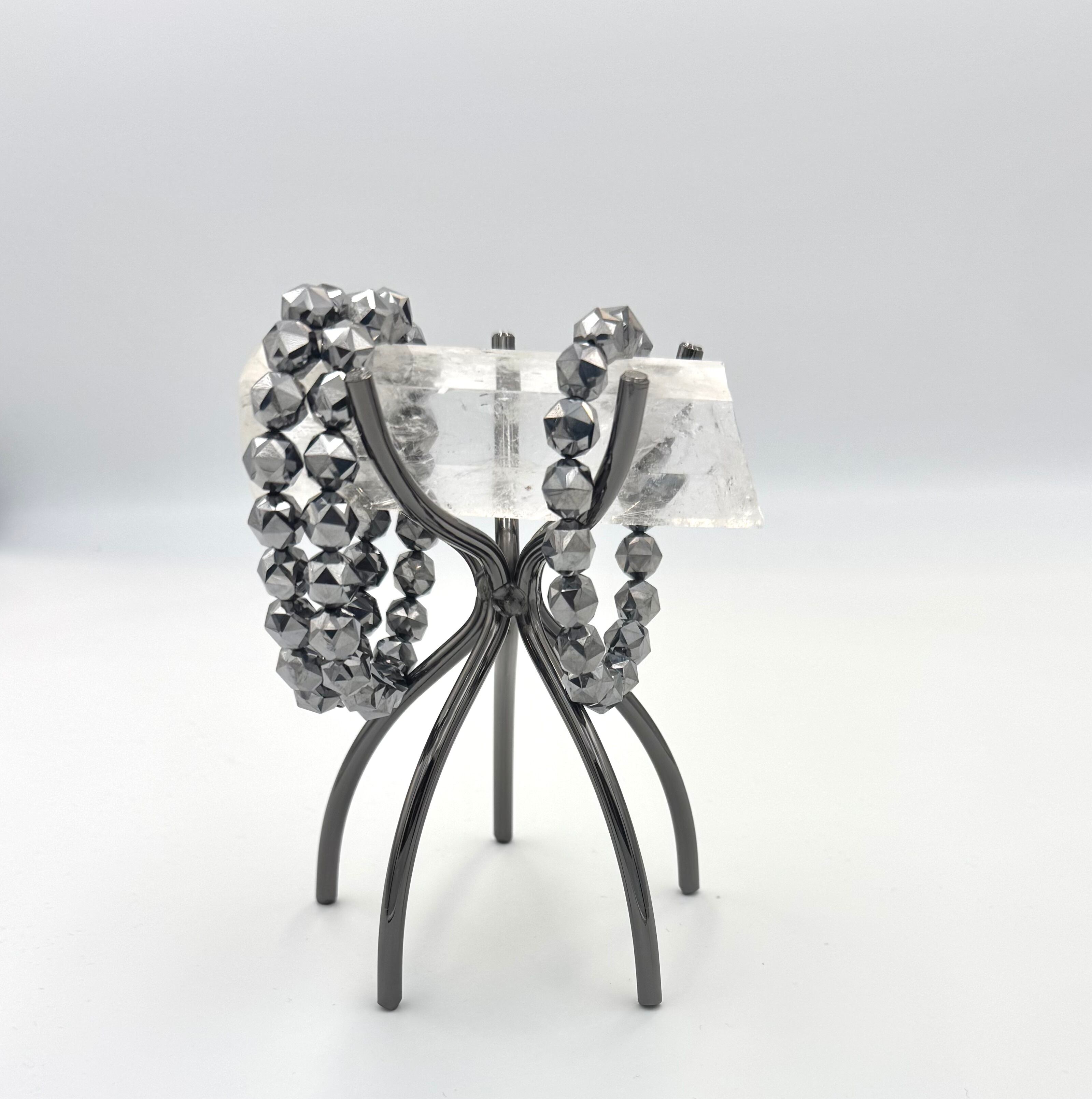 テラヘルツは、ダークシルバーの美しい輝きを見せるパワーストーンです。 一秒間に約一兆回も分子振動するテラヘルツ波を放出するといわれています。純度の高いケイ素から作られていて 「テラヘルツ鉱石」と呼ばれる事も多いのですが、こちらは流通名です。テラヘルツ自体は天然鉱石ではなく人工鉱石です。