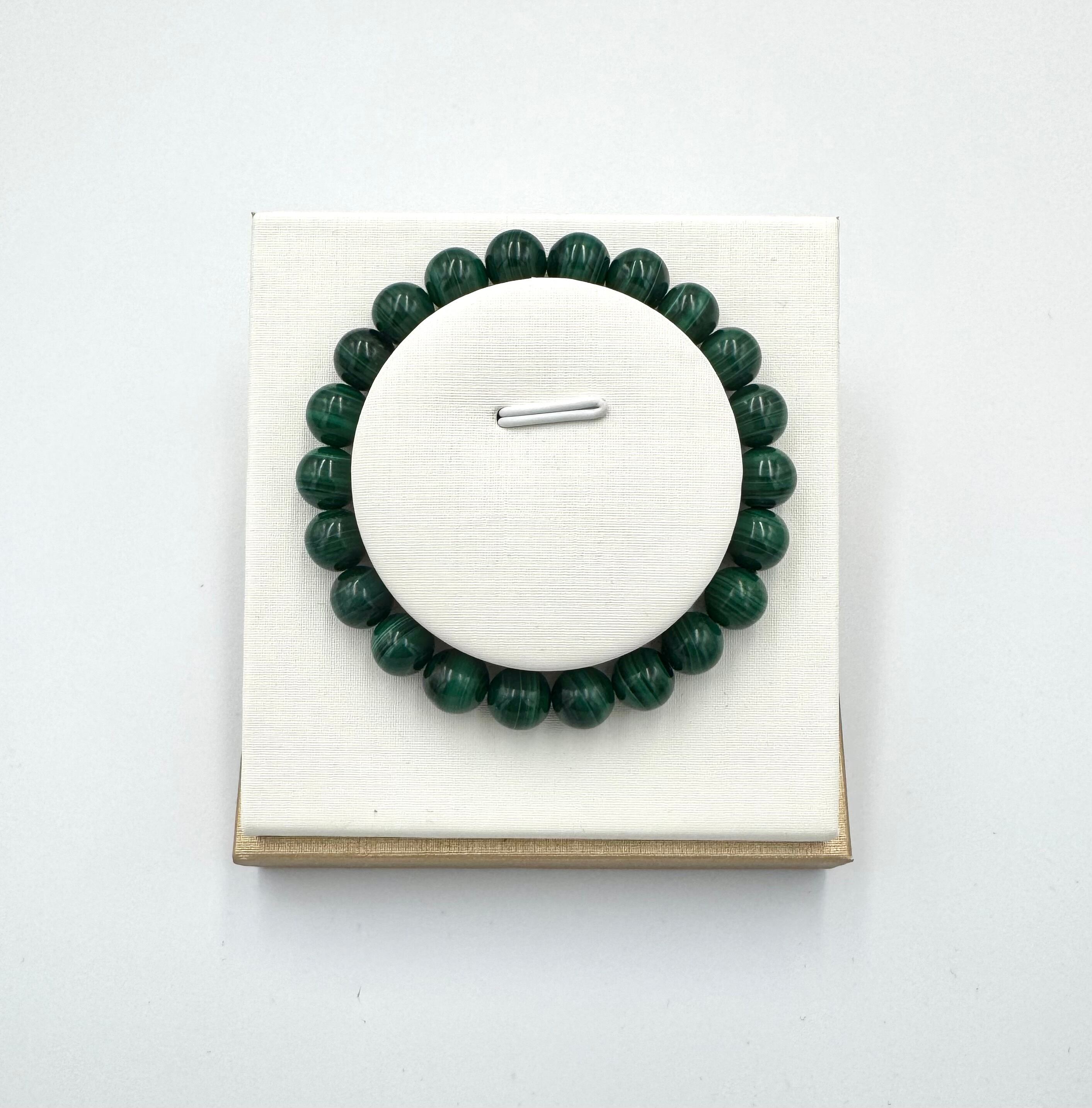マラカイトは、心身の癒しや災いを未然に防ぐ石として古くから親しまれており、パワーストーンとしても人気があります。緑色の濃淡による縞模様が美しく、その森林のような深い緑の色合いから「心身をリラックスさせる」といった効果が強く期待されています。