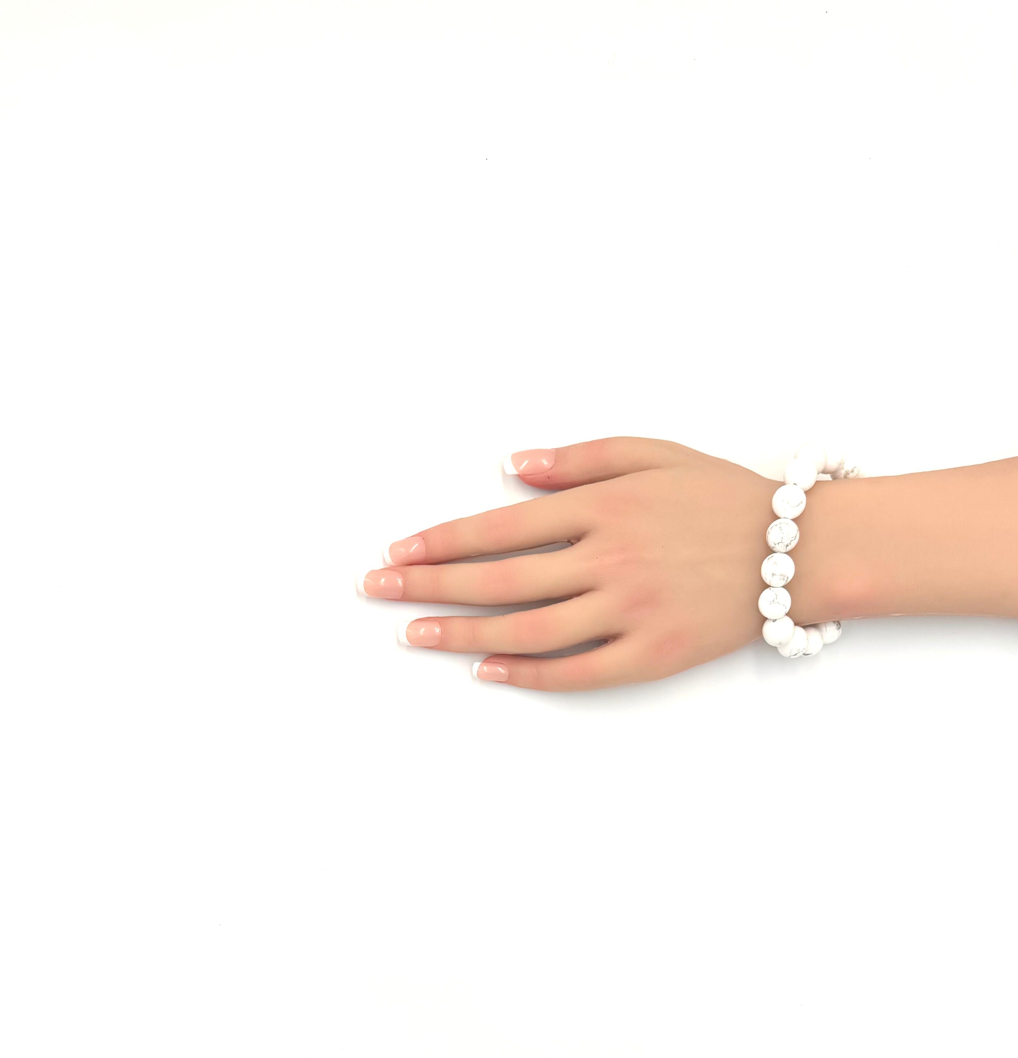 (00520)ハウライト ホワイトマグネサイト Howlite ラウンドボール 12mm ブレスレット