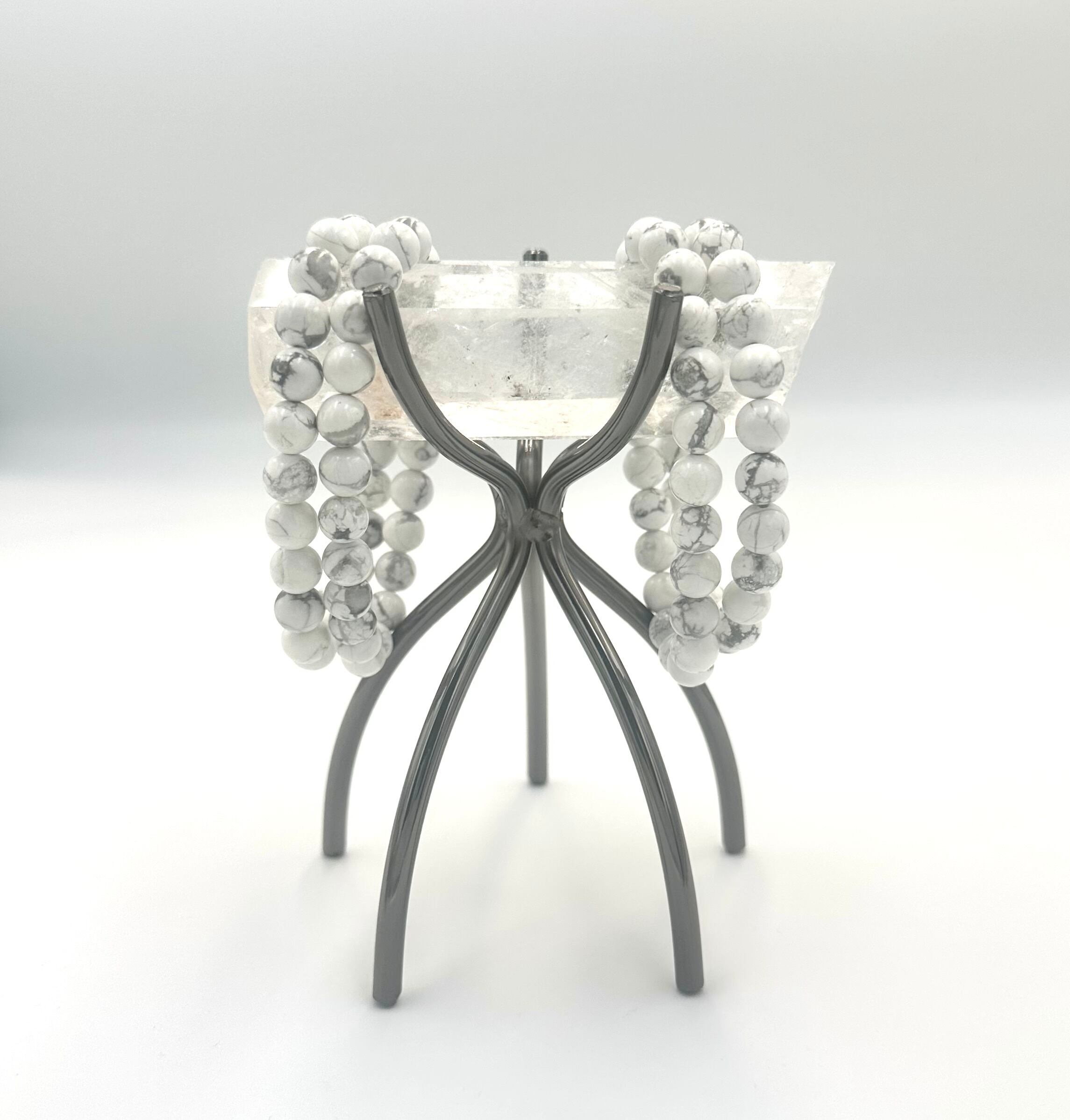 ハウライトの白色は清潔・純粋を表し、心を綺麗に浄化してくれると言われています。 穏やかな優しい石のイメージの反面で、パワーが強く邪悪なものやマイナスのエネルギーを跳ね返す力もあると言われる石です。硬度がそれほど強くないので、衝撃などには注意してください。