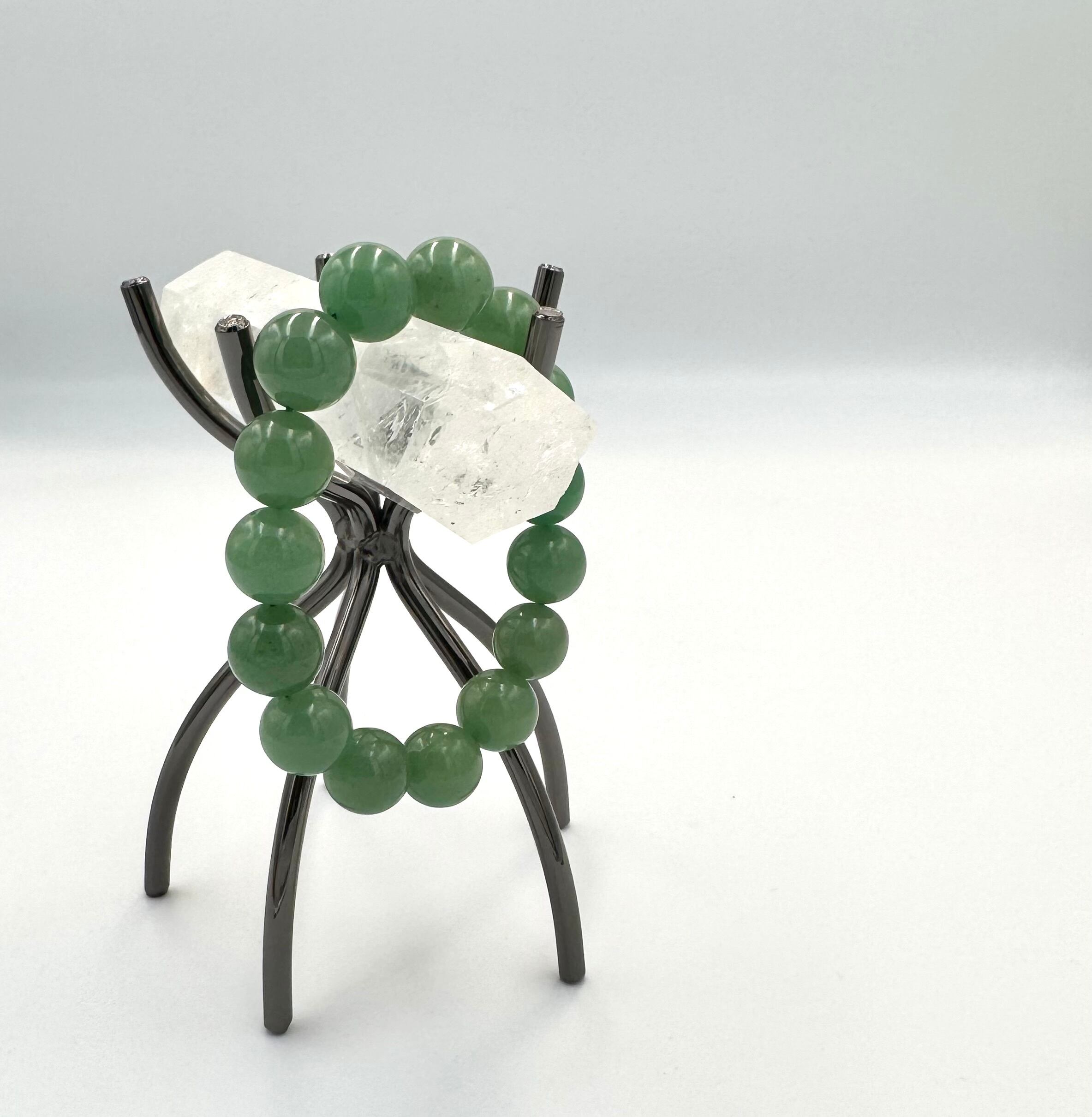 アベンチュリンは、石英(クォーツ)の一種で、内部に他の鉱物が含まれることでキラキラとした輝きを放つ天然石です。ガラス質の質感と金属光沢が特徴で、主に緑色ですが、茶色や青色、赤色、黄色などのバリエーションもあります。