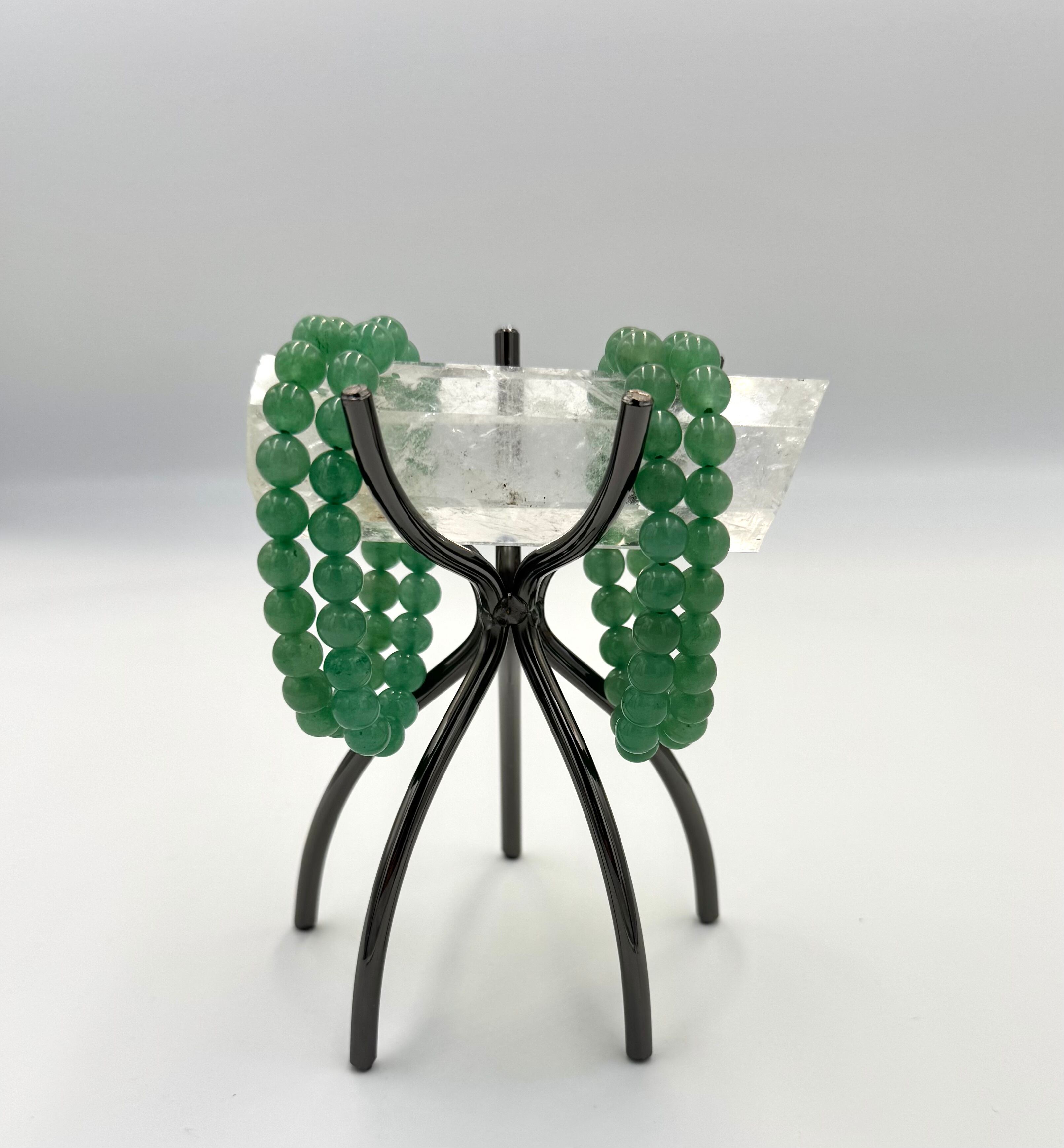 アベンチュリンは、石英(クォーツ)の一種で、内部に他の鉱物が含まれることでキラキラとした輝きを放つ天然石です。ガラス質の質感と金属光沢が特徴で、主に緑色ですが、茶色や青色、赤色、黄色などのバリエーションもあります。