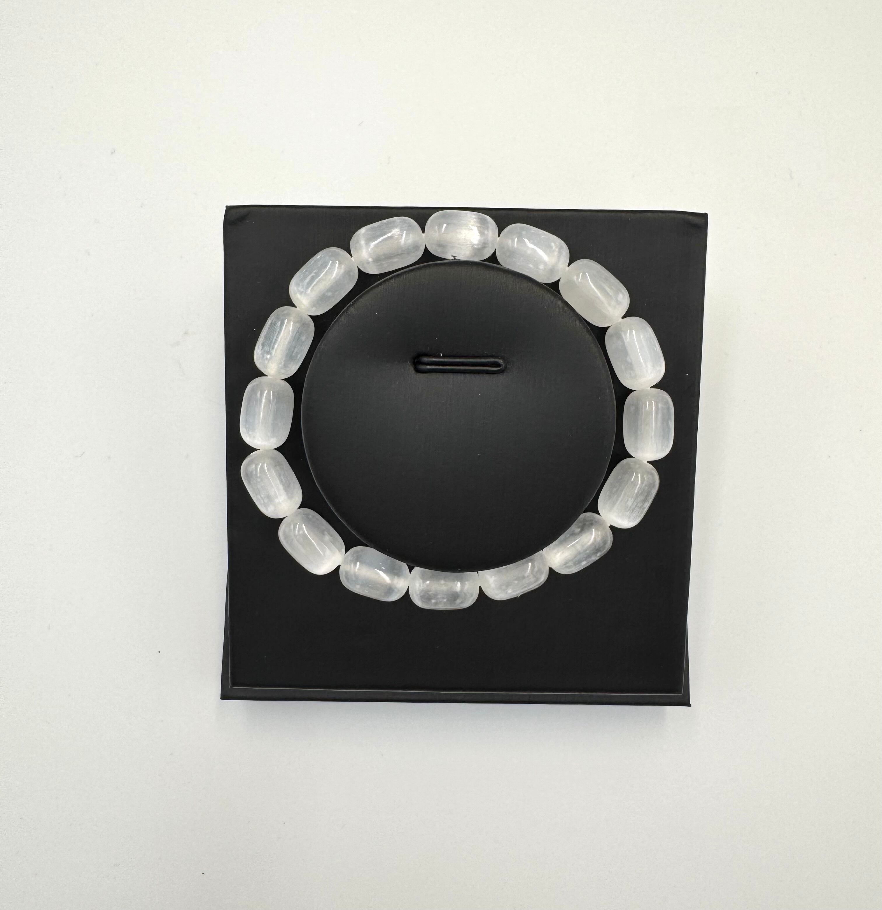 (00530)セレナイト Selenite 透石膏 カプセルカット 8mm ブレスレット