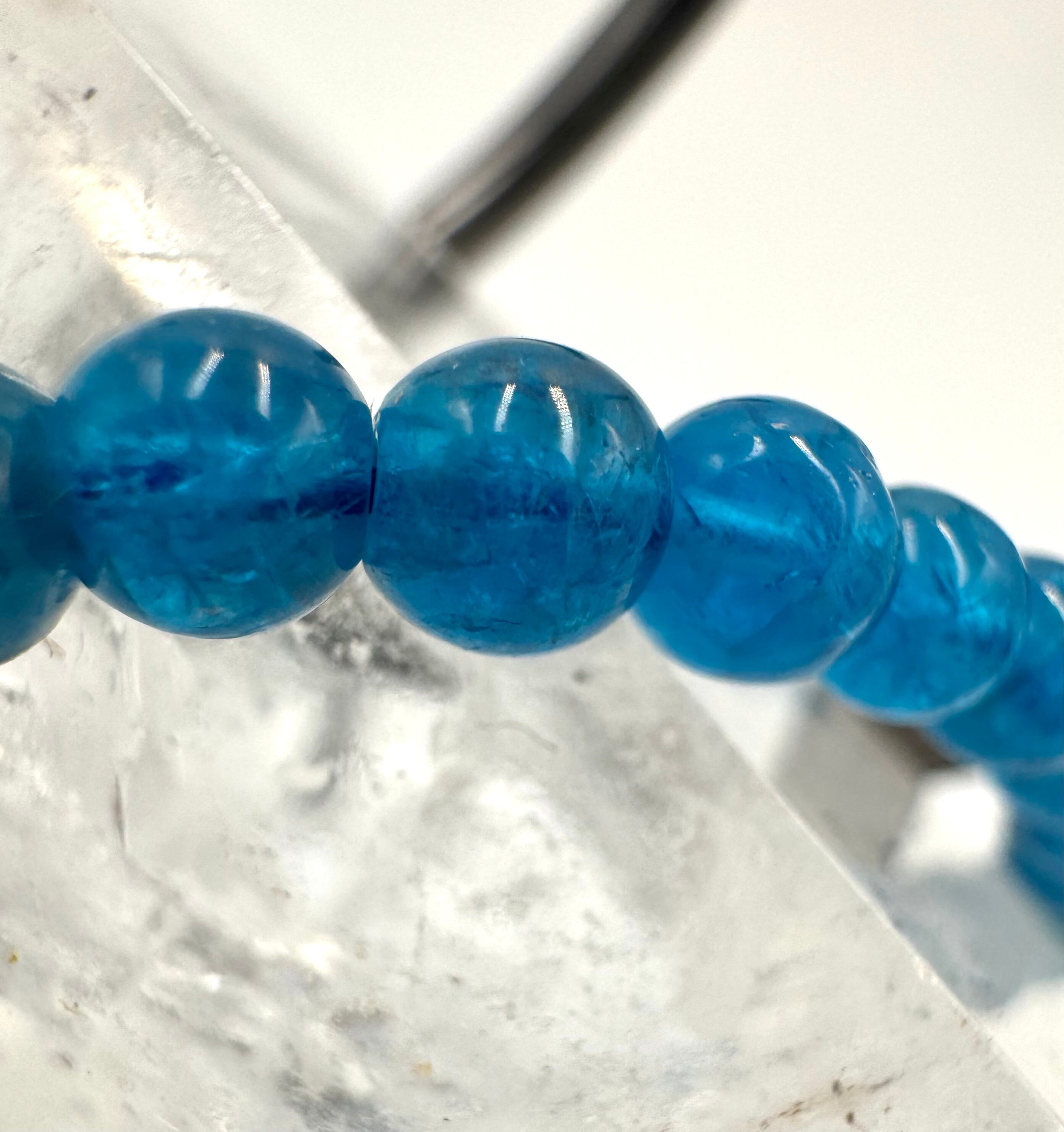 (00533)高品質 ブルーアパタイト 5mm Blue apatite 燐灰石 ラウンドボール ブレスレット