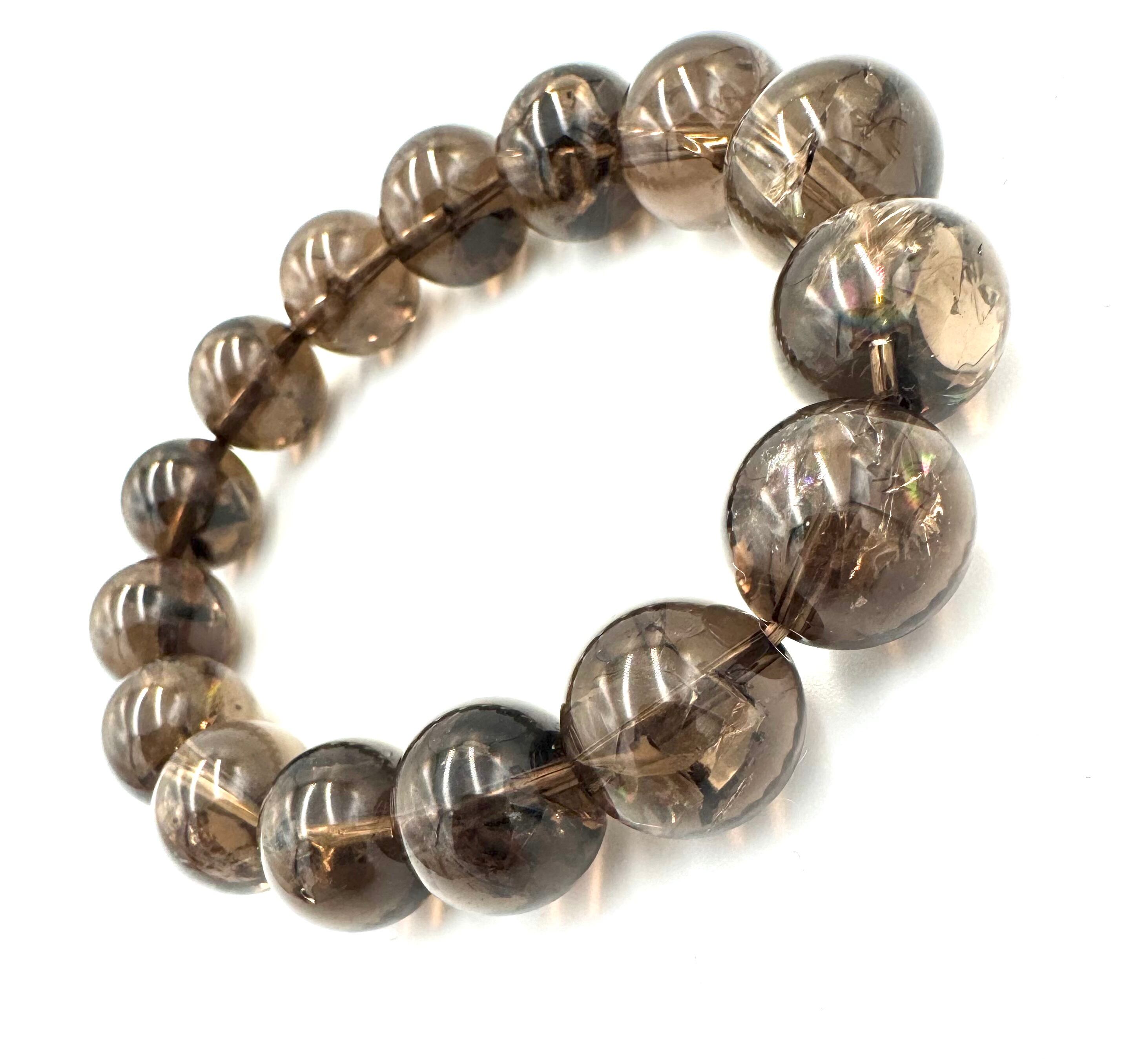 (00591)【1点のみ】アイリススモーキークォーツ 15mm Smoky quartz 煙水晶 茶水晶 ラウンドボール ブレスレット