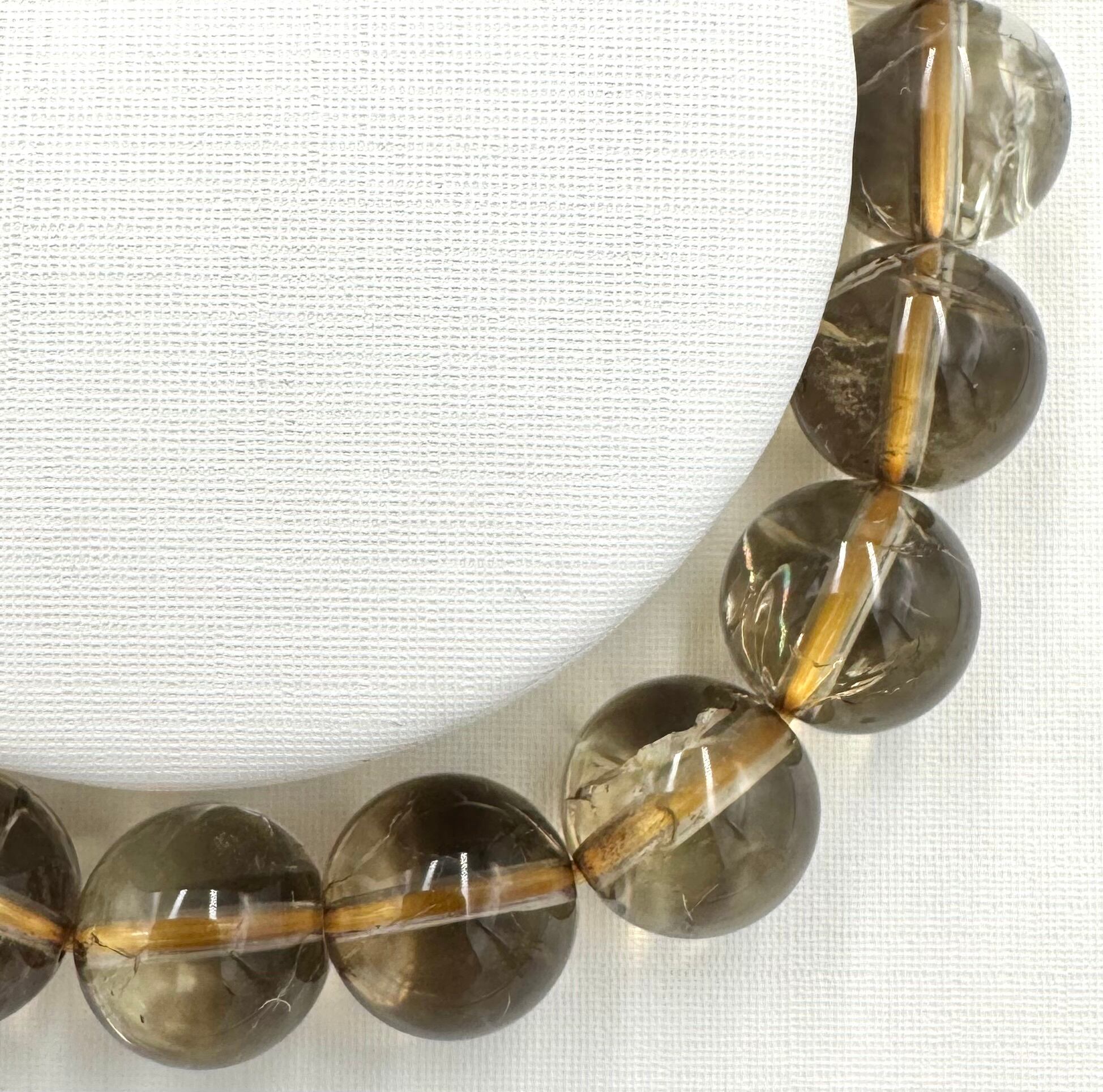 (00598)アイリススモーキーシトリン ゼウスクォーツ 10.5mm Smoky quartz Citrine 煙水晶 茶水晶 黄水晶 ラウンドボール ブレスレット