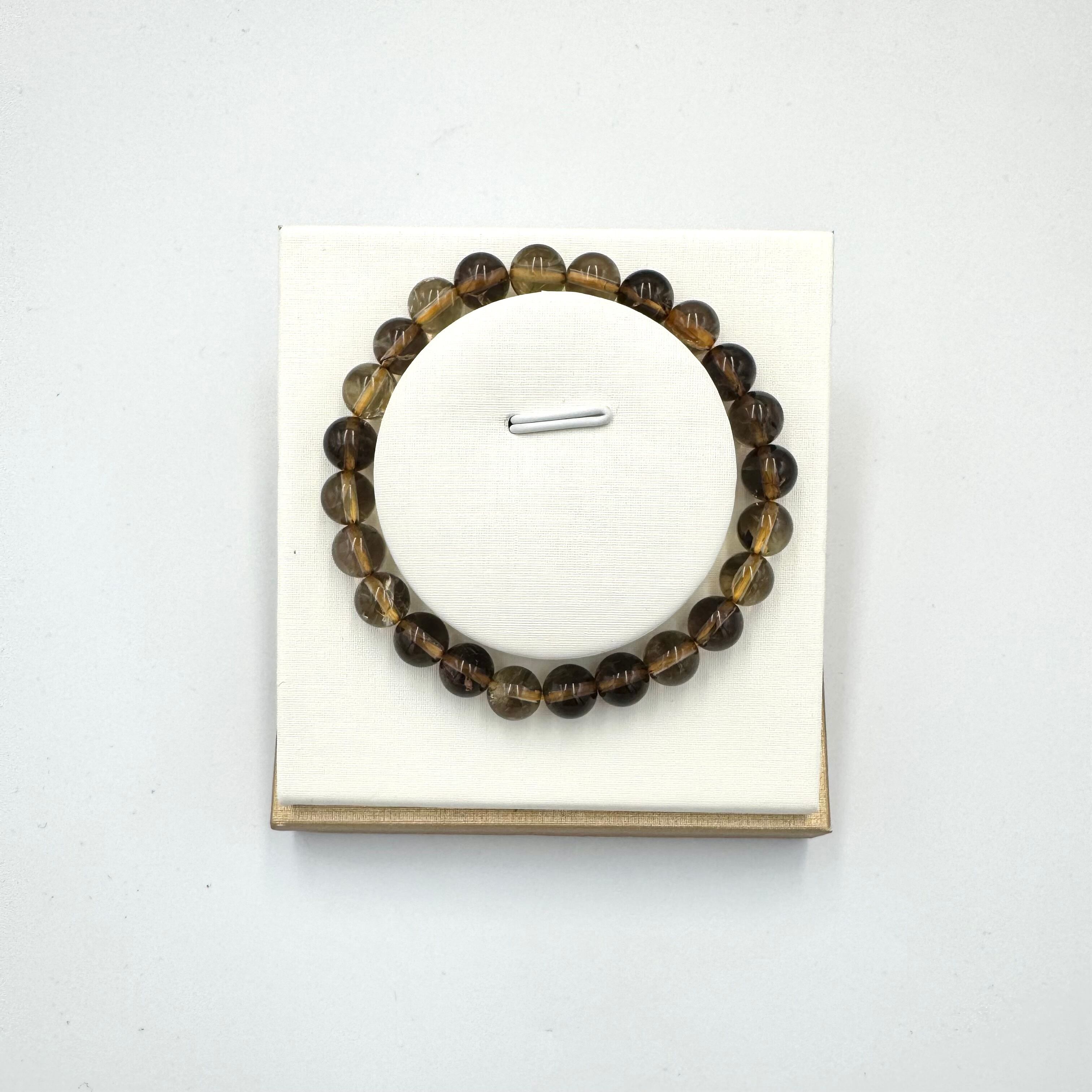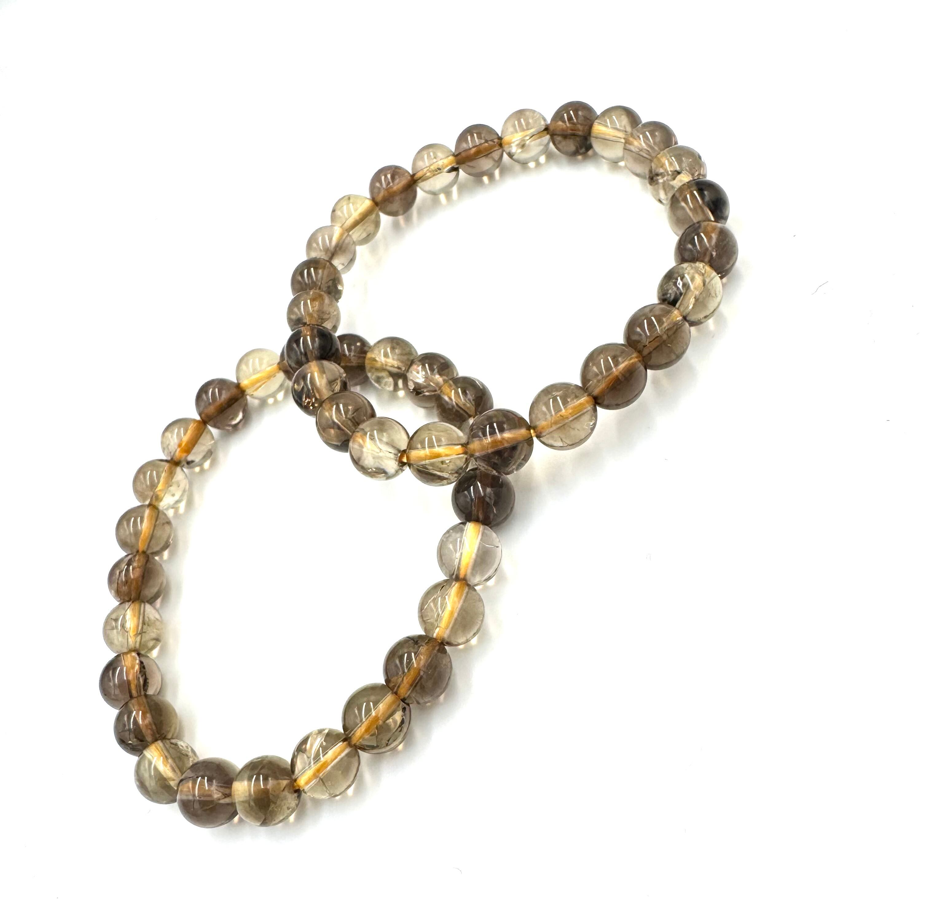 (00599)(内径選べる)アイリススモーキーシトリン ゼウスクォーツ 8mm Smoky quartz Citrine 煙水晶 茶水晶 黄水晶 ラウンドボール ブレスレット