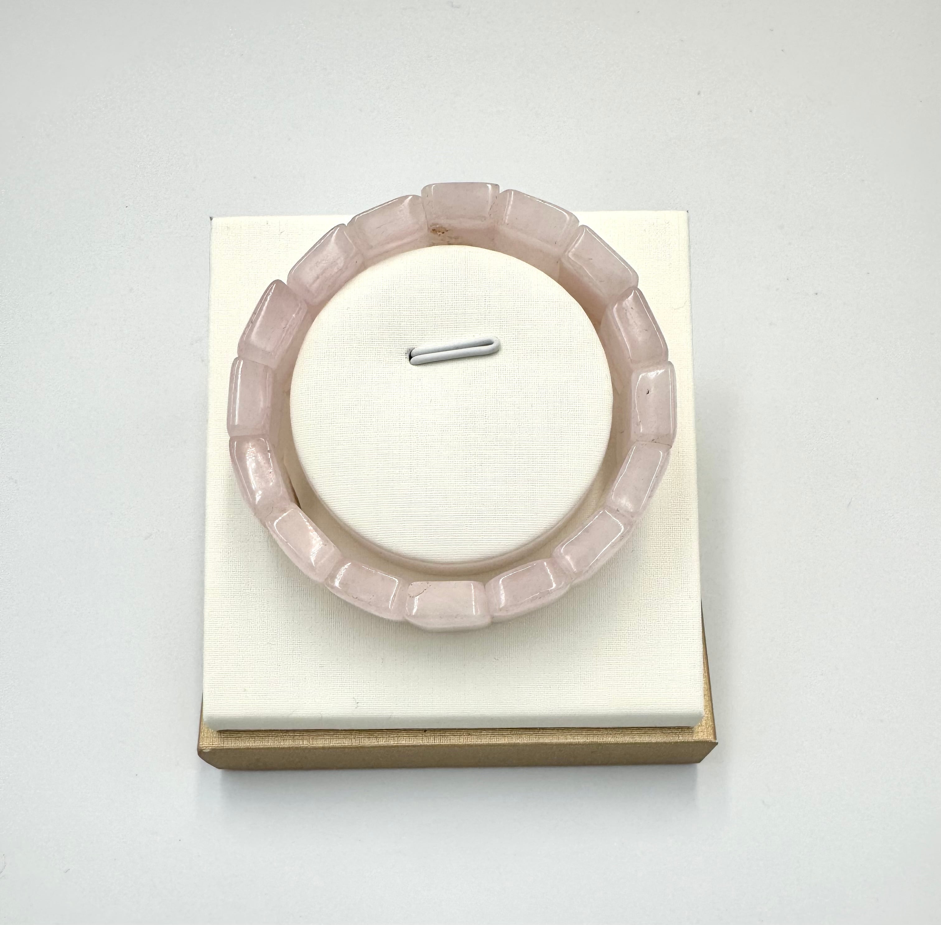 (00611)マダガスカル産 ローズクォーツ スクエアカットL バングル 18mm Rose quartz 紅水晶 紅石英 薔薇石英 ブレスレット