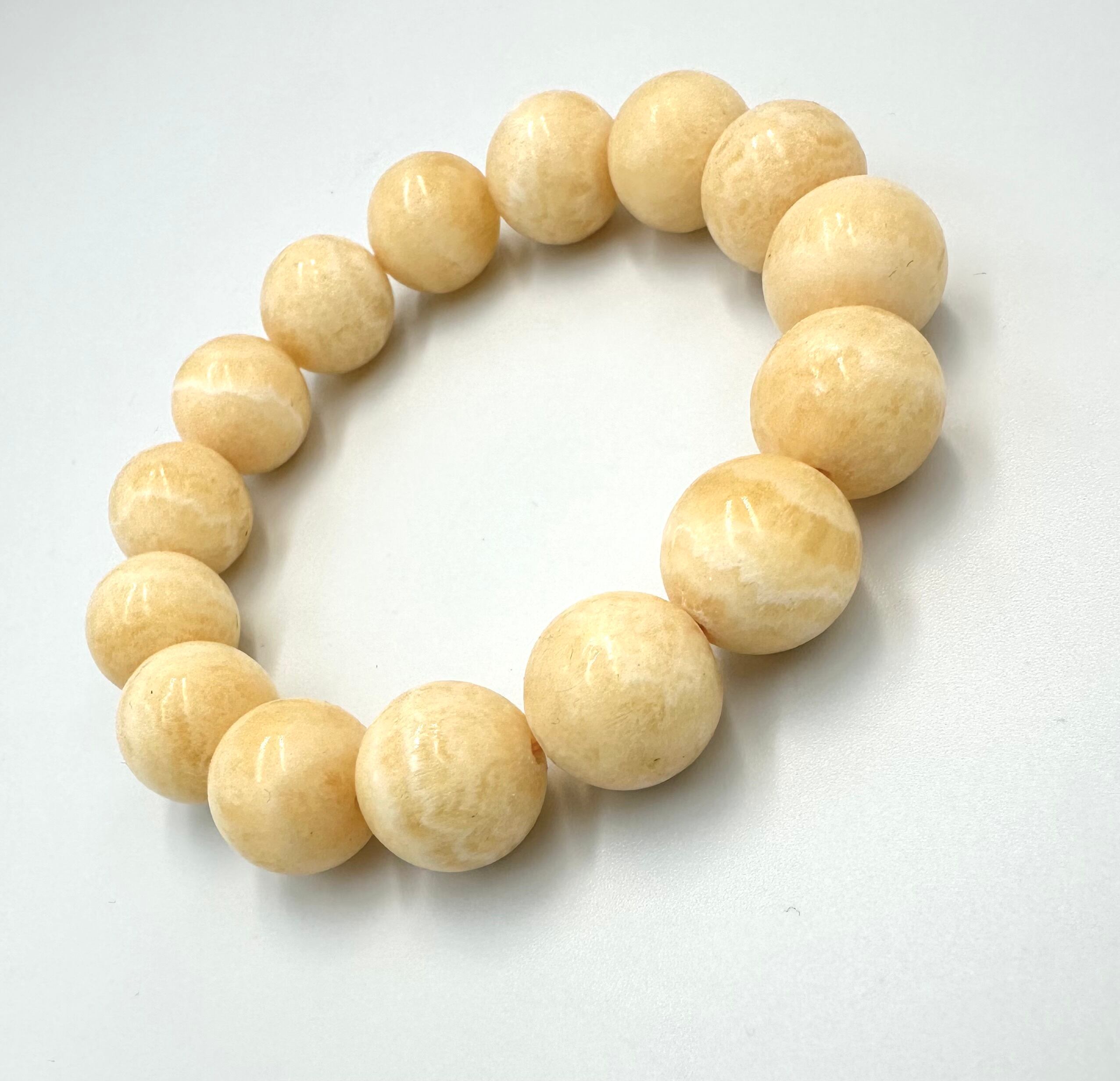 (00618)【1点のみ】オレンジカルサイト ハニーカルサイト 14.5mm Calcite 方解石 ラウンドカット ブレスレット