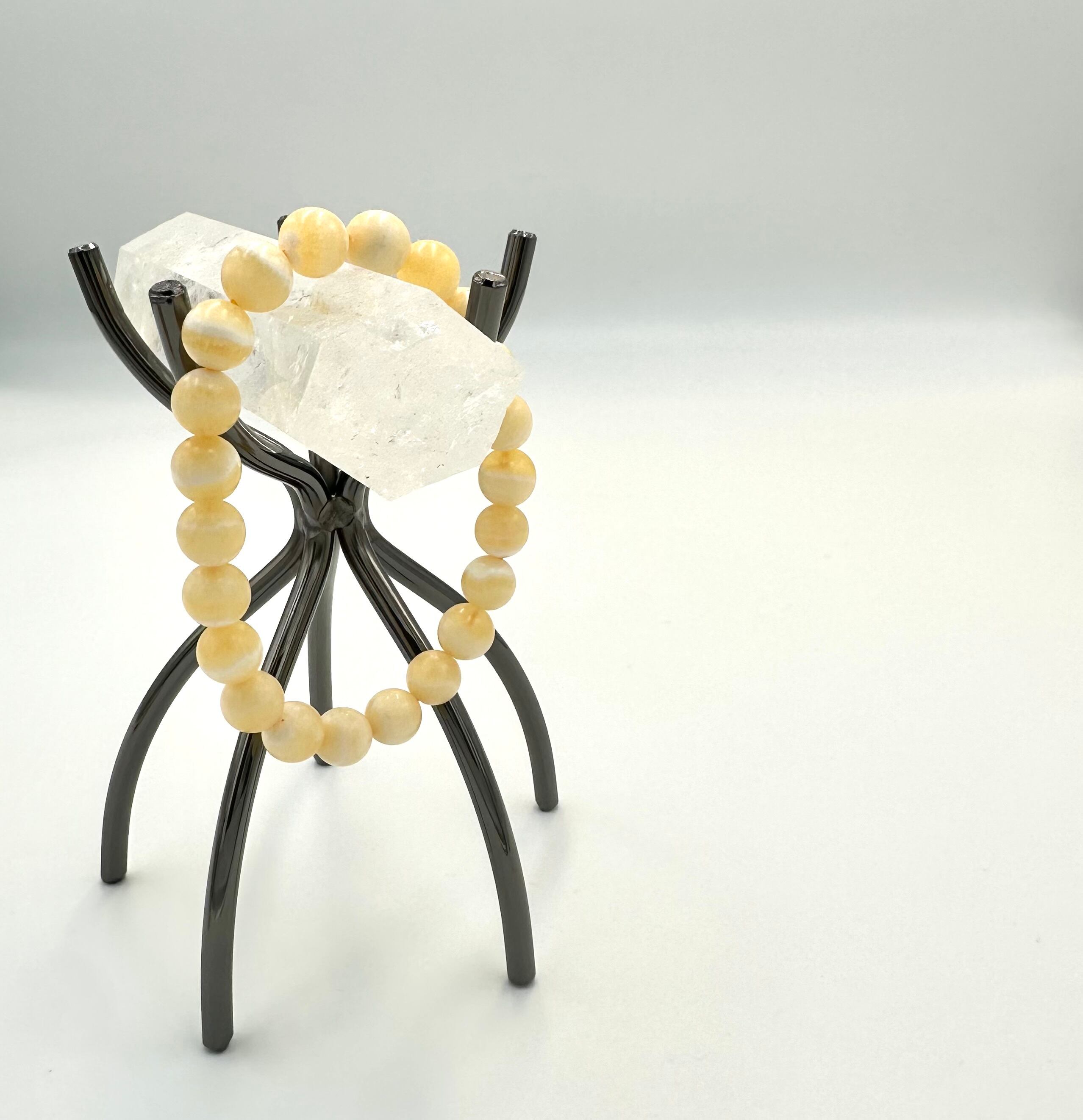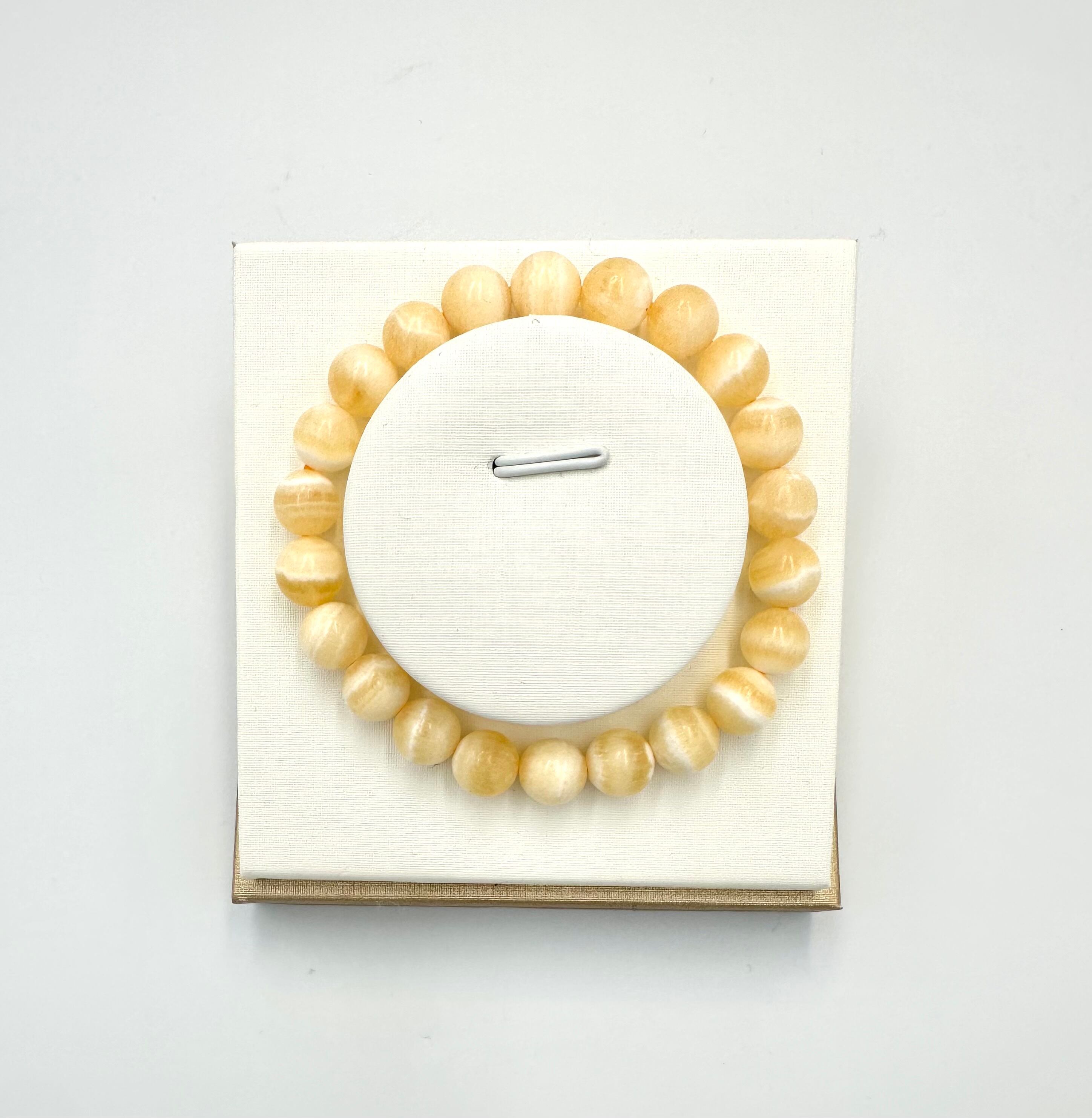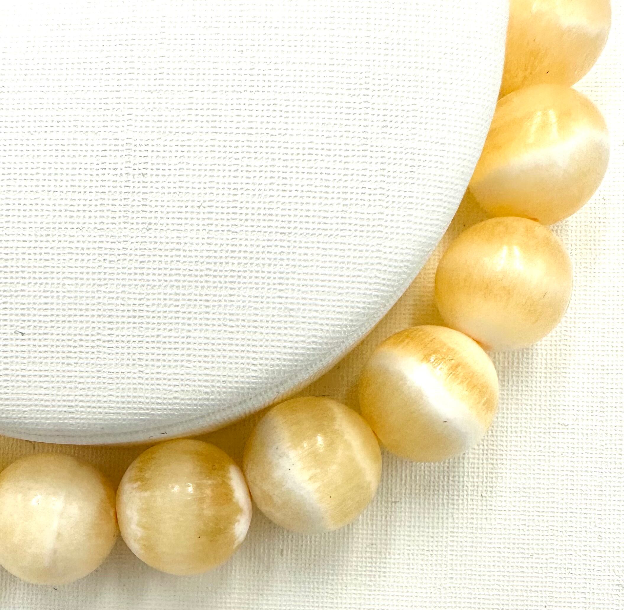 (00619)オレンジカルサイト ハニーカルサイト 9mm Calcite 方解石 ラウンドカット ブレスレット