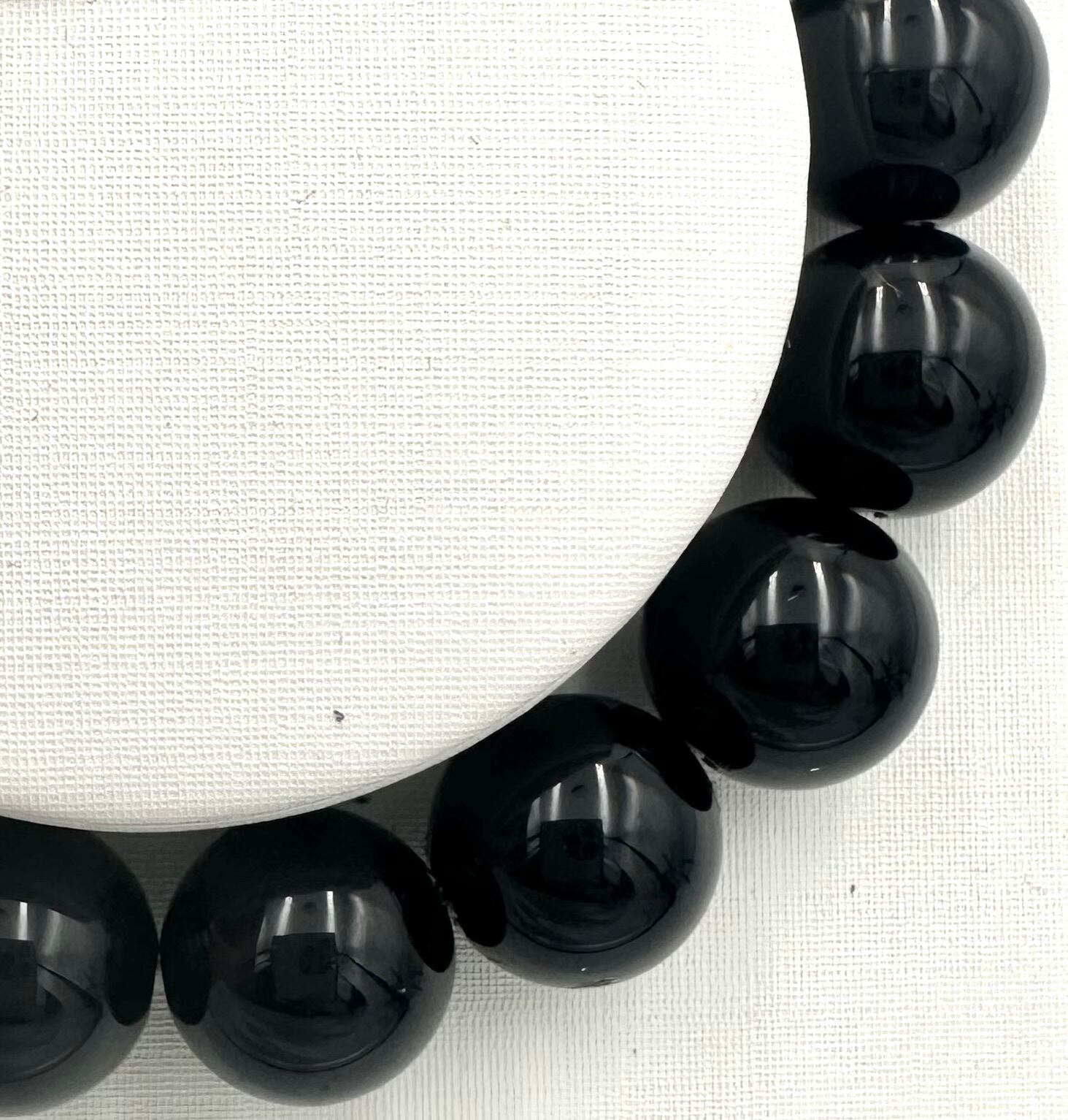 (00667)(内径選べる)オブシディアン【12mm】 Obsidian 黒曜石 魔除け 厄除け ラウンドカット ブレスレット