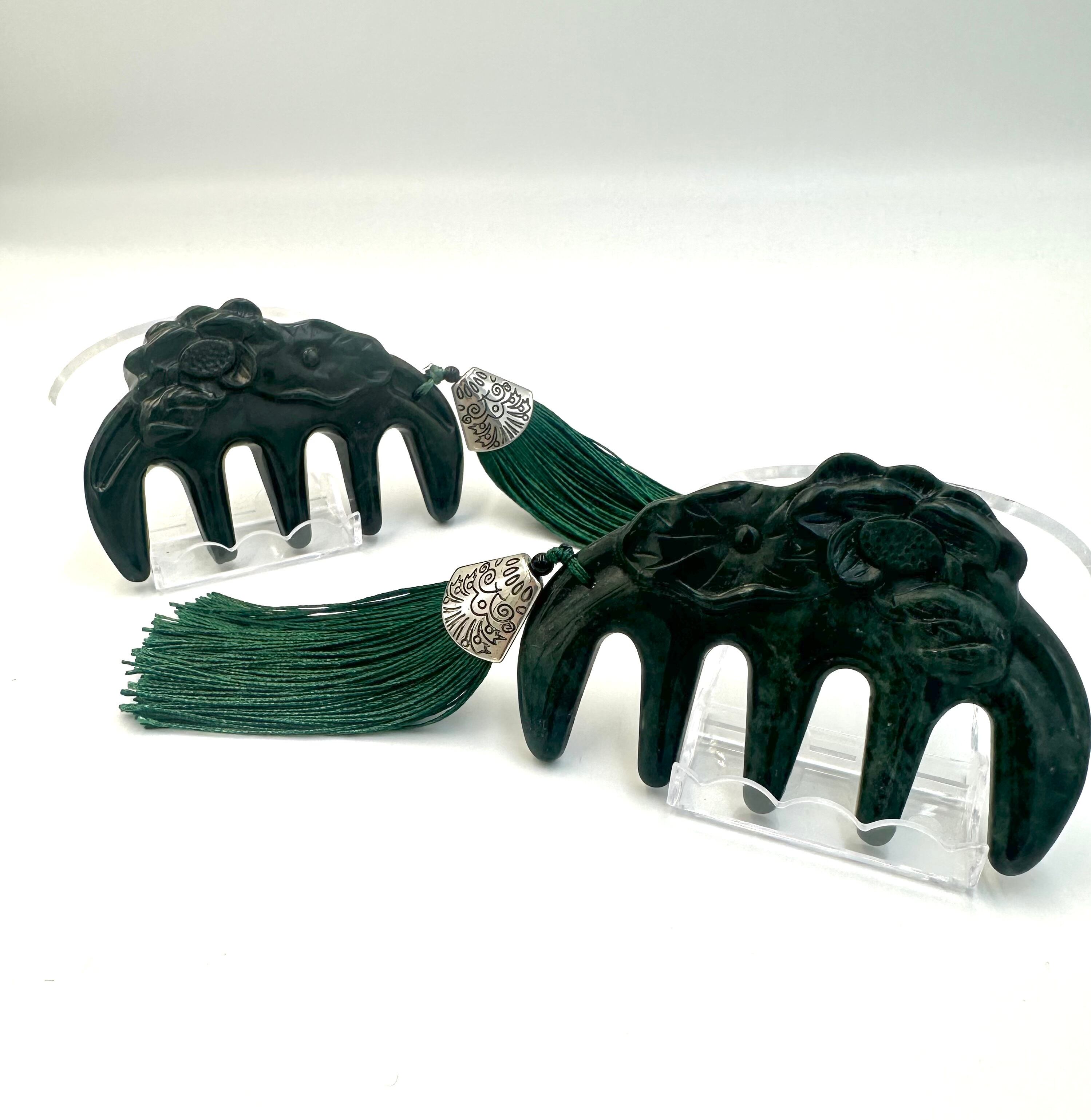 (00865)薬王石 天然くし 櫛 サーペンティン serpentine 蛇紋石