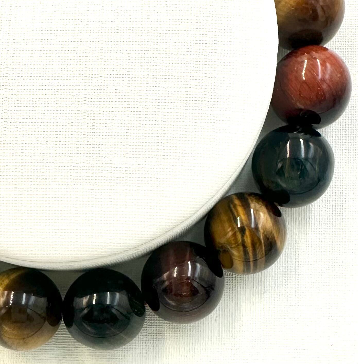 (00742)カラフルミックスタイガーアイ【10mm】 Tiger's eye 虎目石 虎眼石 金運 仕事運 ラウンドカット 天然石ブレスレット パワーストーン