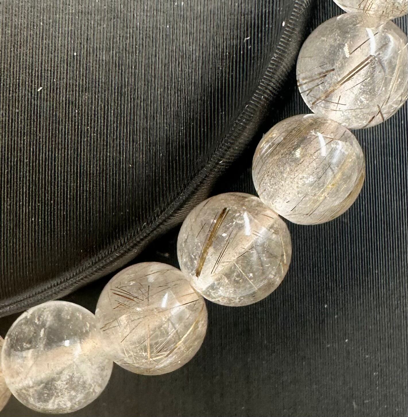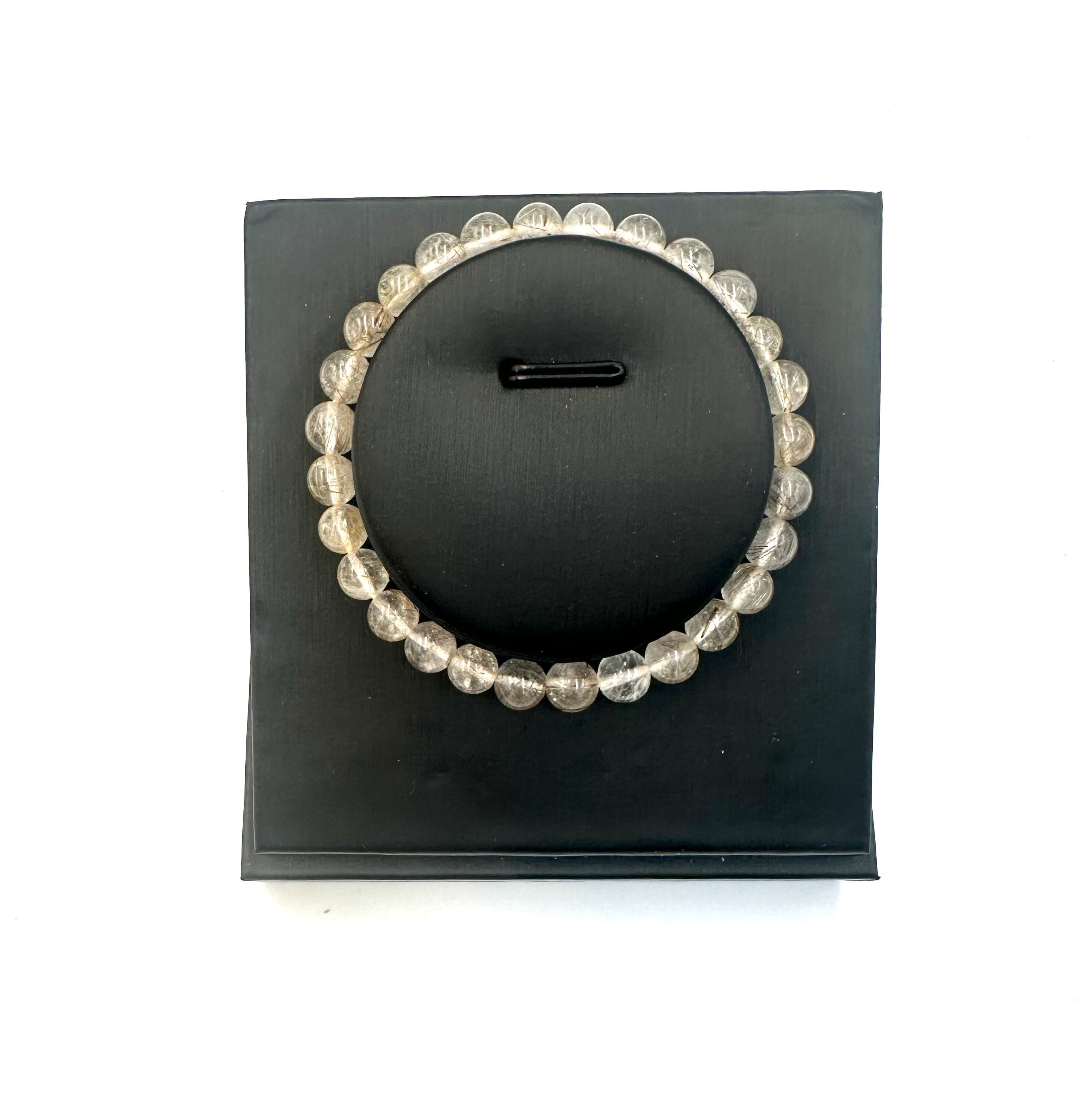 (00850)シルバールチルクォーツ 【6.5-7mm】 Rutilated Quartz ラビットヘアルチル ラウンドカット 天然石ブレスレット パワーストーン