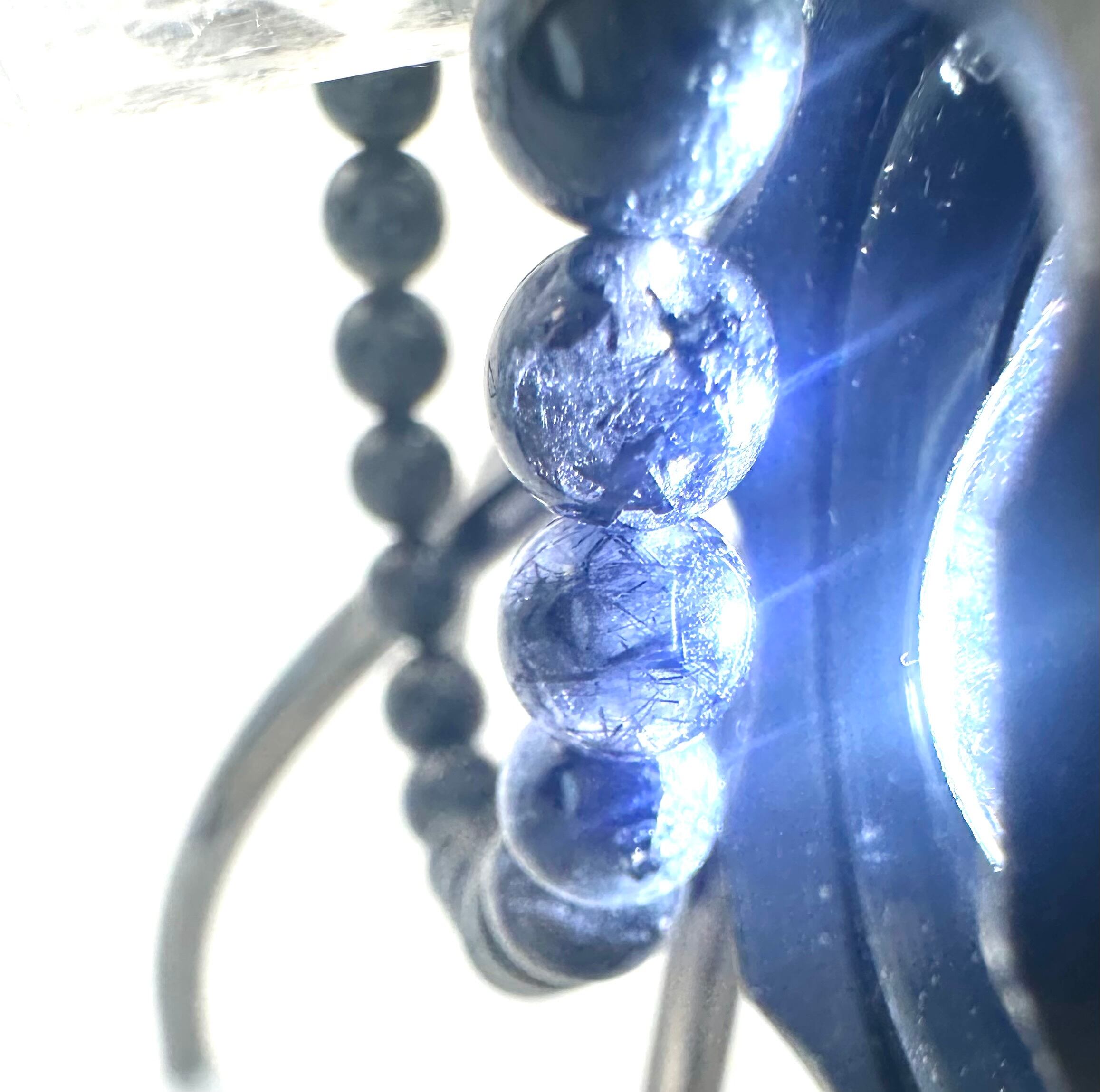ライトを当てていただくとクォーツの中にぎっしりと内包物が含まれていることを確認していただけます。