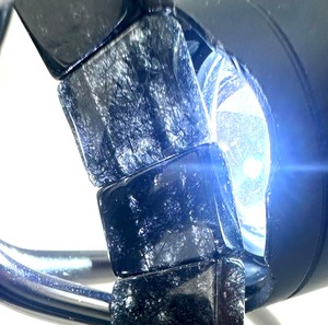 ライトを当てていただくとクォーツの中にぎっしりと内包物が含まれていることを確認していただけます。
