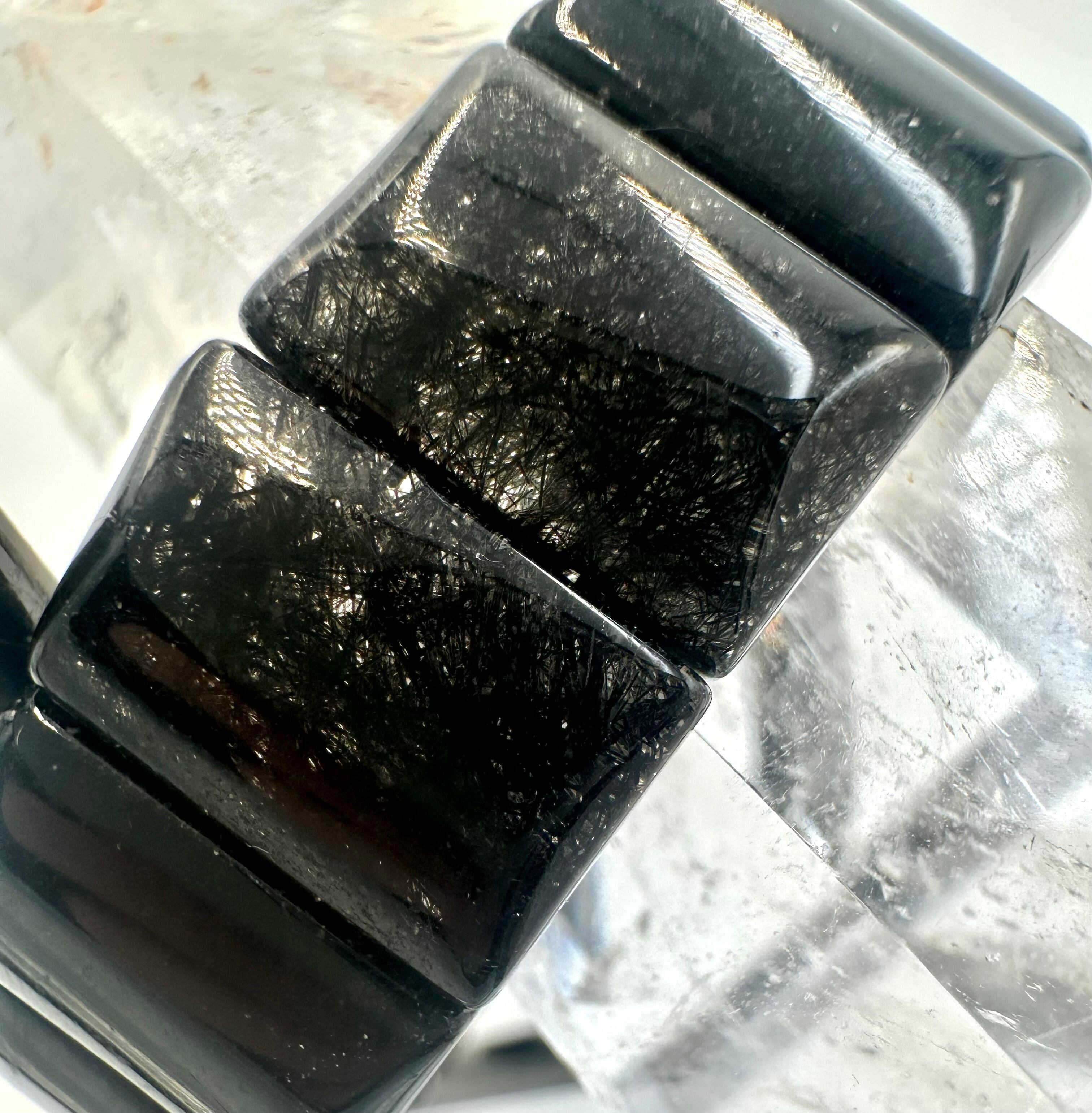 (00870)ブラックルチルクォーツ 【バングル15mm】 Rutilated Quartz ブラックトルマリン 天然石ブレスレット パワーストーン