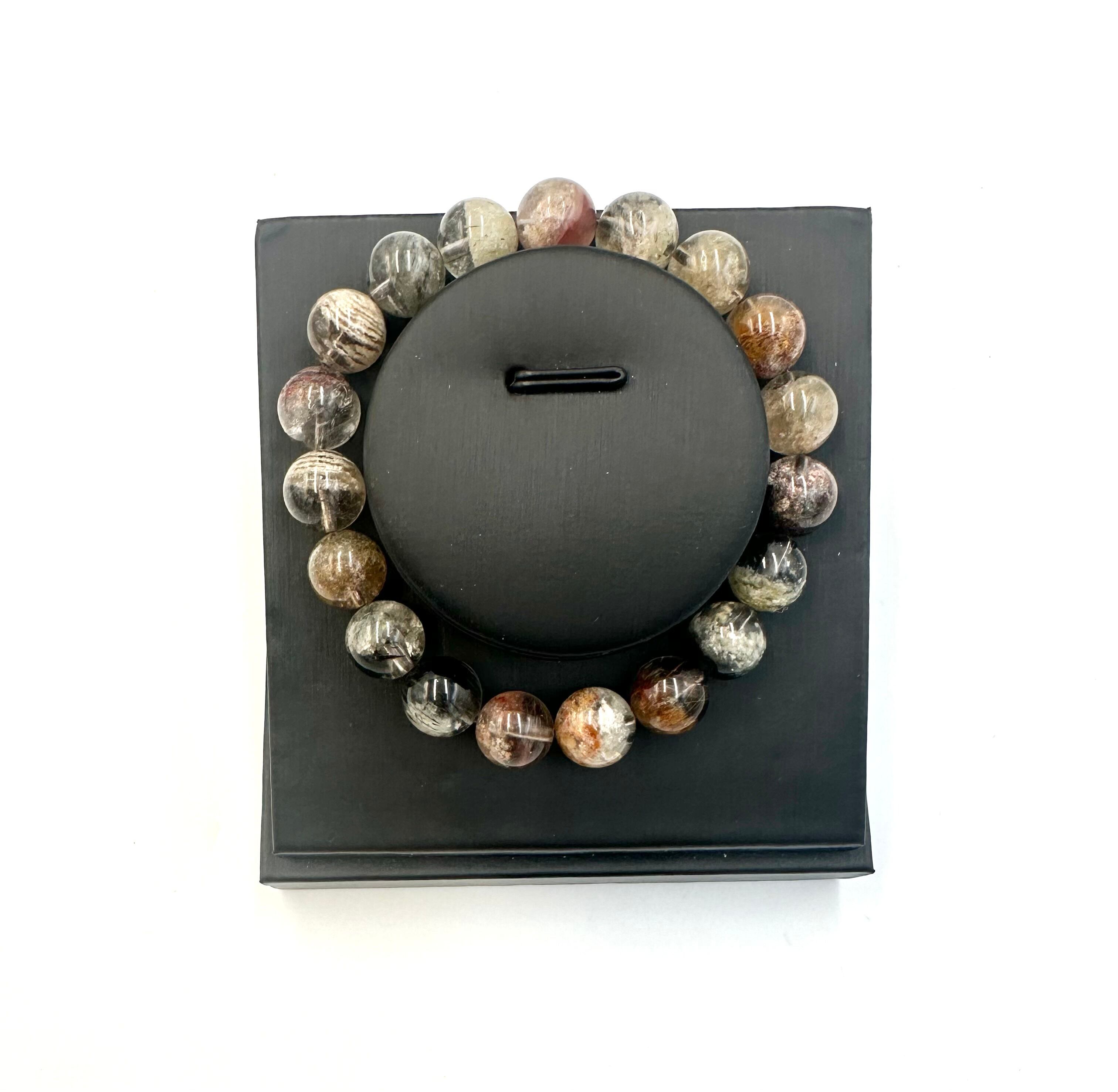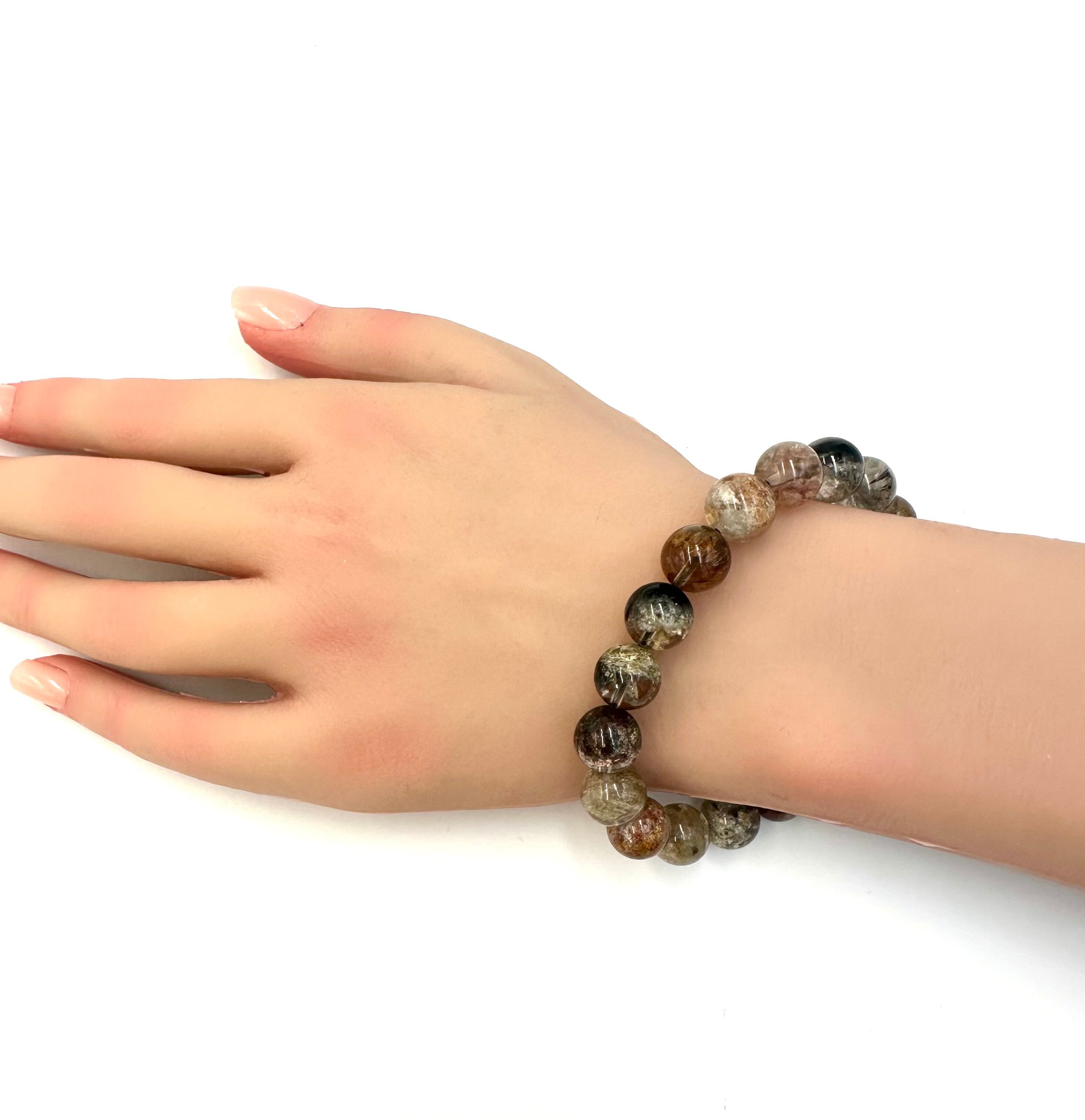 (00873)(1点のみ)良品質ガーデンルチルクォーツ【10.5-11mm】 Garden Quartz 庭園水晶 ルチル ラウンドカット 天然石ブレスレット パワーストーン