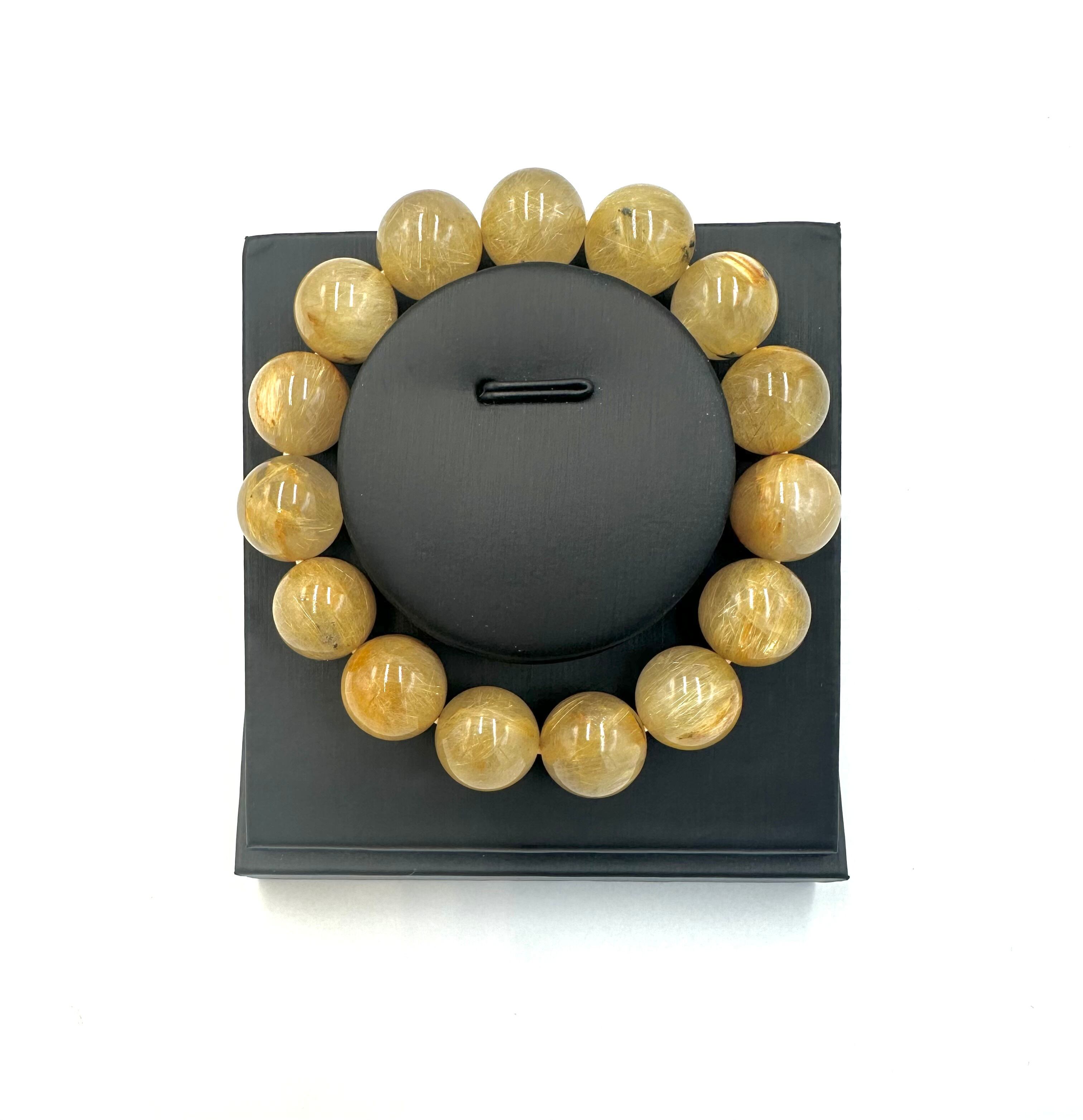(00876)(1点のみ)ゴールドルチルクォーツ 【14mm】 Rutilated Quartz タイチンルチル ヘマタイト ラウンドカット 金運 仕事運 天然石ブレスレット パワーストーン