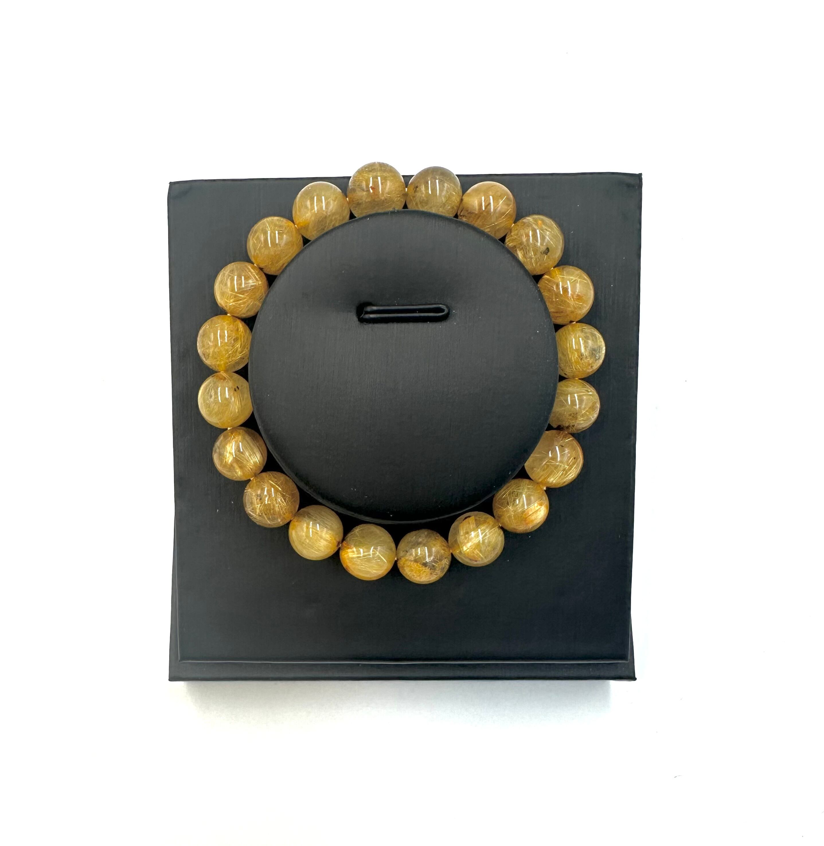 (00877)(1点のみ)ゴールドルチルクォーツ 【9.5-10mm】 Rutilated Quartz タイチンルチル ヘマタイト ラウンドカット 金運 仕事運 天然石ブレスレット パワーストーン