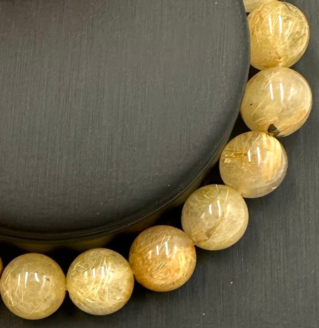 (00880)ゴールドルチルクォーツ 【9mm】 Rutilated Quartz タイチンルチル ヘマタイト ラウンドカット 金運 仕事運 天然石ブレスレット パワーストーン