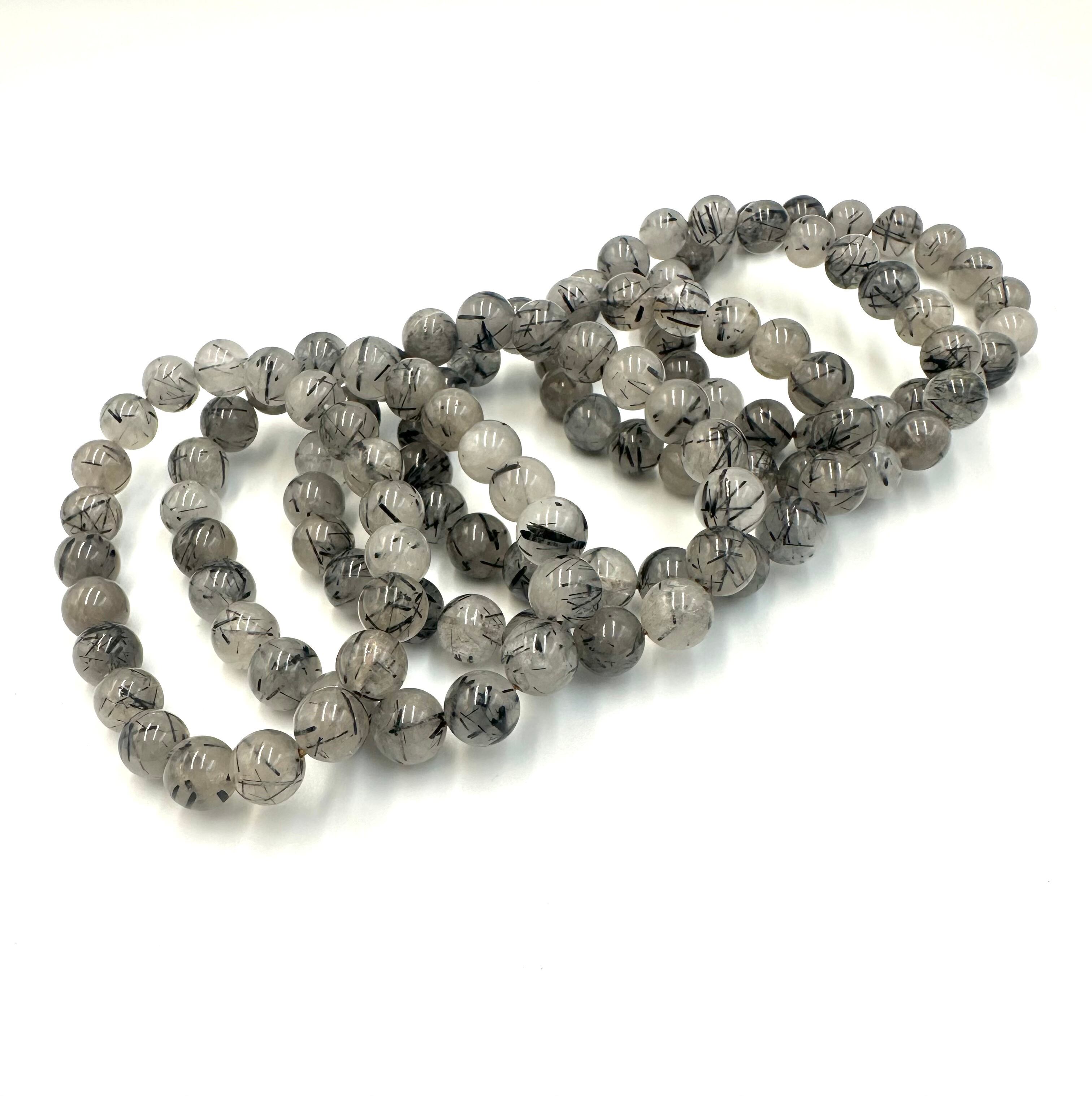 (00881)【880円均一】ブラックルチルクォーツ 【9mm】 Rutilated Quartz ラウンドカット 金運 仕事運 天然石ブレスレット パワーストーン