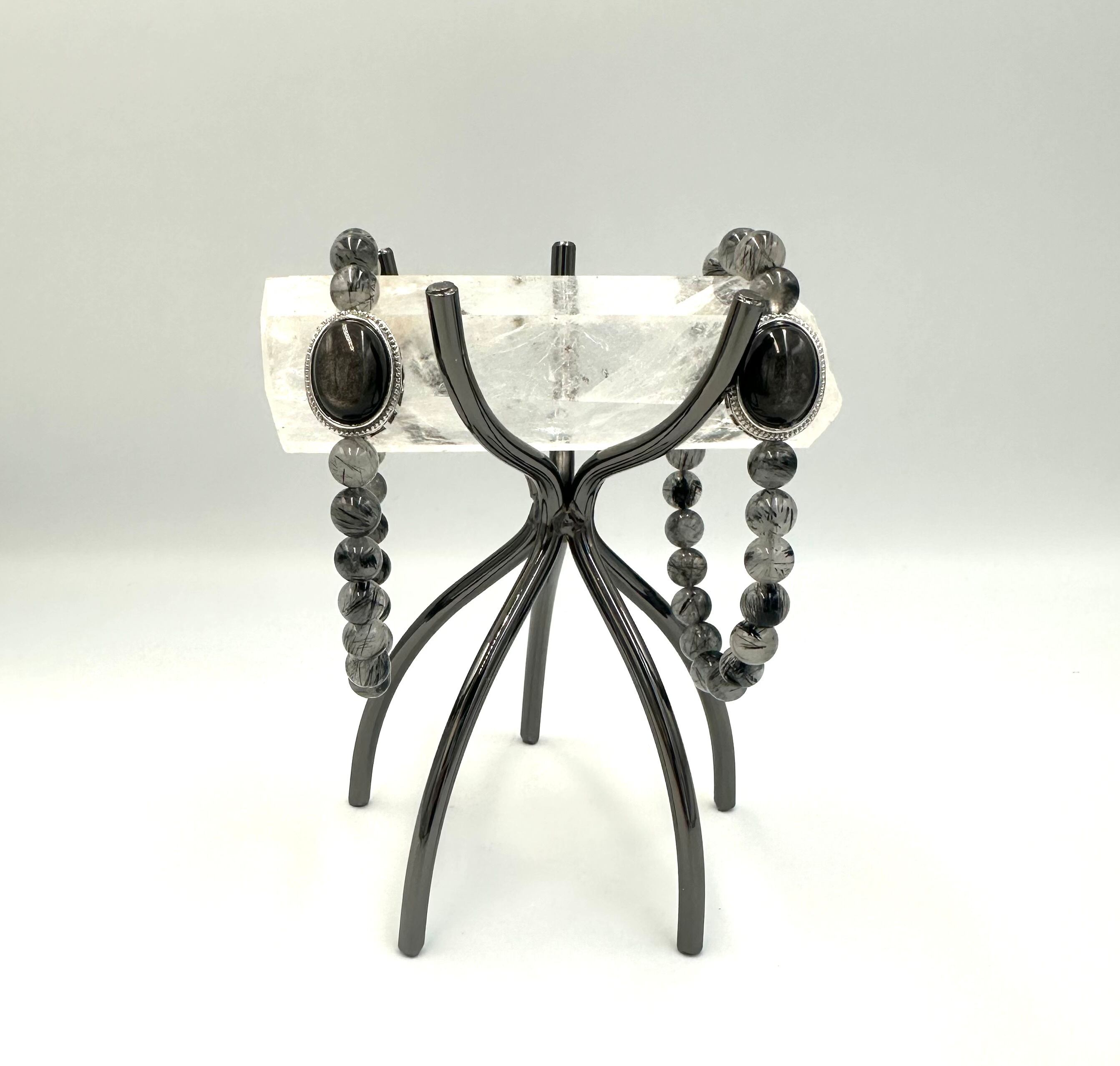 ※トップパーツはシルバーオブシディアン、金属部分は合金メッキです。アレルギーの方はご注意ください。
