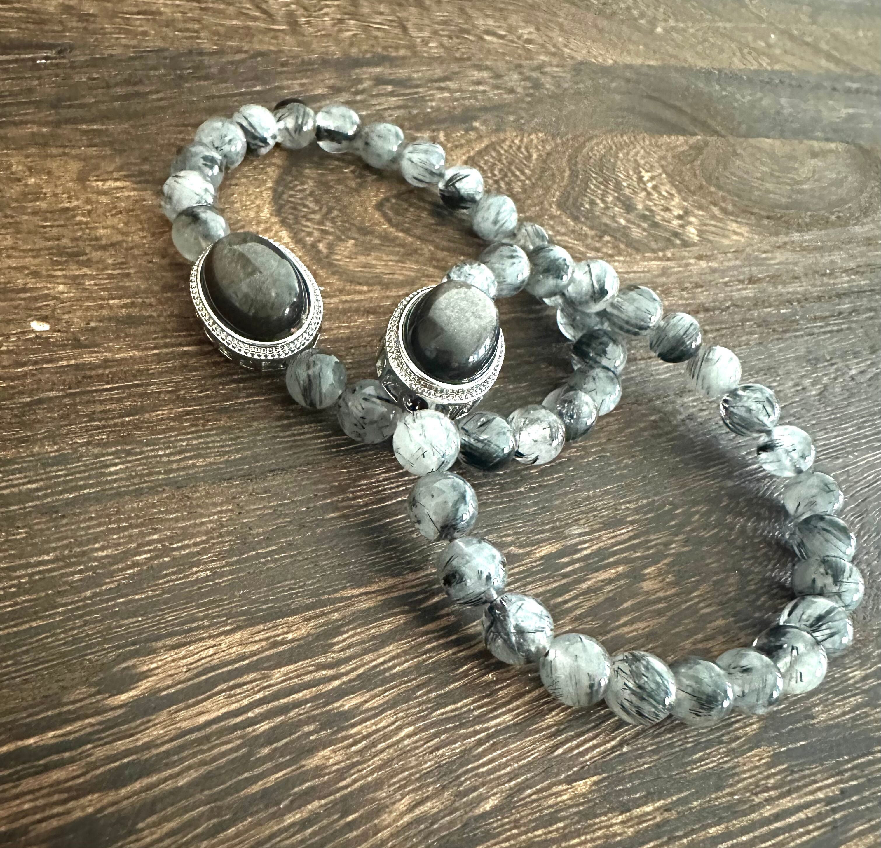(00884)【880円均一】ブラックルチルクォーツ(選べる内径) 【8mm】 Rutilated Quartz デザインブレスレット ラウンドカット 金運 仕事運 天然石ブレスレット パワーストーン
