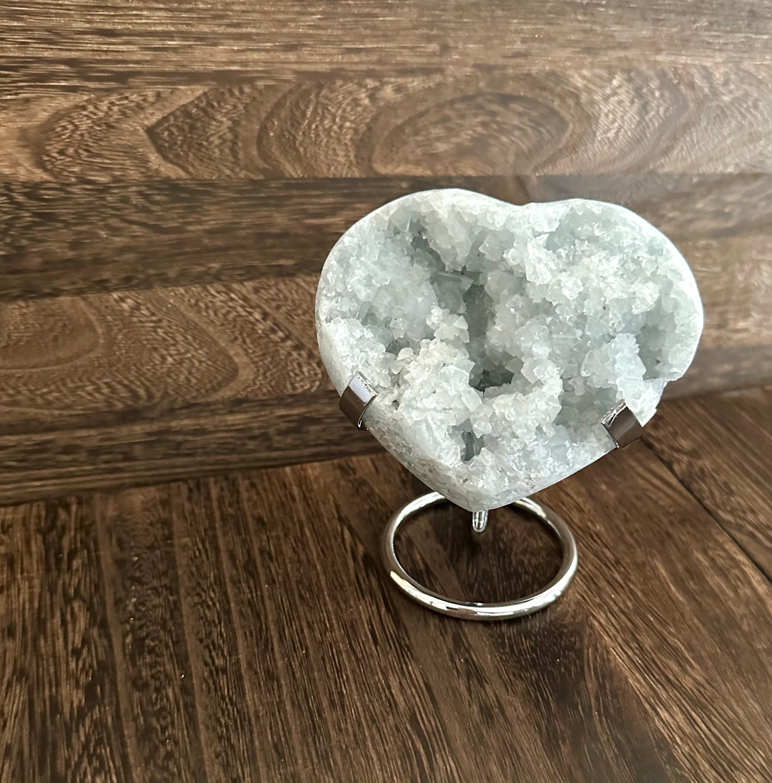 (00886)【1点のみ】セレスタイト 原石 ハート型 Celestite 天青石 天然石インテリア 置物 パワーストーン ホワイト ブルーグレー