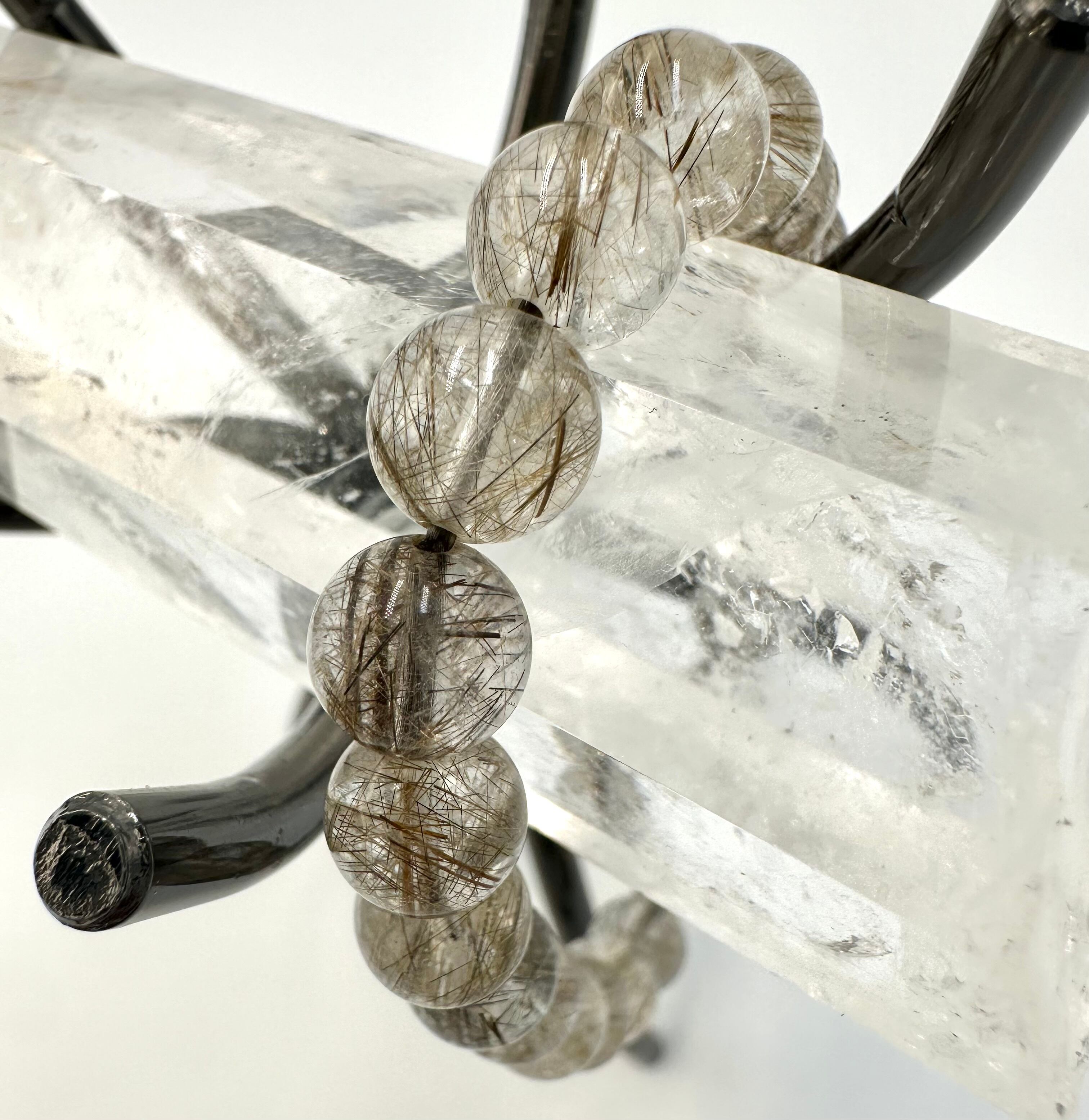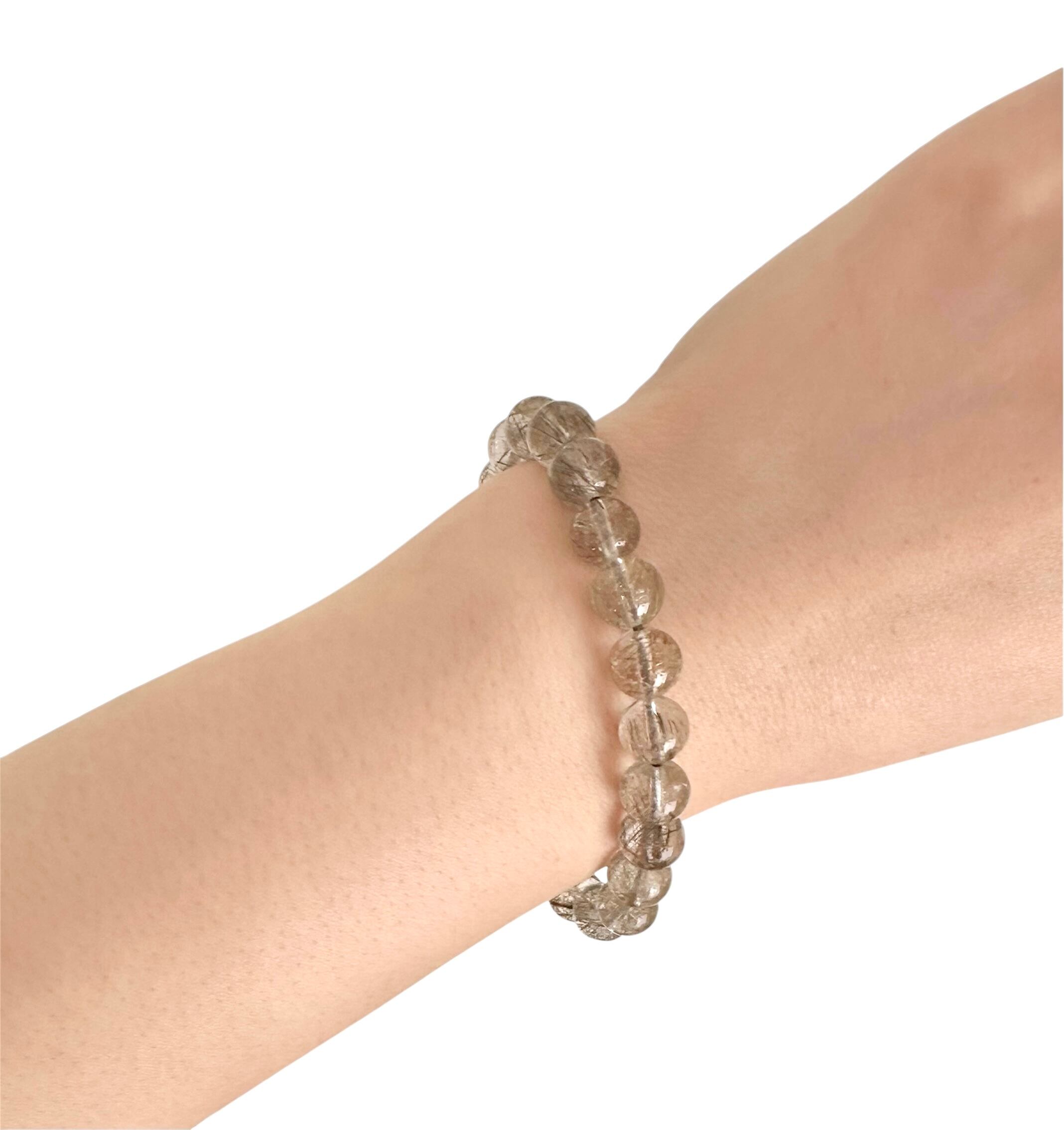 (00893)(1点のみ)【鑑別書付】シルバールチルクォーツ 【8mm】 Rutilated Quartz ラウンドカット 金運 仕事運 天然石ブレスレット パワーストーン