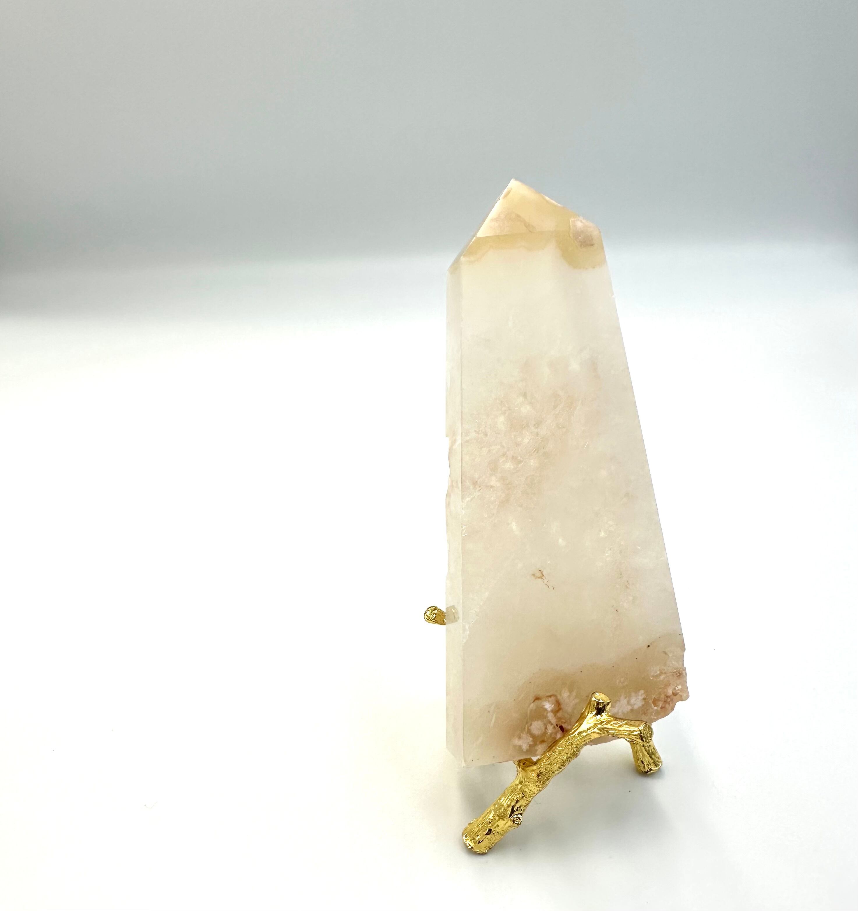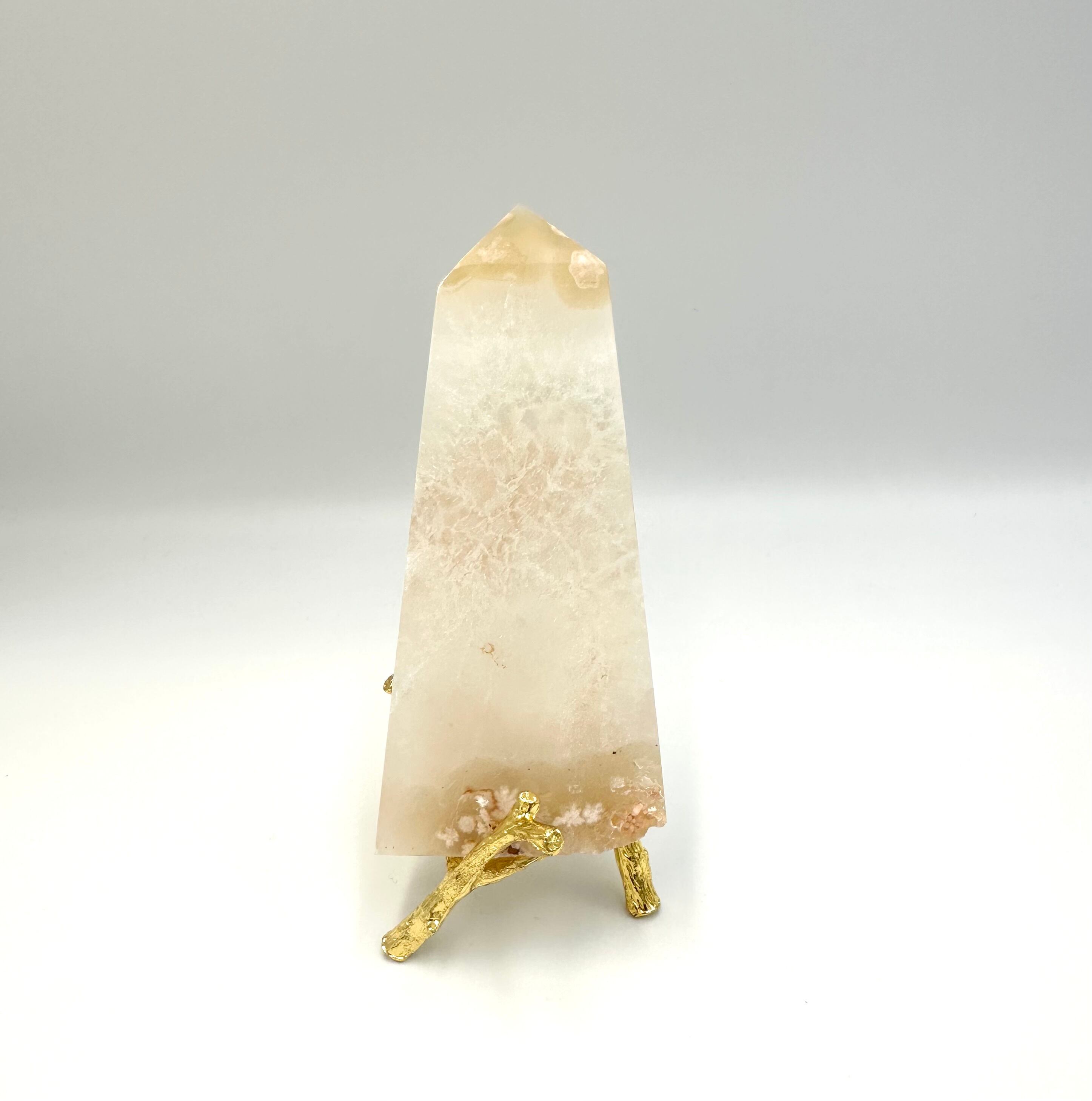 (00908)【1点のみ】フラワーアゲート タワー型置物【台座付き】 スライス 桜メノウ 花瑪瑙 Cherry Blossom Agate Flower Agate 天然石インテリア 置物