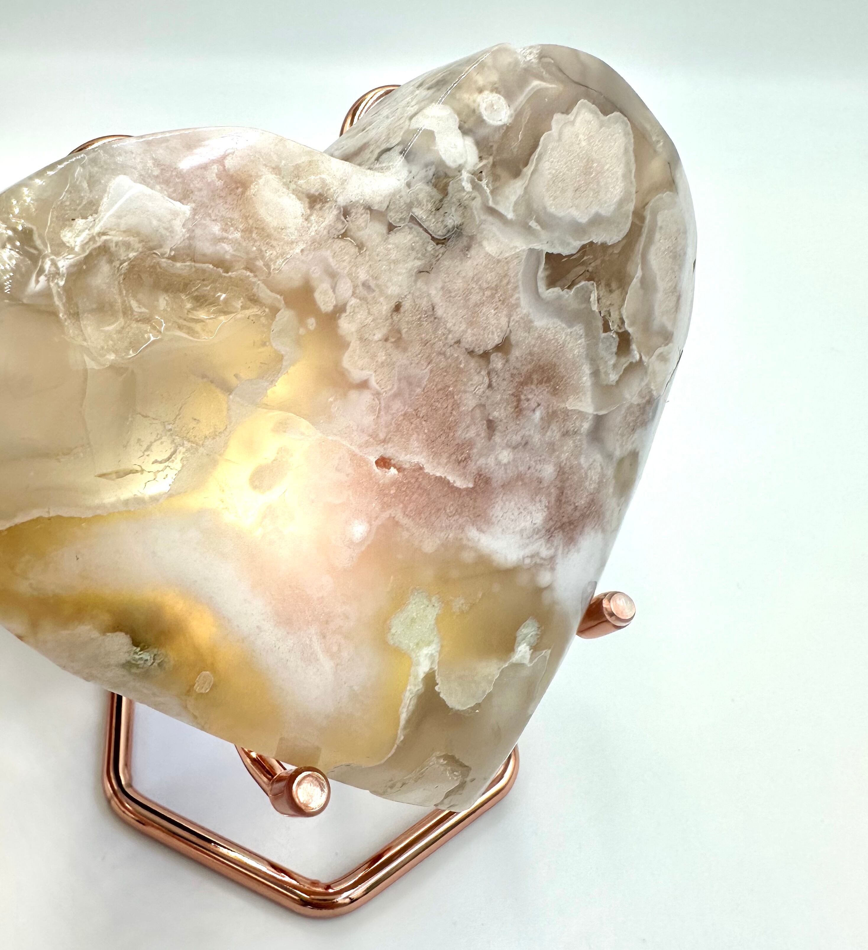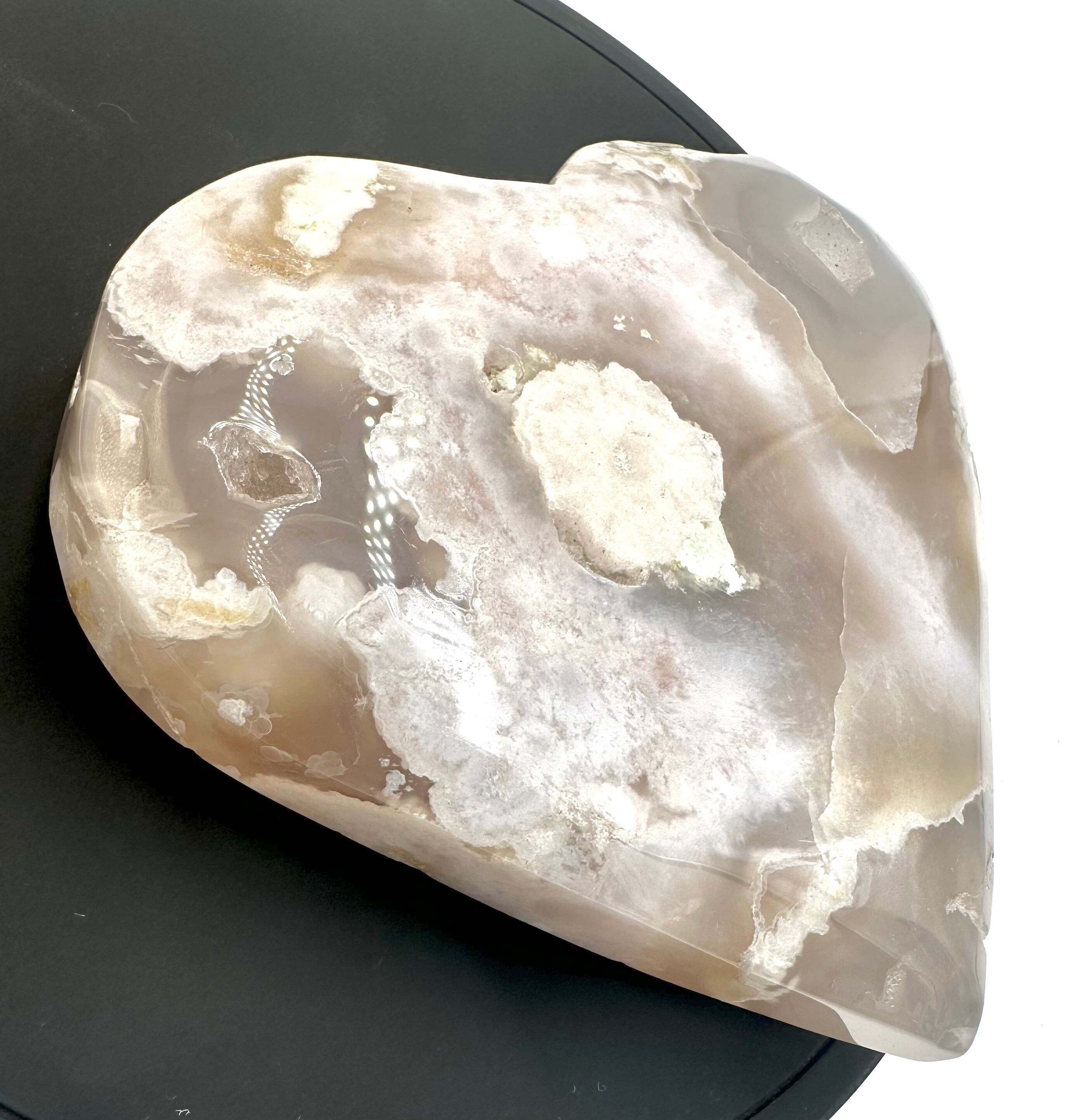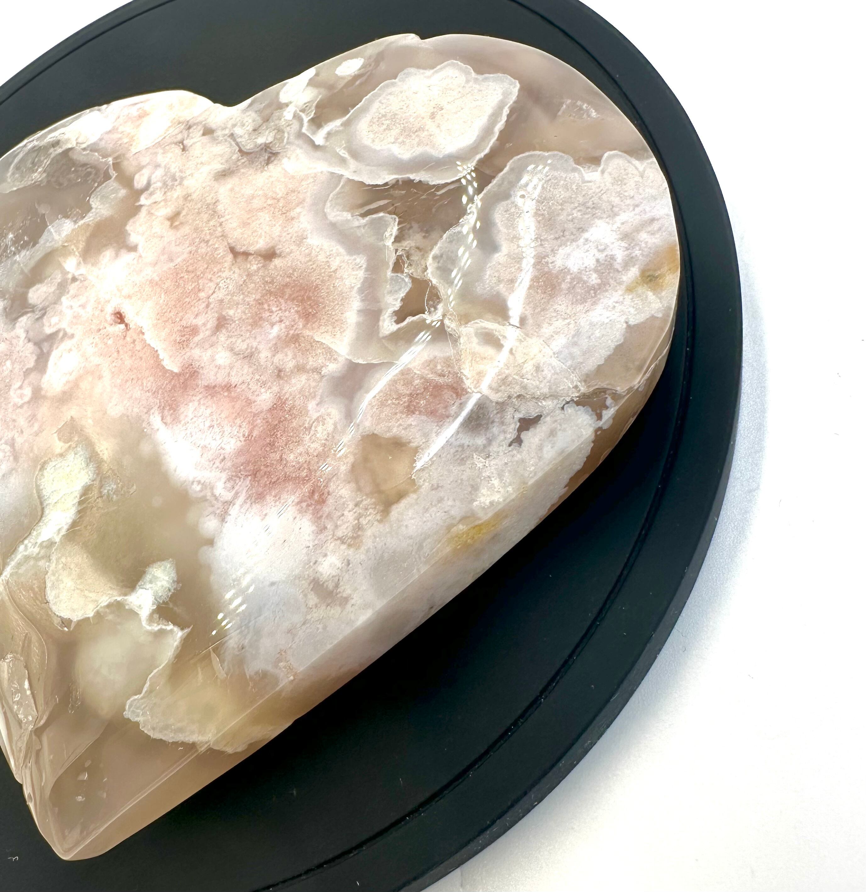 (00910)【1点のみ】フラワーアゲート 大きいハート 桜メノウ 花瑪瑙 Cherry Blossom Agate Flower Agate 天然石インテリア 置物