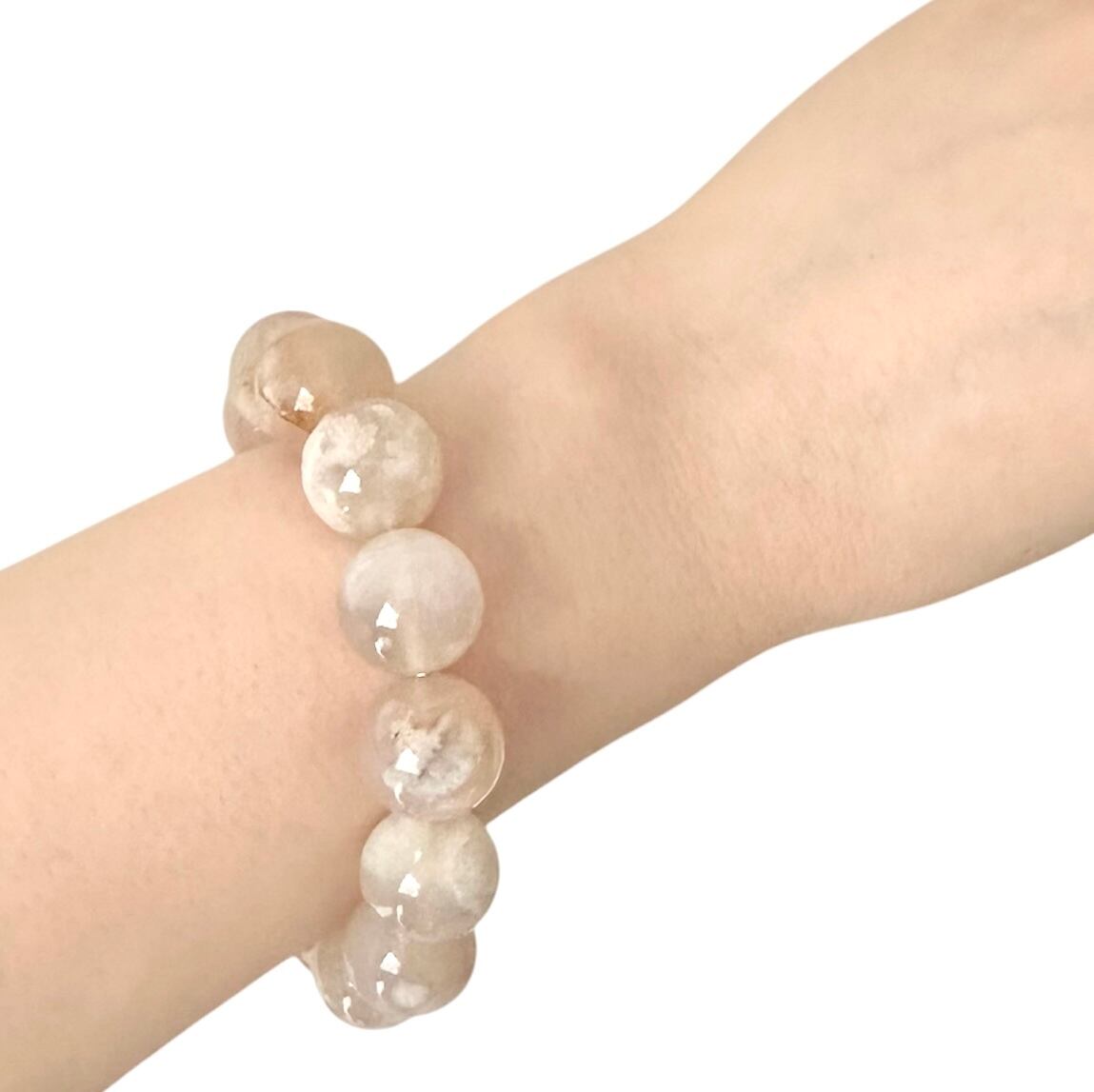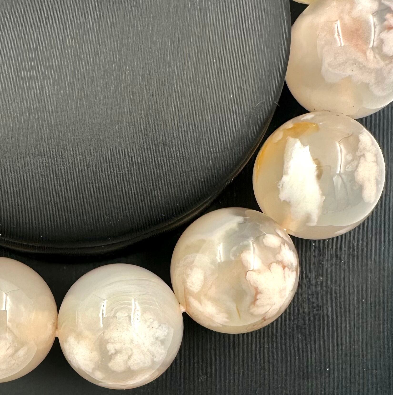 (00913)【1点のみサービス品】フラワーアゲート【15mm】桜メノウ 花瑪瑙 Cherry Blossom Agate Flower Agate ラウンドカット 天然石ブレスレット パワーストーン