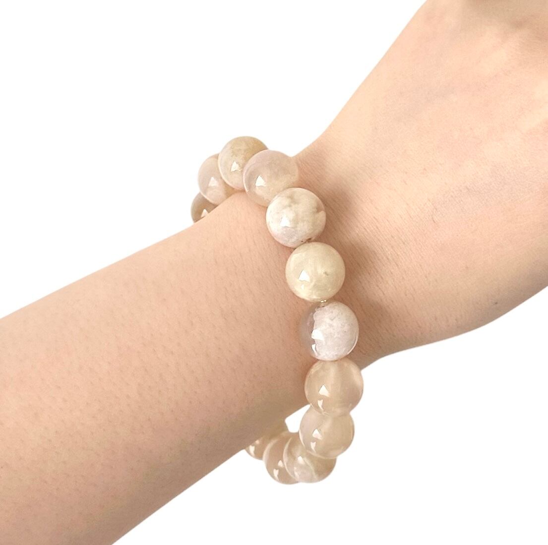 花瑪瑙・桜瑪瑙は瑪瑙の中に花びらのような内包物が入っています。ピンクや白乳、オレンジやベージュなど可愛らしい優しい色味が特徴です。稀にグリーンのものもありますが天然色ではとても希少です。クォーツのグループに属します。