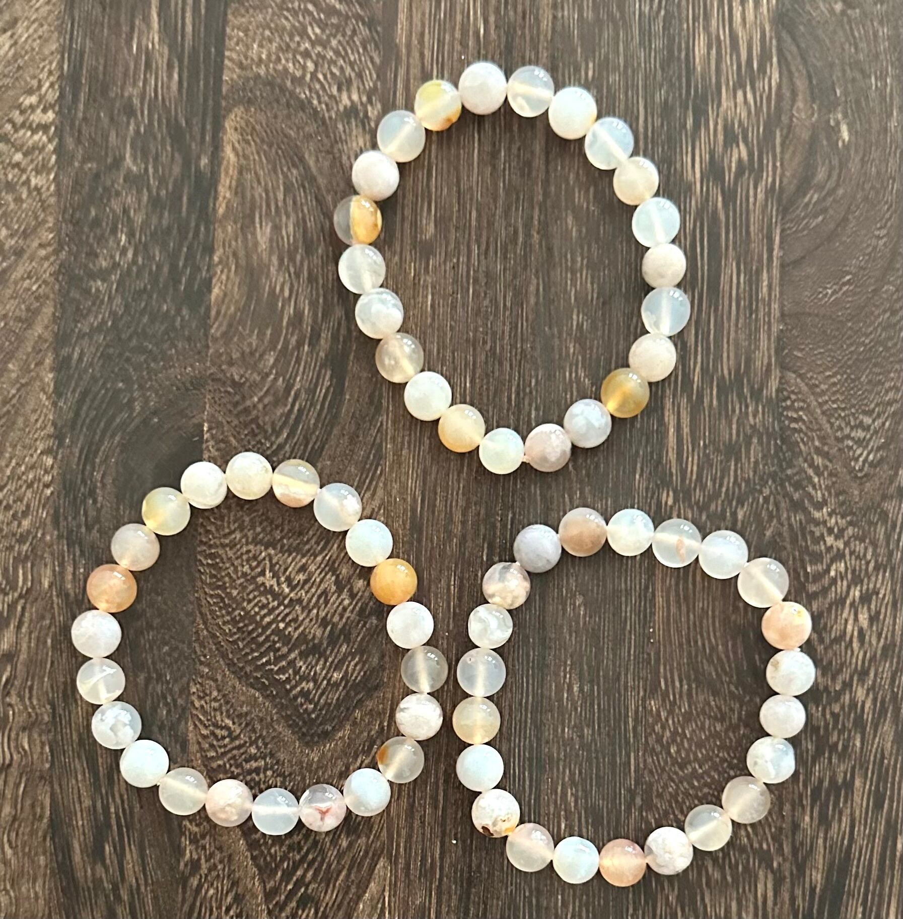 (00916)【サービス品】フラワーアゲート【8.5-9mm】桜メノウ 花瑪瑙 Cherry Blossom Agate Flower Agate ラウンドカット 天然石ブレスレット パワーストーン