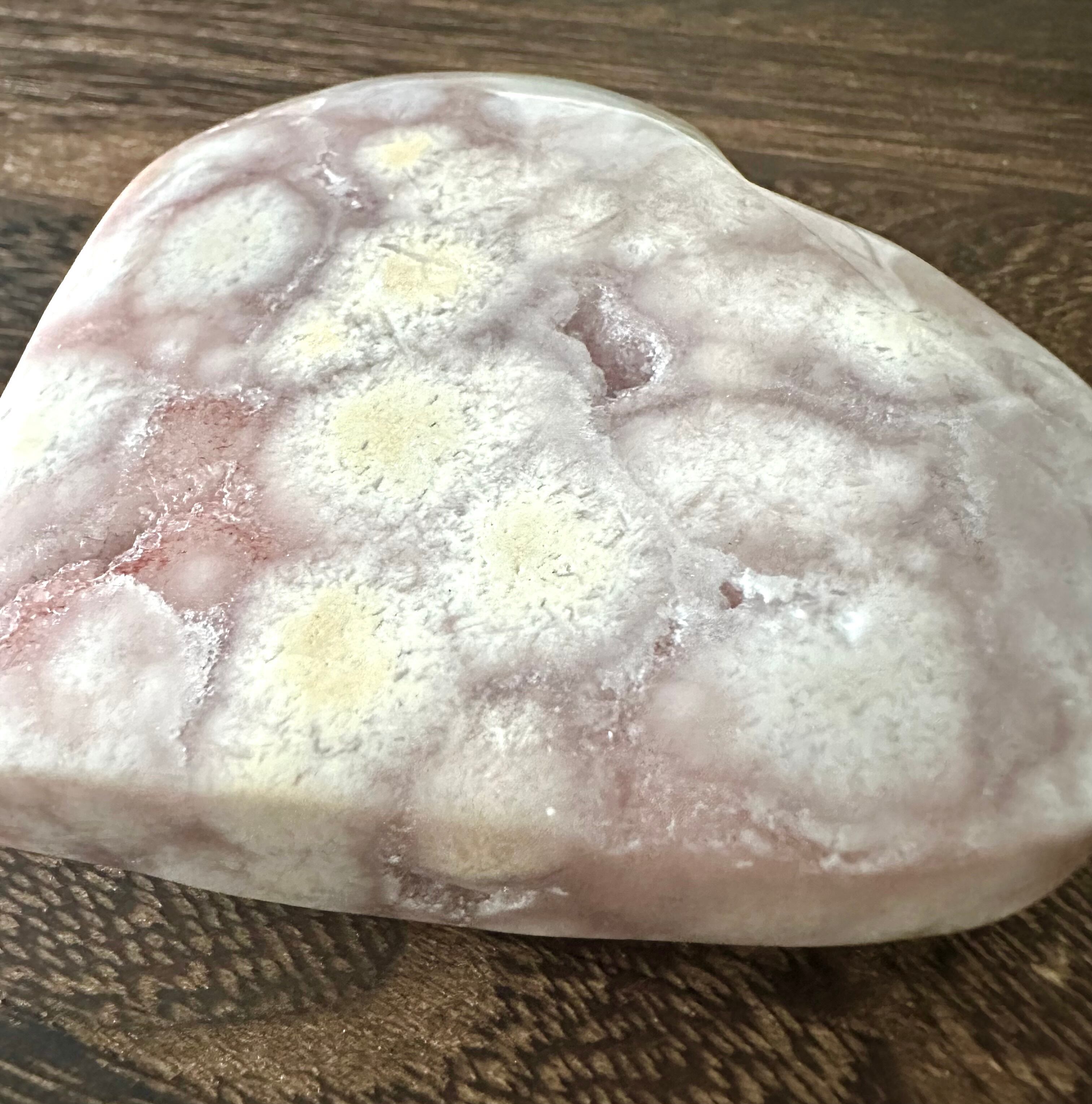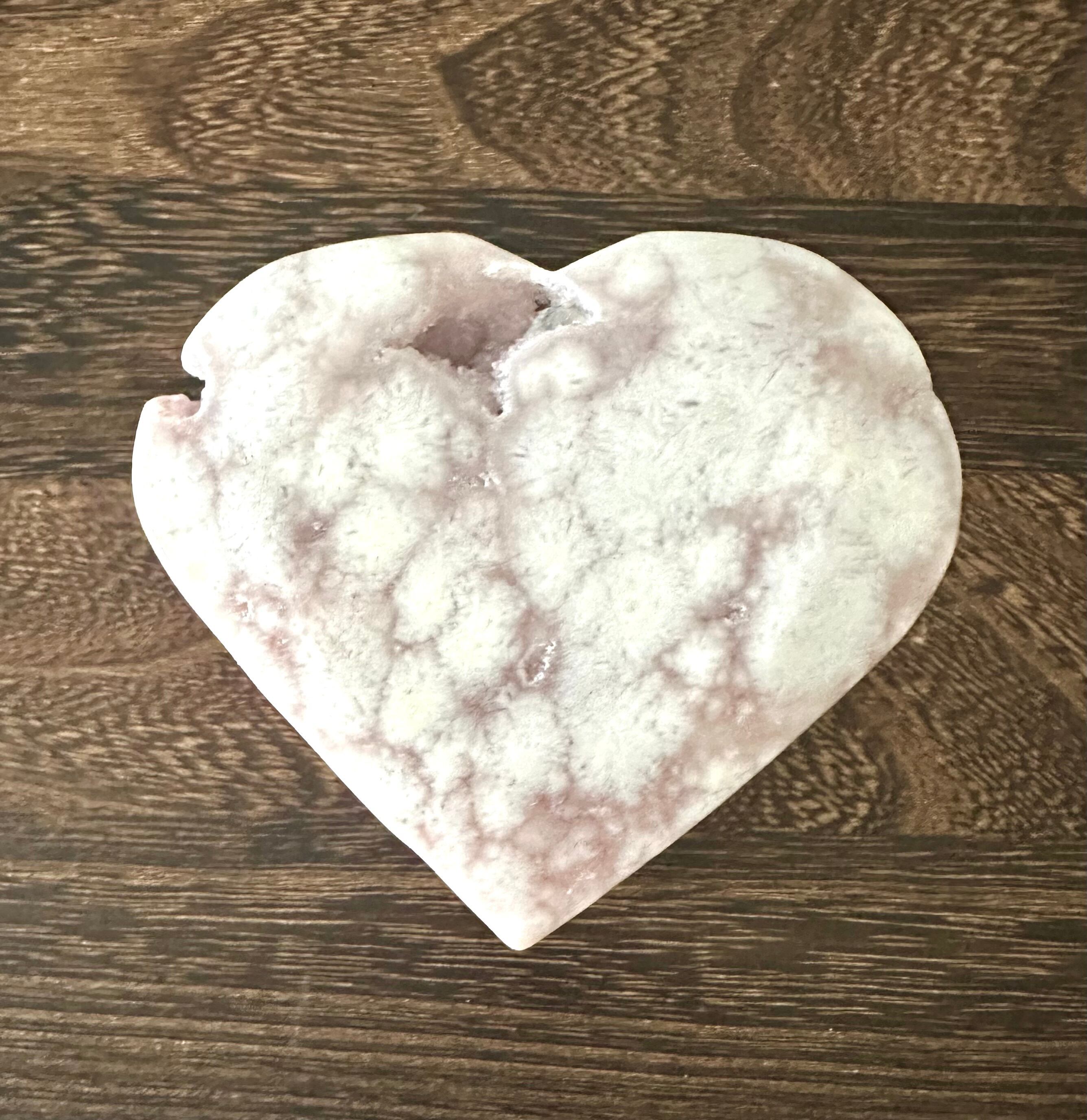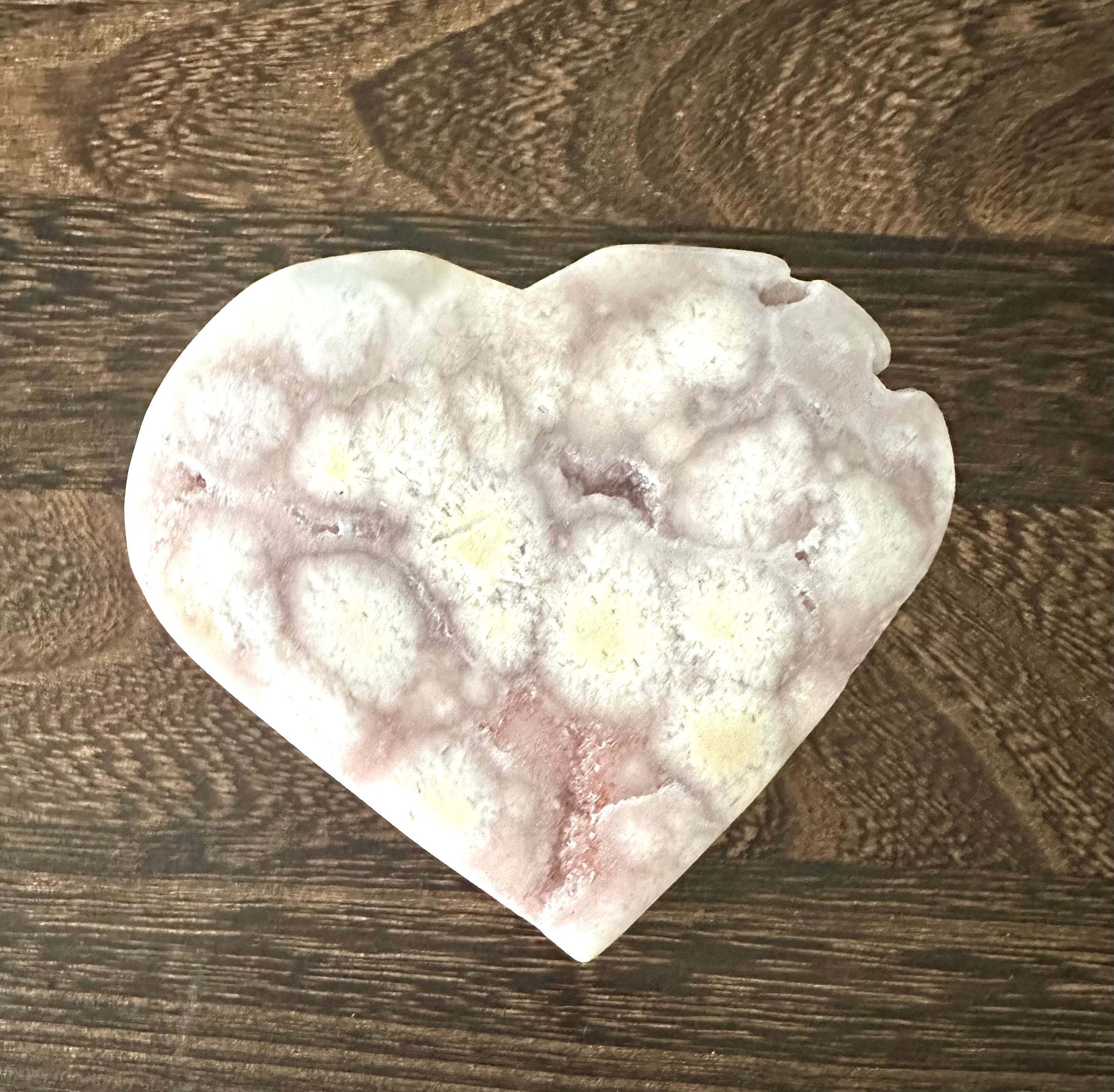 (00936)【1点のみ】ピンクアメジスト フラワーアゲート 桜メノウ ハート型 ピンアメ 花瑪瑙 Amethyst Cherry Blossom Agate Flower Agate 天然石インテリア 置物