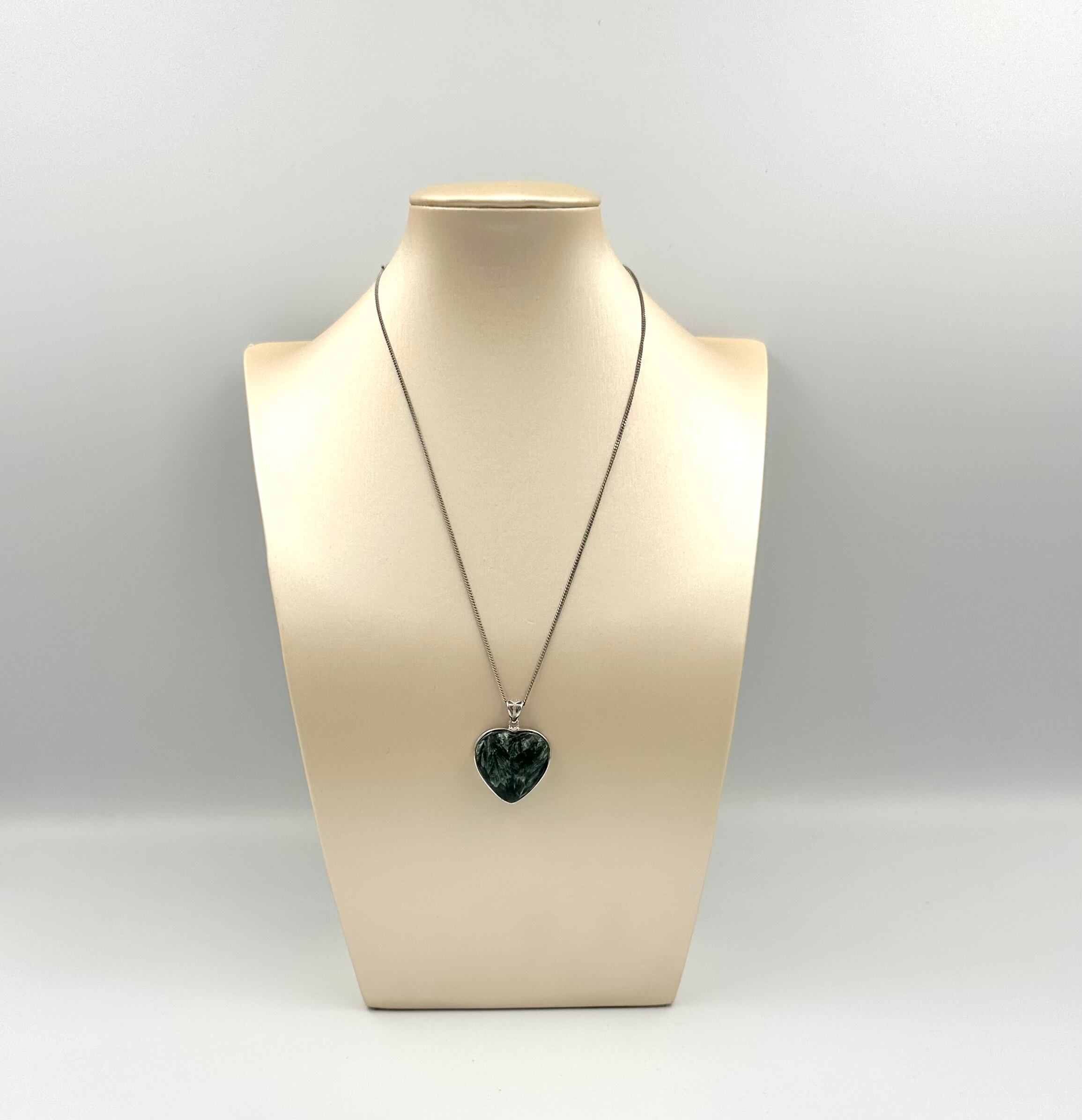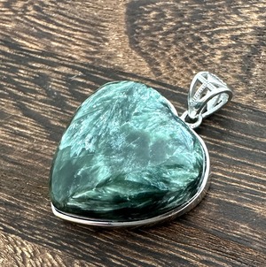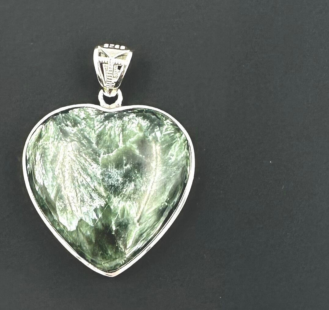 (00942)(1点のみ)(鑑別書付き)セラフィナイト クロライトインクォーツ (S925シルバー)ハート型 グリーンチャロアイト 斜緑泥石 緑沼石 Seraphinite Chlorite in Quartz ペンダントトップ 天然石ネックレス パワーストーン ヒーリング