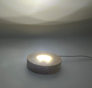 (00972)ライト付台座1個用 照明台座 ラウンド USB式 天然石インテリア ウッドディスプレイベース クリスタルディスプレイ 丸型