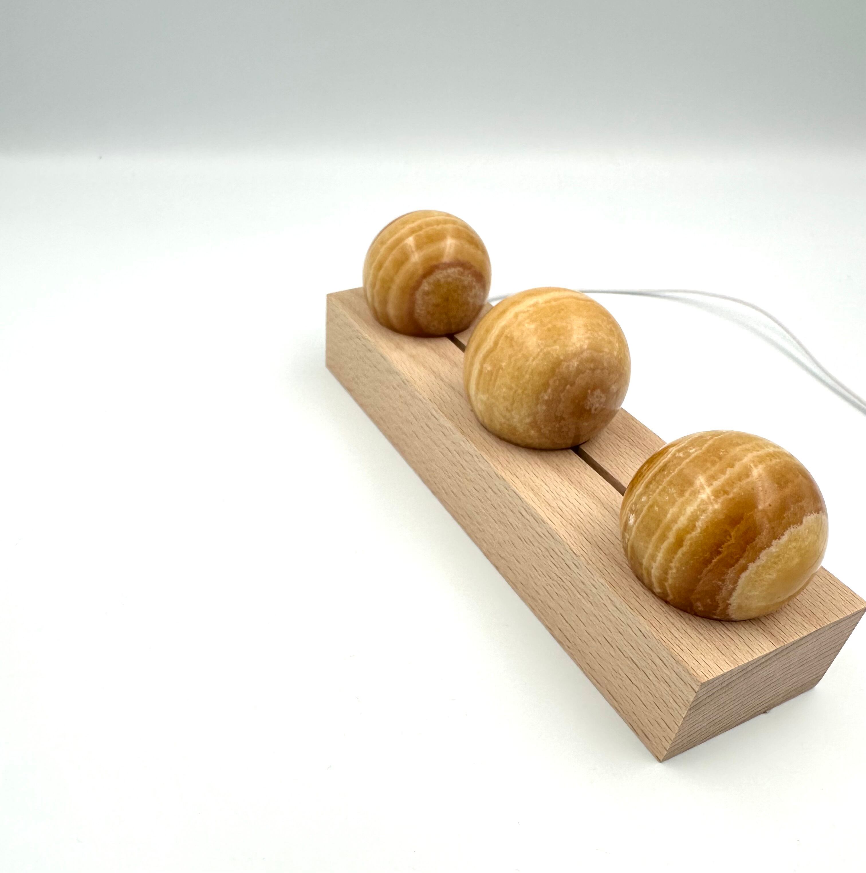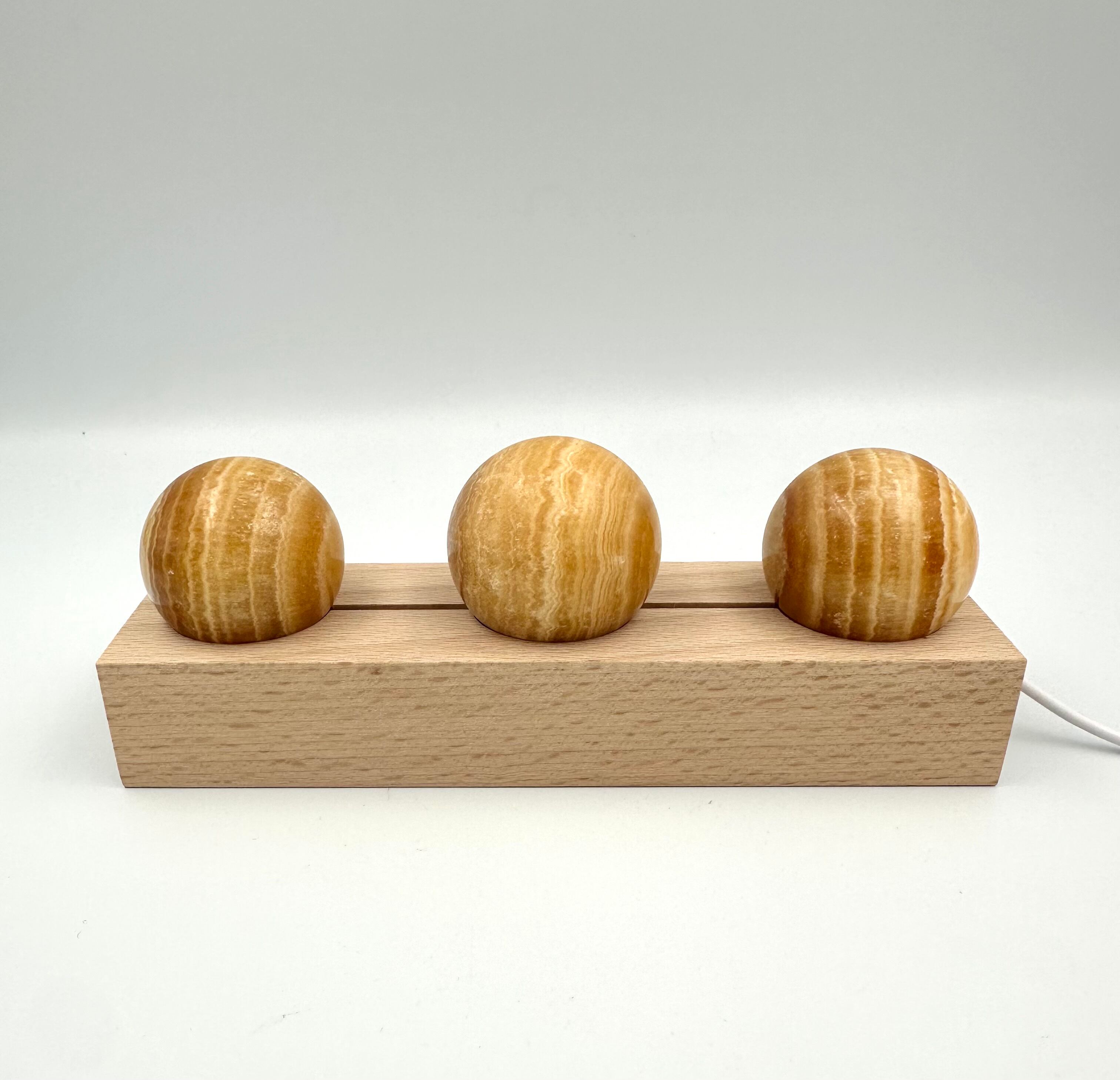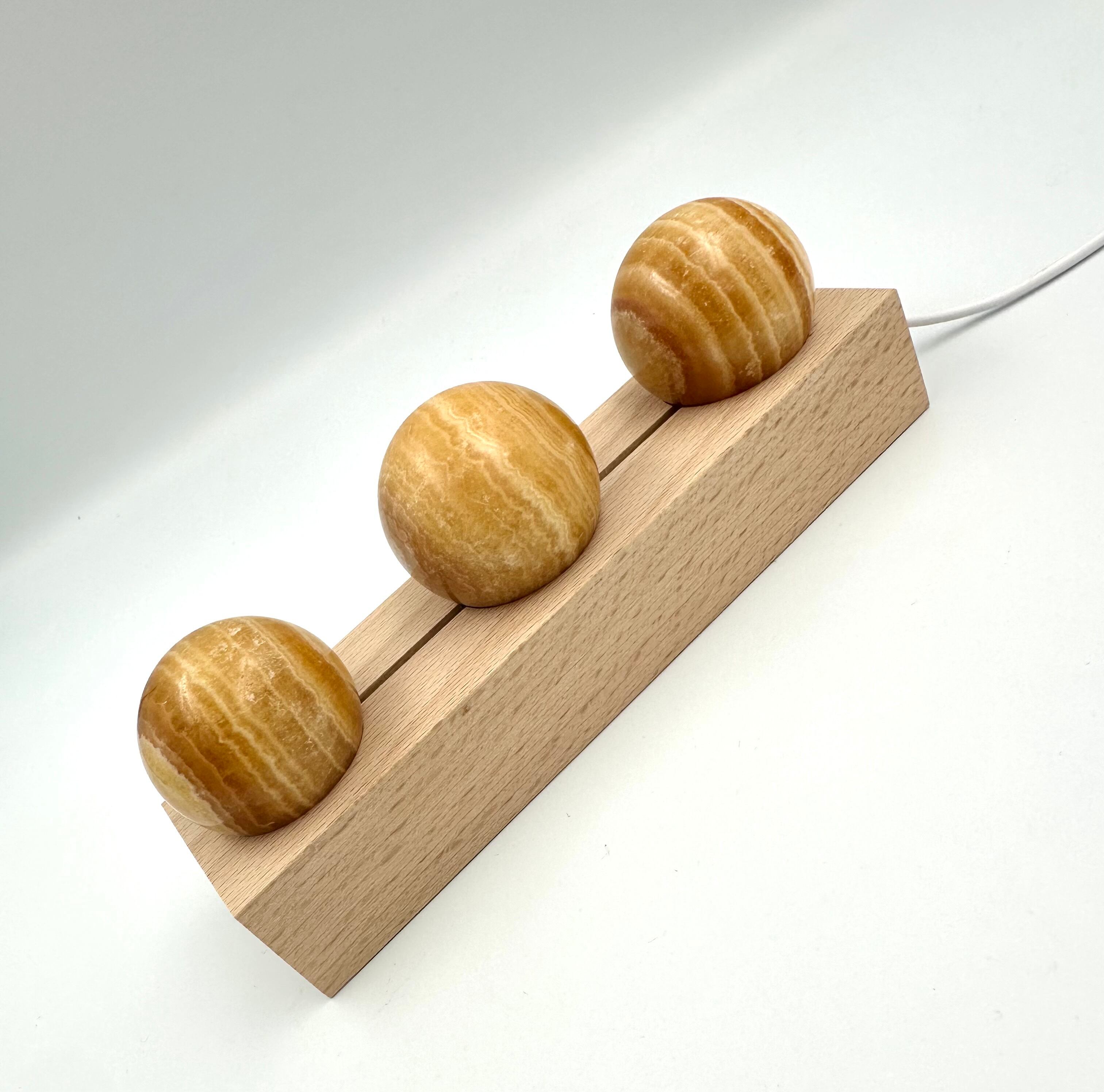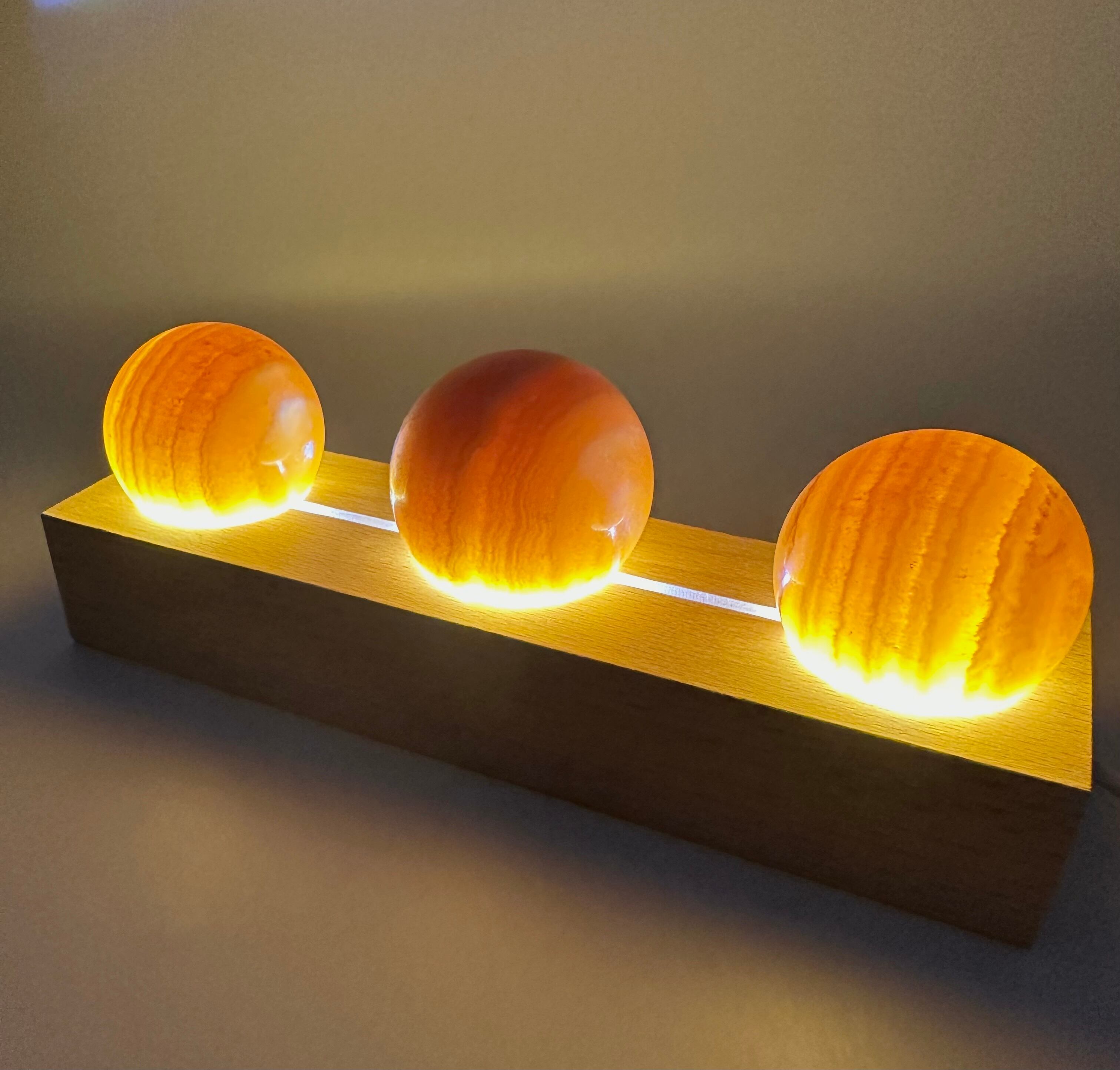 (00971)【1セットのみ】(スフィア3個ライト台座付き)オレンジカルサイト ハニーカルサイト スフィア 3個セット 丸玉 丸型 ルームライト Calcite 方解石 天然石インテリア 置物 ベッドライト パワーストーン