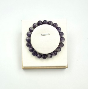 こちらはドリームアメジストで、濃いパープルのクリスタルに羽模様や、縞模様が入ってそれが特徴になっているアメジストの一種です。