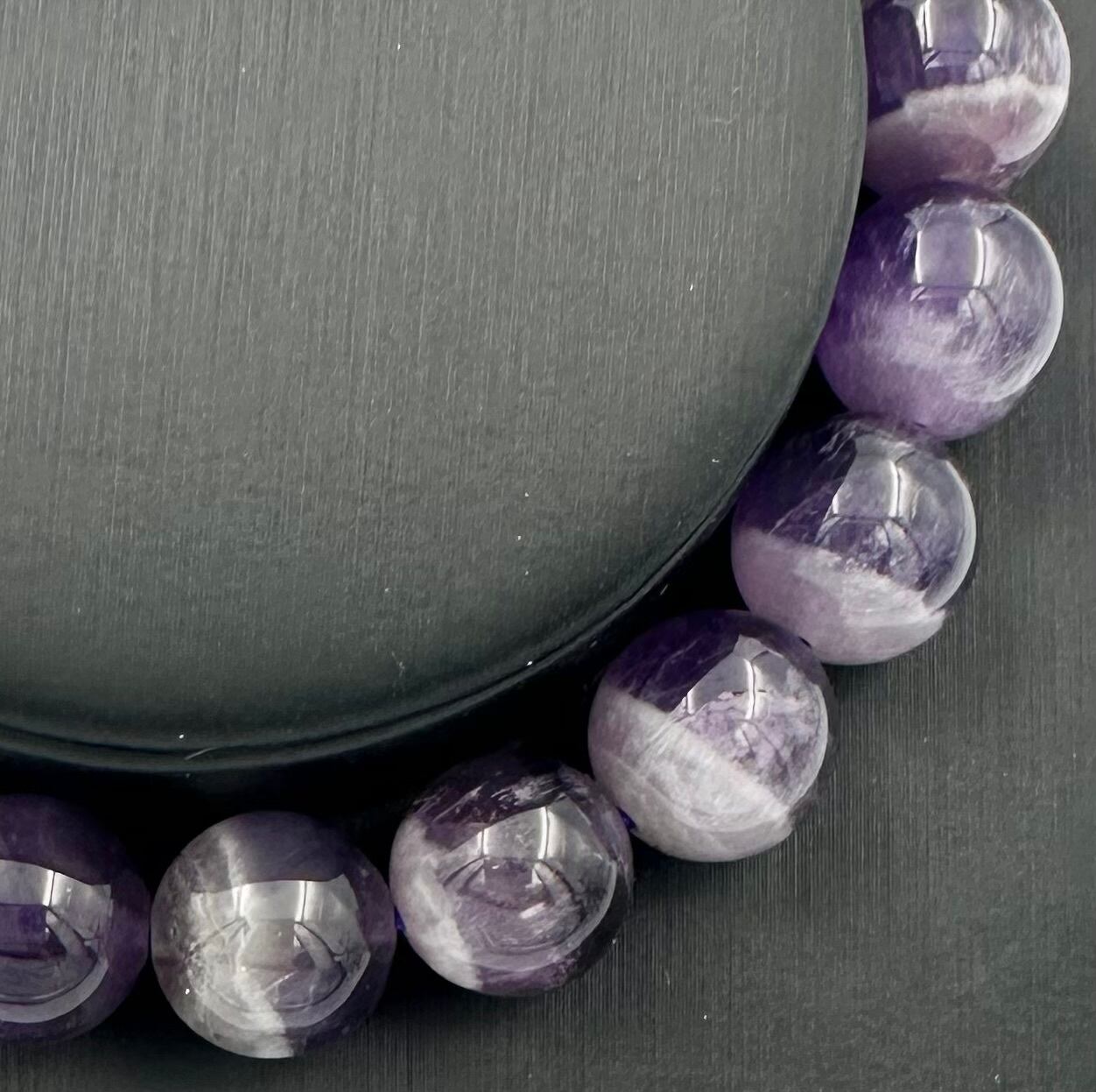 (01017)シェブロンアメジスト【9.5-10mm】ドリームアメジスト ケープアメジスト Amethyst 紫水晶 ラウンドカット 厄除け 魔除け ラウンドカット パワーストーン 天然石