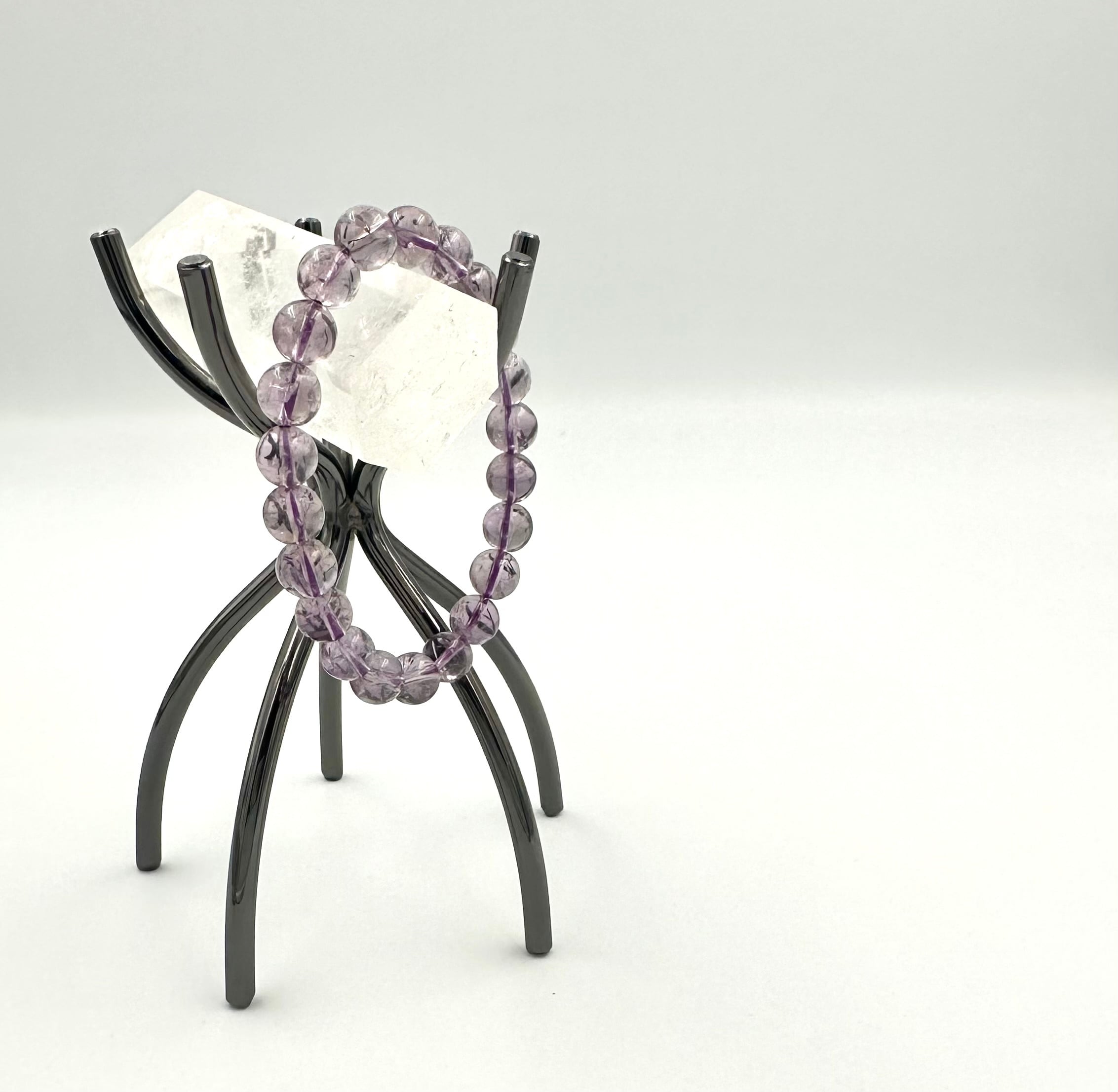 こちらは淡い色味と透明感のあるブラジル産アメジストにクラックと虹があるアイリスアメジストと呼ばれる天然石です。今回ご案内のアイリスアメジストは天然クラックタイプになりますので華やかなキラキラとした雰囲気よりも落ち着きのあるキラキラ感です。