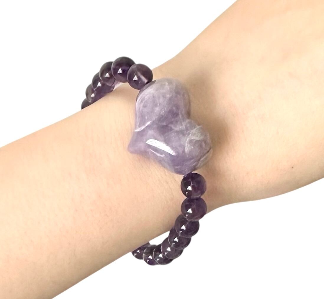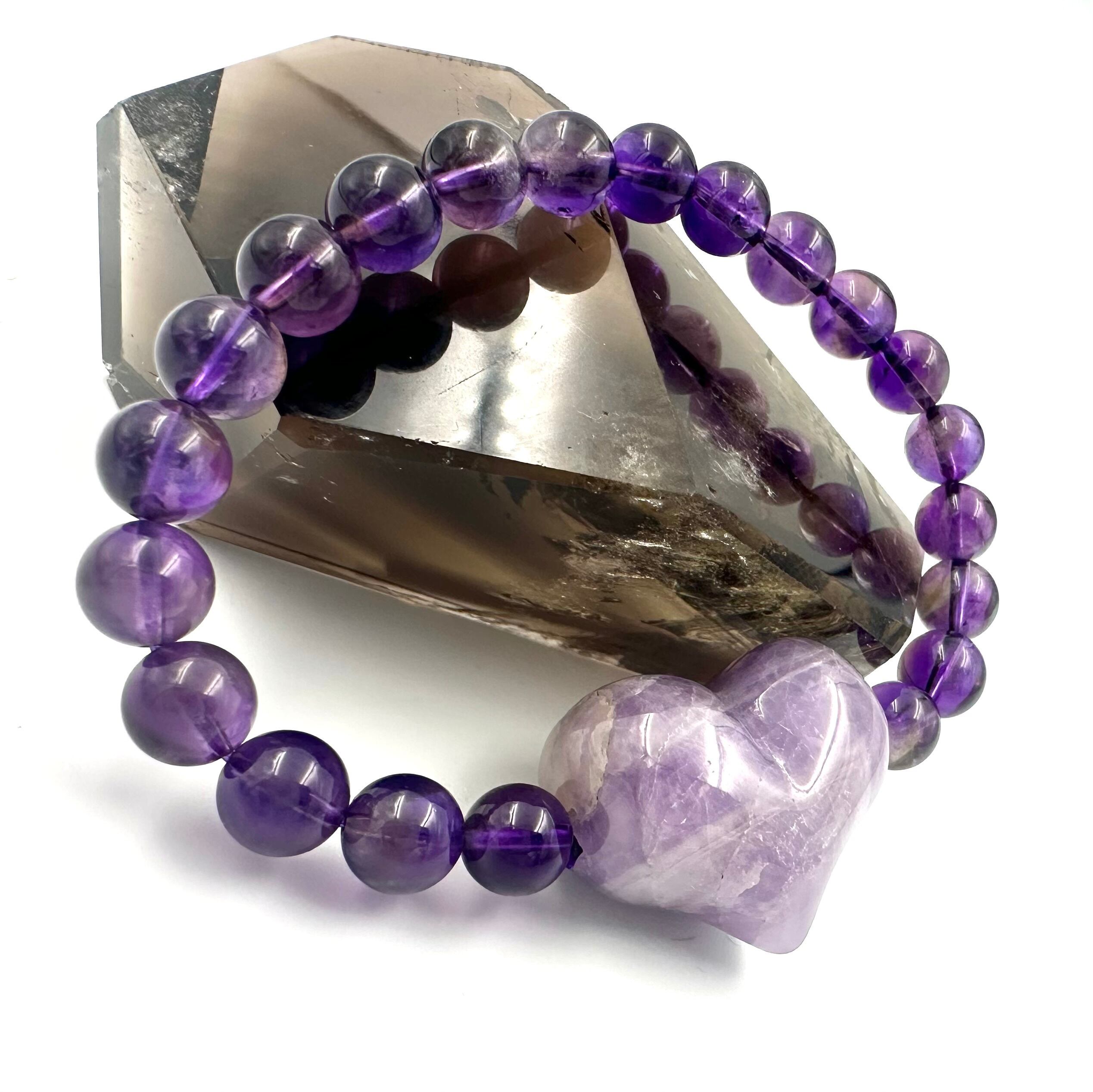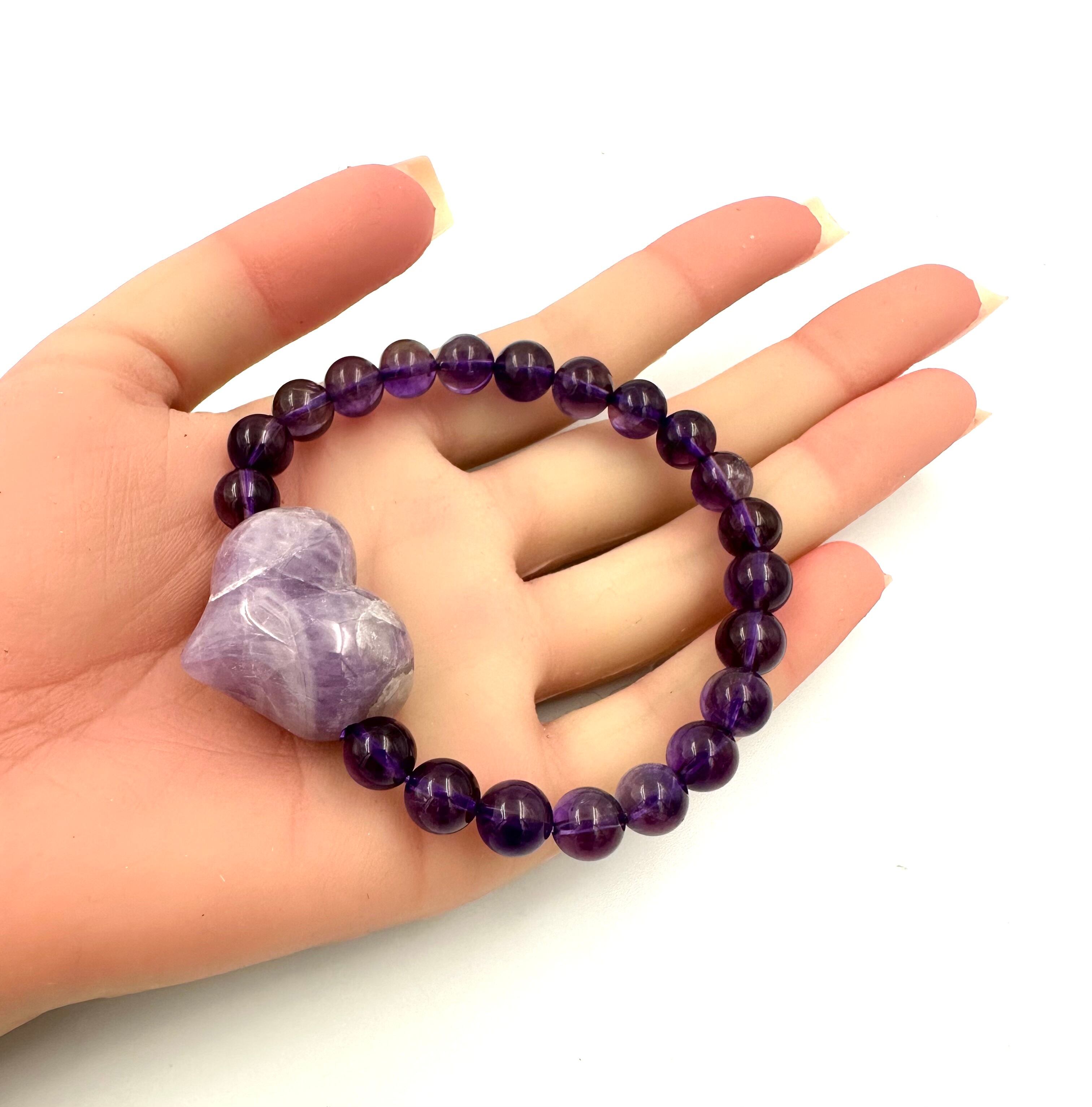 (01041)(1点のみ)(内径選べる)ウルグアイ産アメジスト【8mm】Amethyst 紫水晶 ハートトップ ラウンドカット デザインブレスレット デザブレ 厄除け 魔除け ラウンドカット パワーストーン 天然石