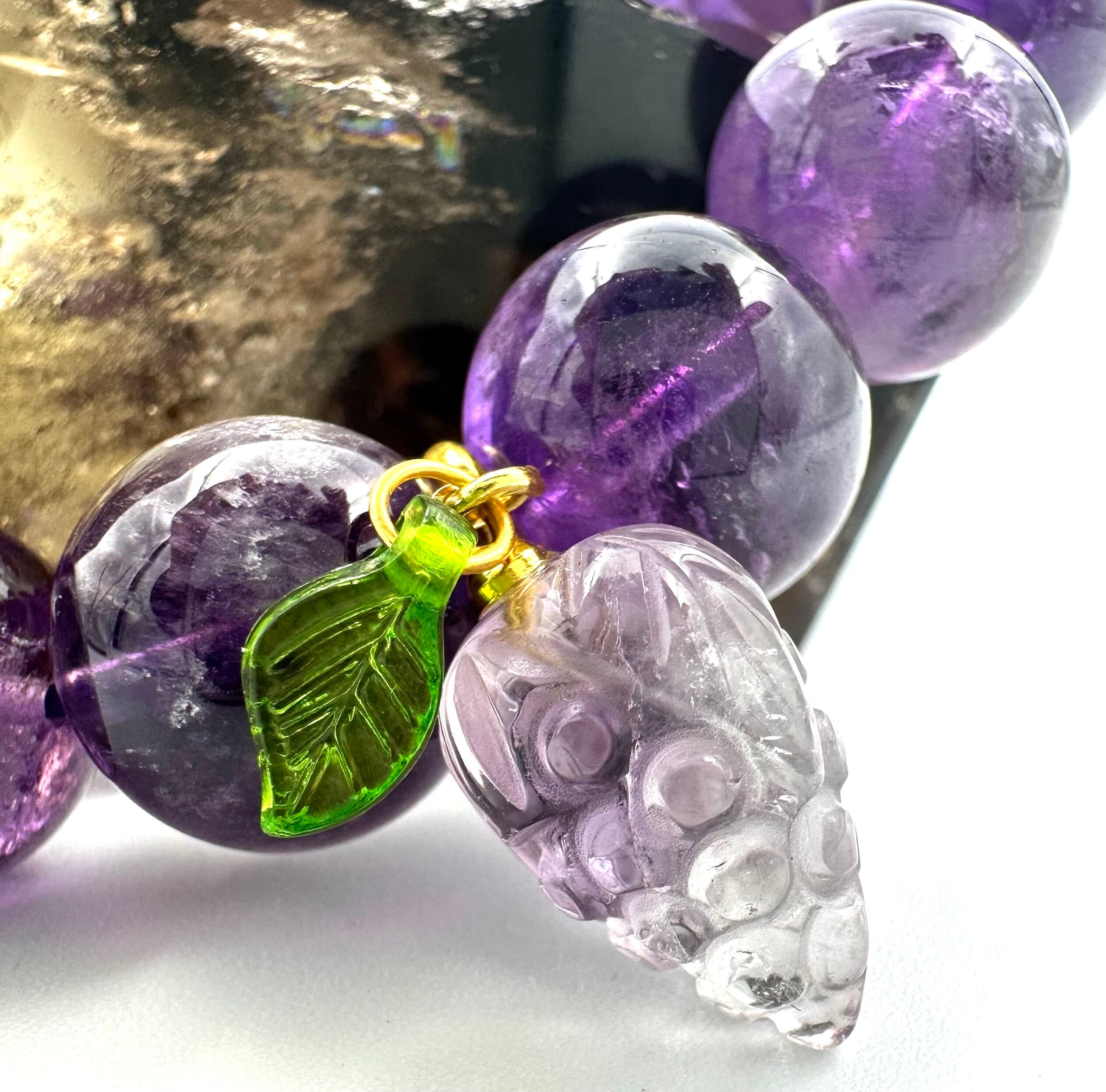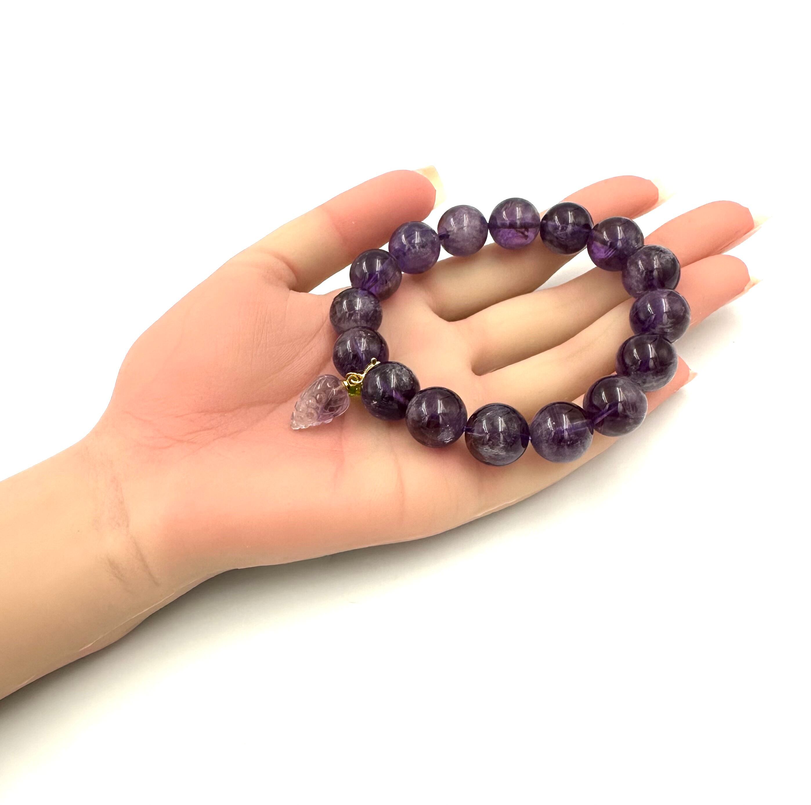 (01044)(1点のみ)(内径選べる)ウルグアイ産アメジスト【13mm】チャーム葡萄 アメトリン Amethyst 紫水晶 ラウンドカット デザインブレスレット デザブレ 厄除け 魔除け ラウンドカット パワーストーン 天然石