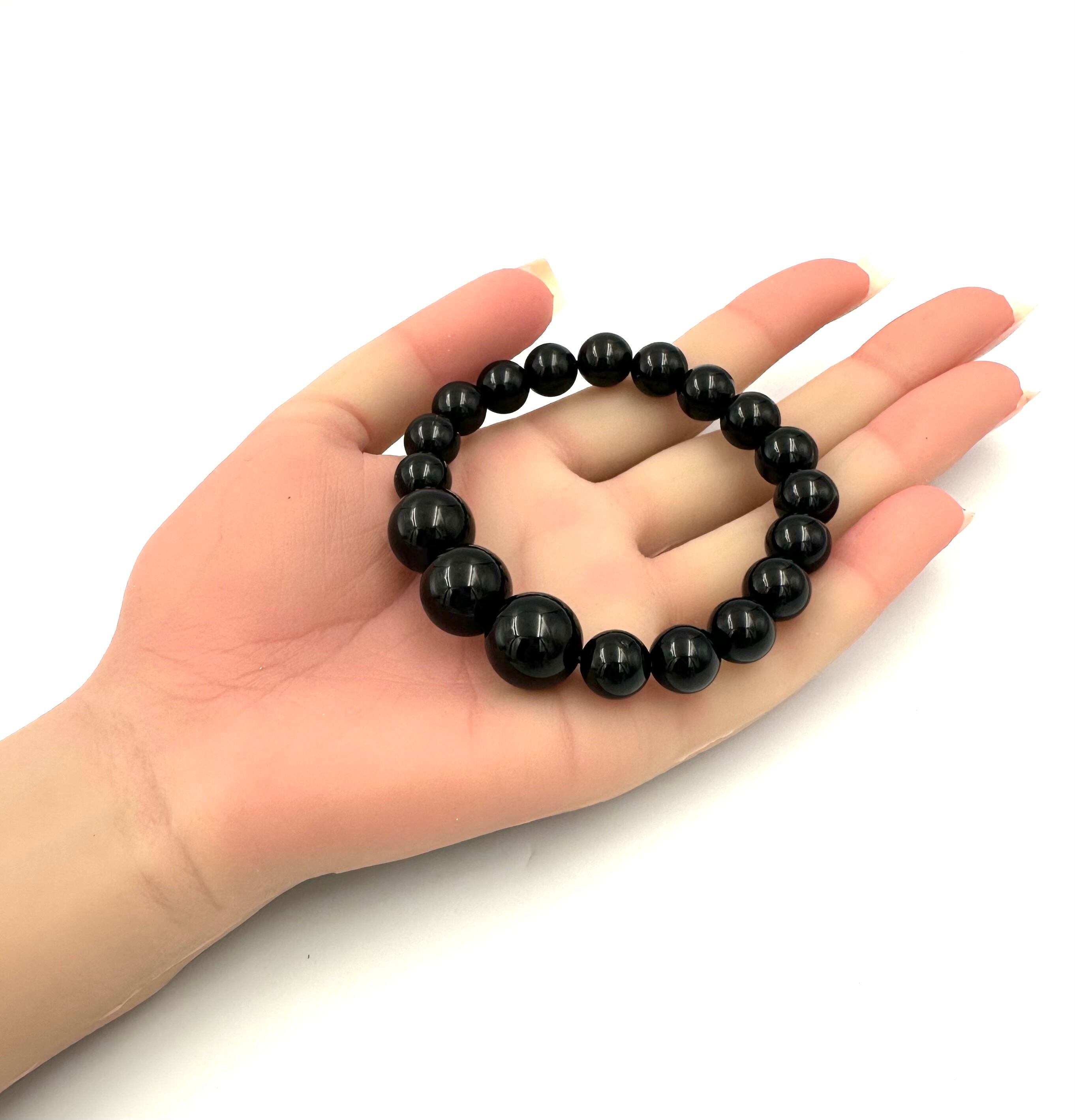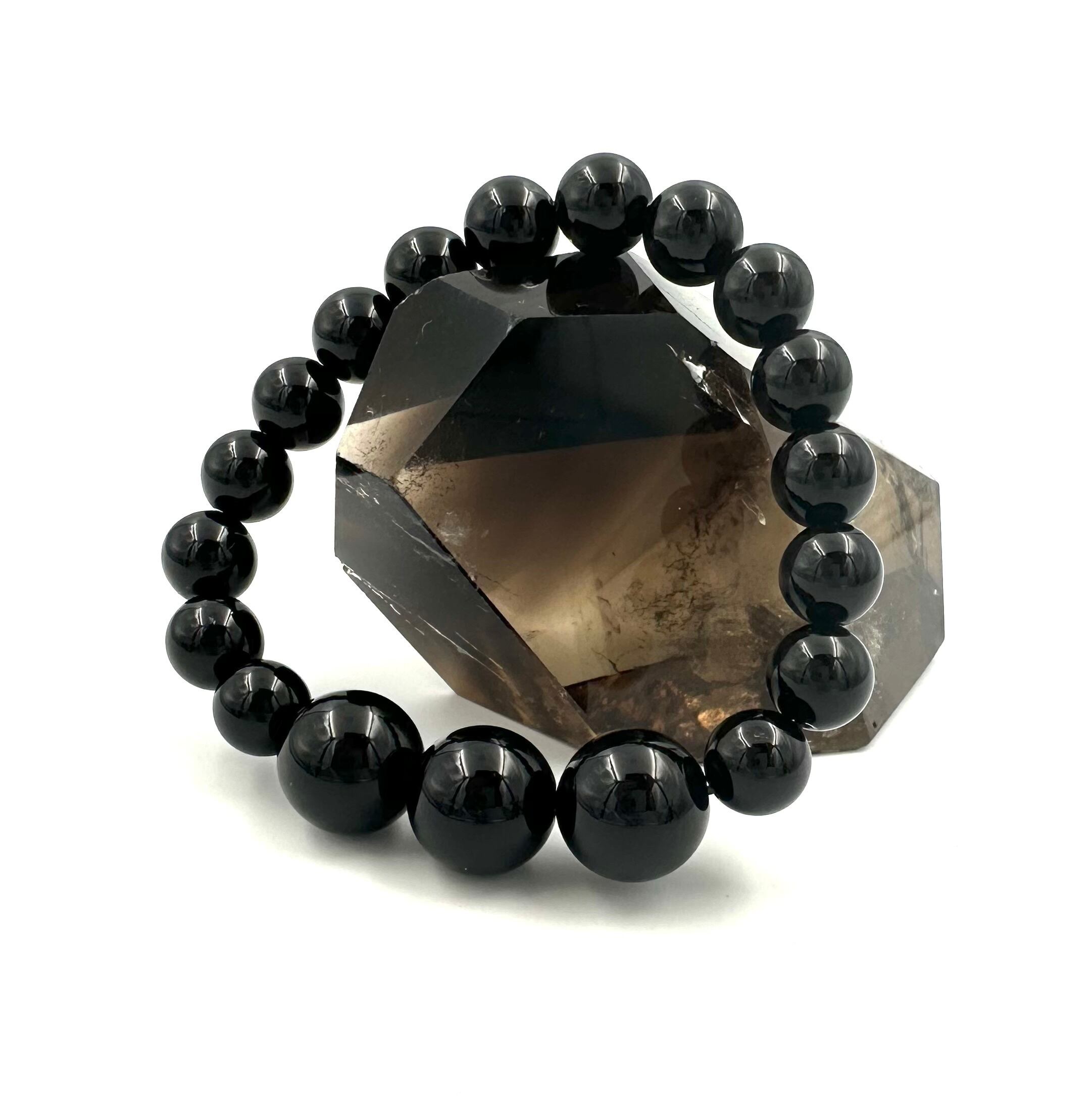 (01037)(1点のみ)(内径選べる)中国福建省産スターモリオン【14mm/10mm】デザインブレスレット Morion 黒水晶 ラウンドカット 魔除け 厄除け 天然石ブレスレット パワーストーン