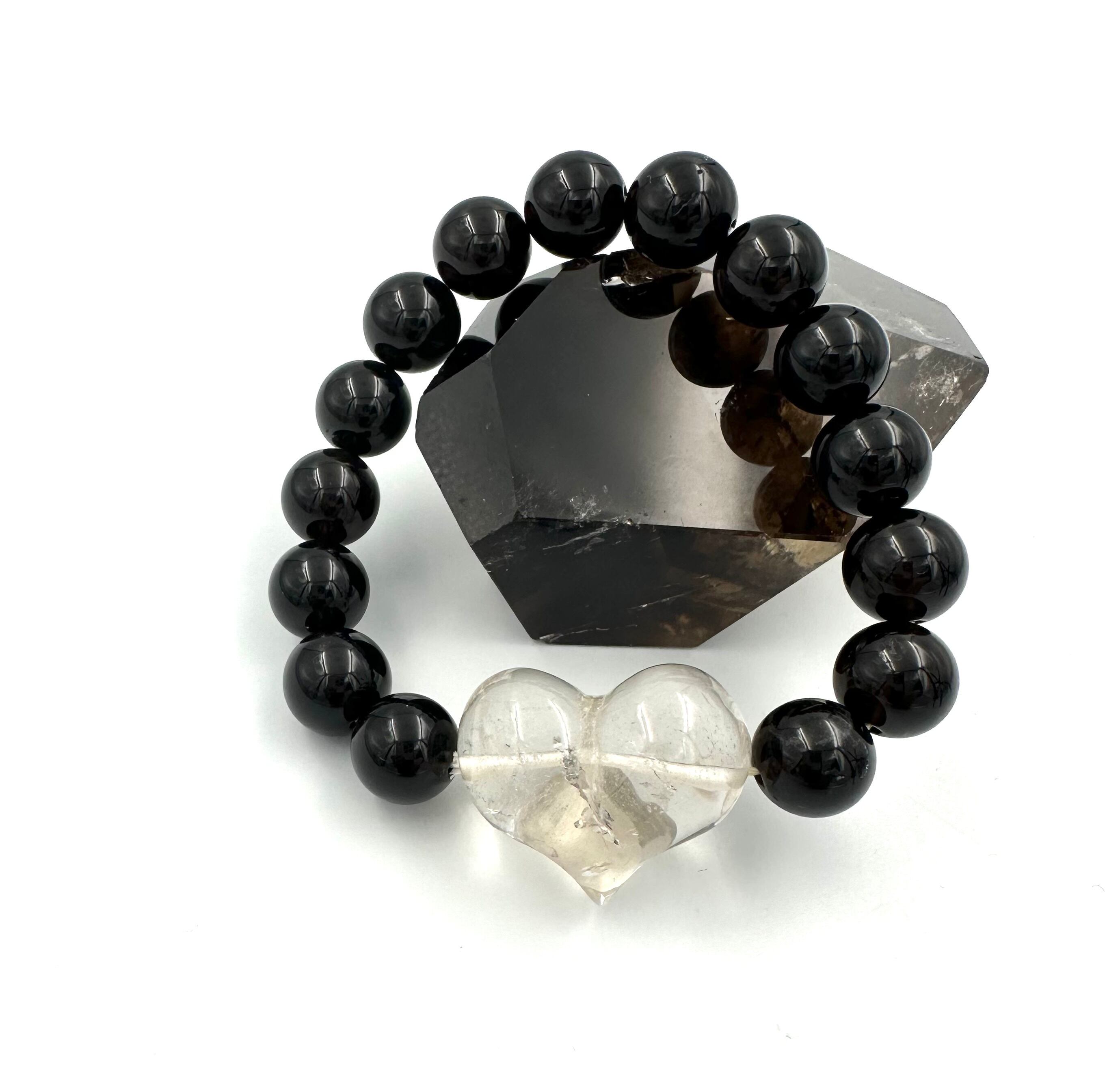 (01040)(1点のみ)(内径選べる)中国福建省産スターモリオン クリスタル【12mm】デザインブレスレット Morion 黒水晶 ラウンドカット 魔除け 厄除け 天然石ブレスレット パワーストーン