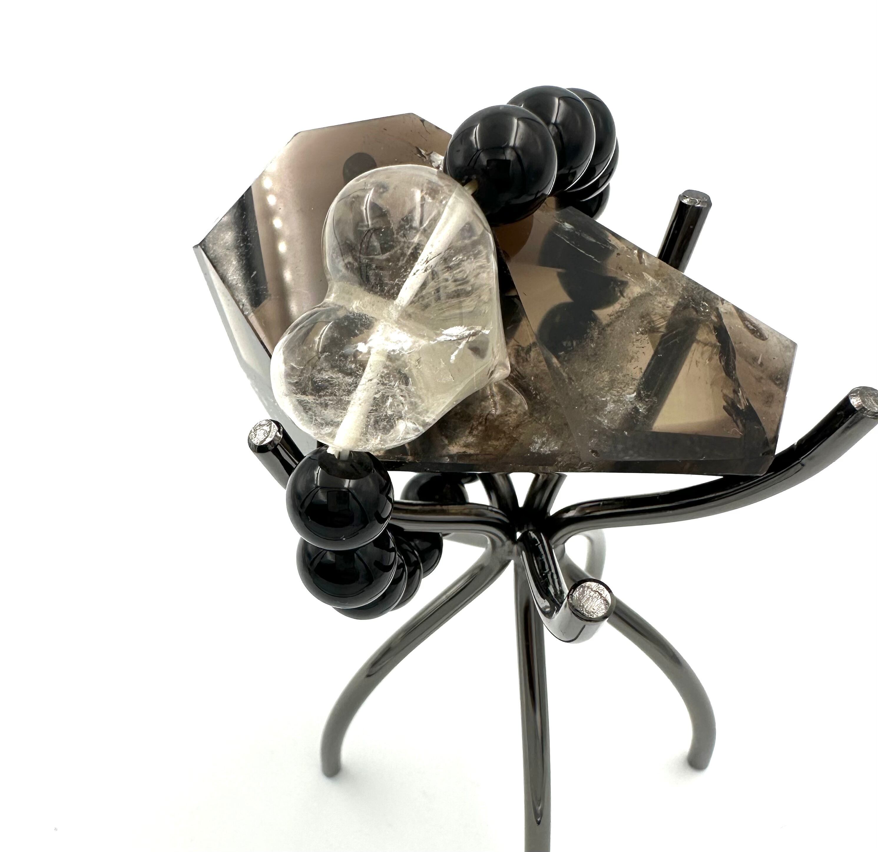 モリオン(黒水晶)は、シリカ鉱物グループに属する宝石で、漆黒のような深い黒色が特徴です。
