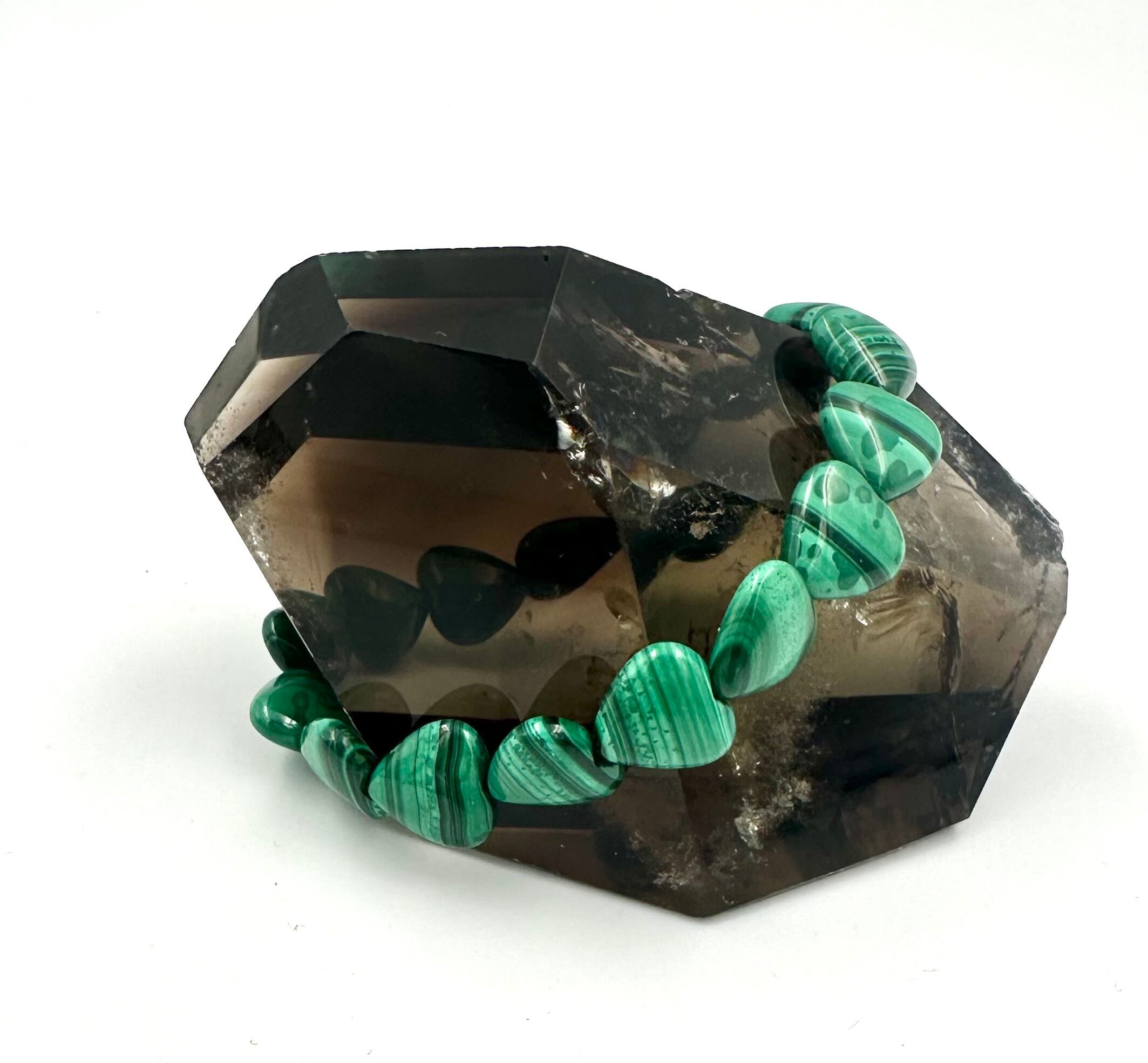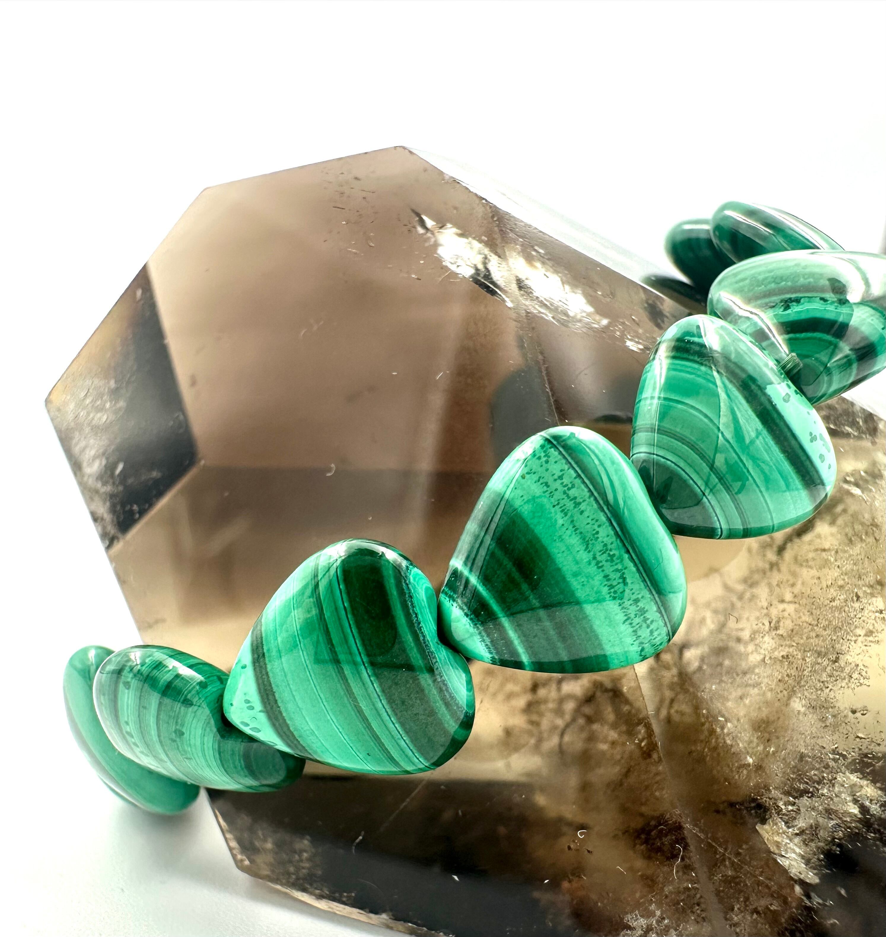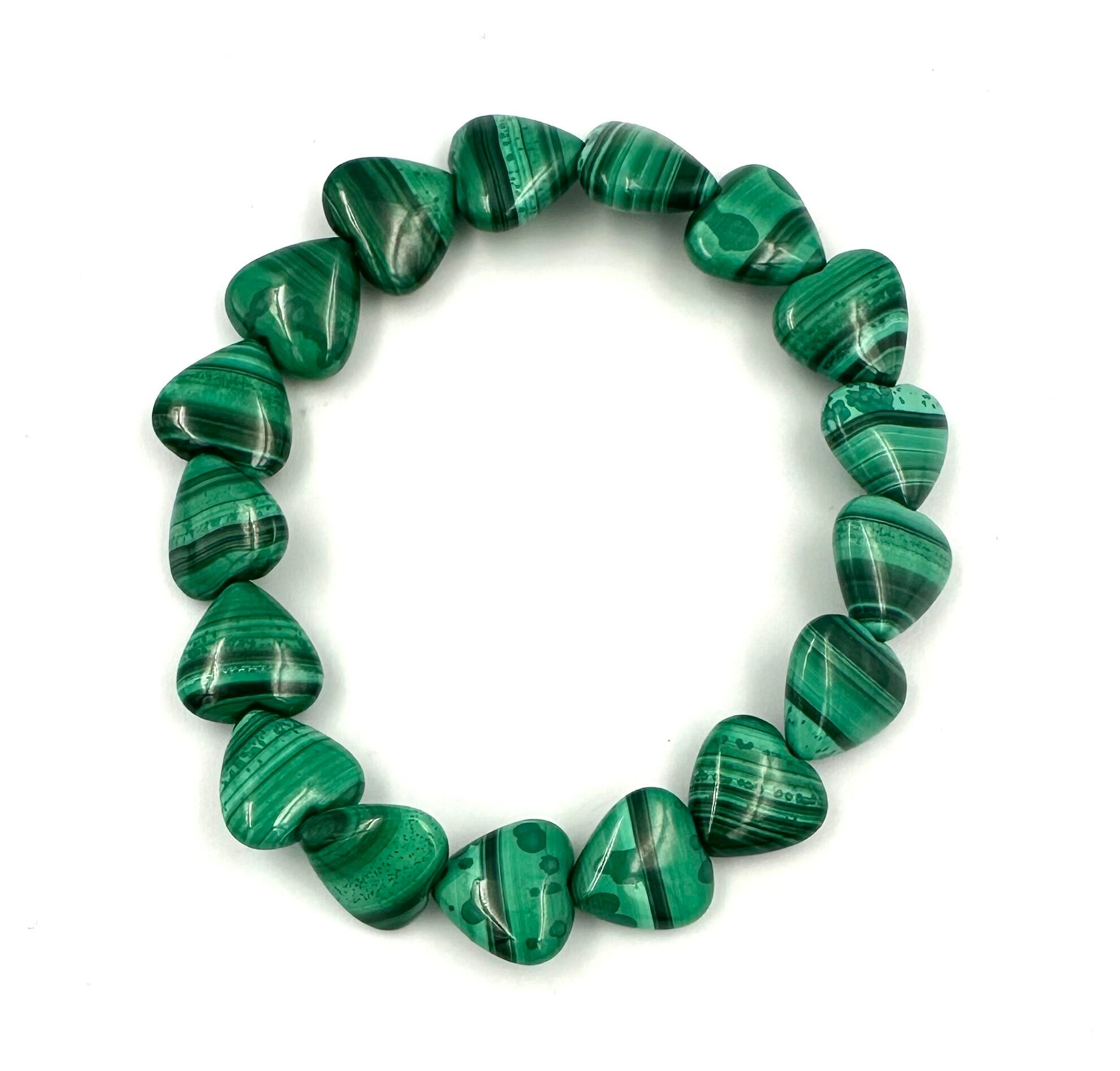 (01112)(1点のみ)(内径選べる)マラカイト 孔雀石 Malachite 【ハートカット】 ブレスレット 魔除け 厄除け 天然石 パワーストーン