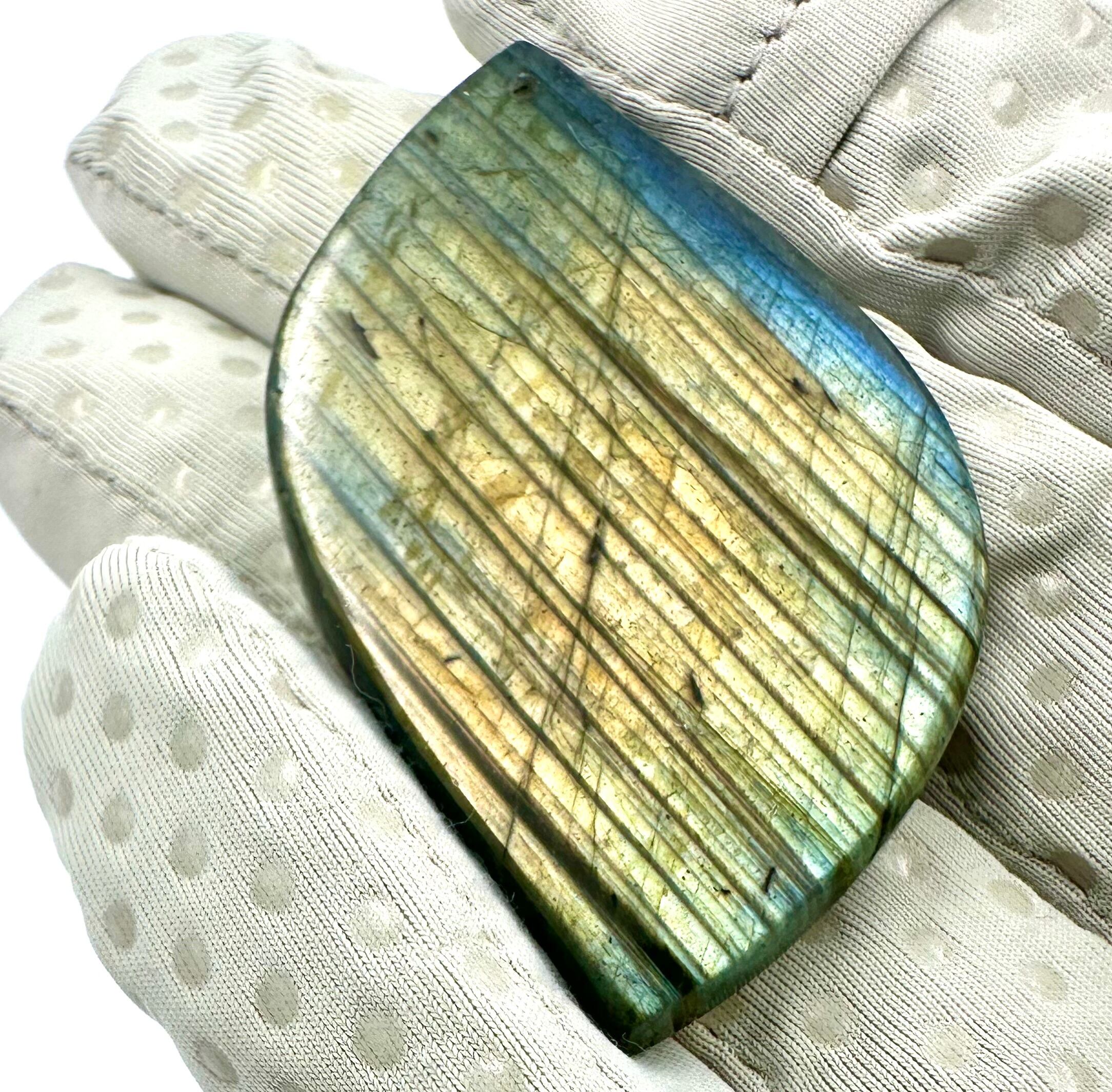 ラブラドライトは、ラブラドレッセンスと呼ばれるレインボーの輝きを見せる模様が特徴で、これは見る角度によって模様が違って見えます。