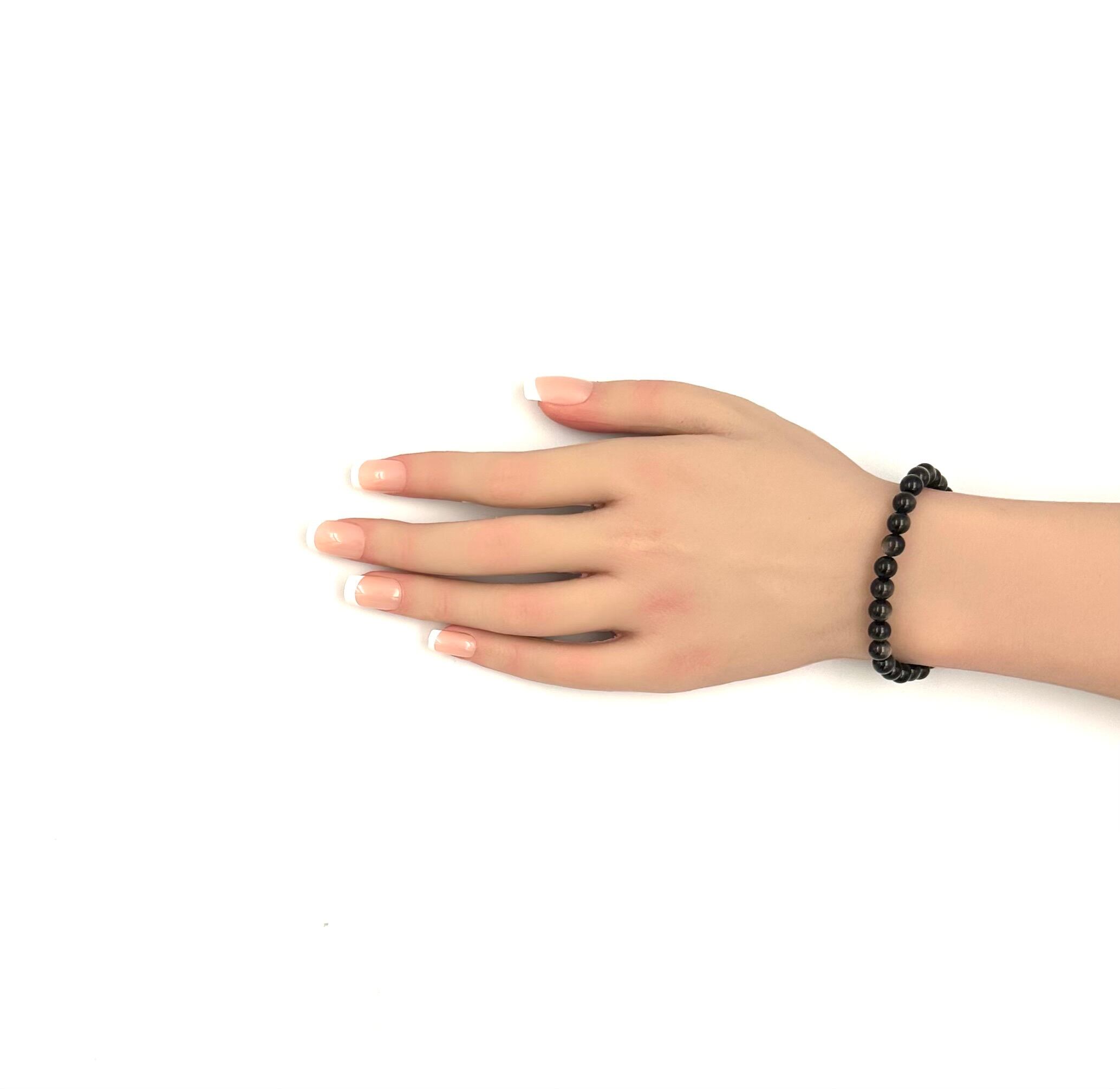 (01168)(選べる内径)高品質シルバーオブシディアン【6mm】 Silver Obsidian 黒曜石 魔除け 厄除け ラウンドカット ブレスレット 天然石 パワーストーン